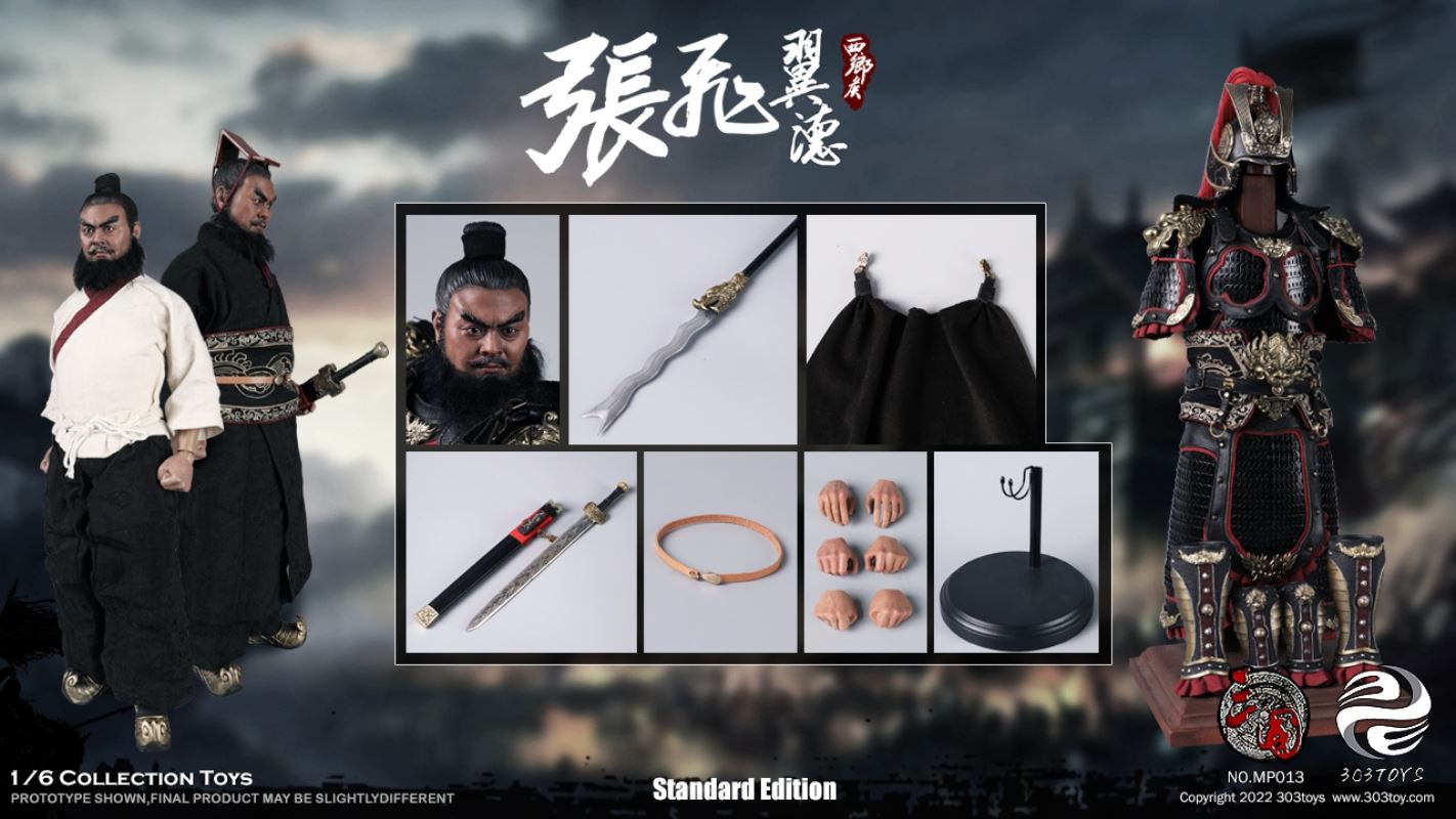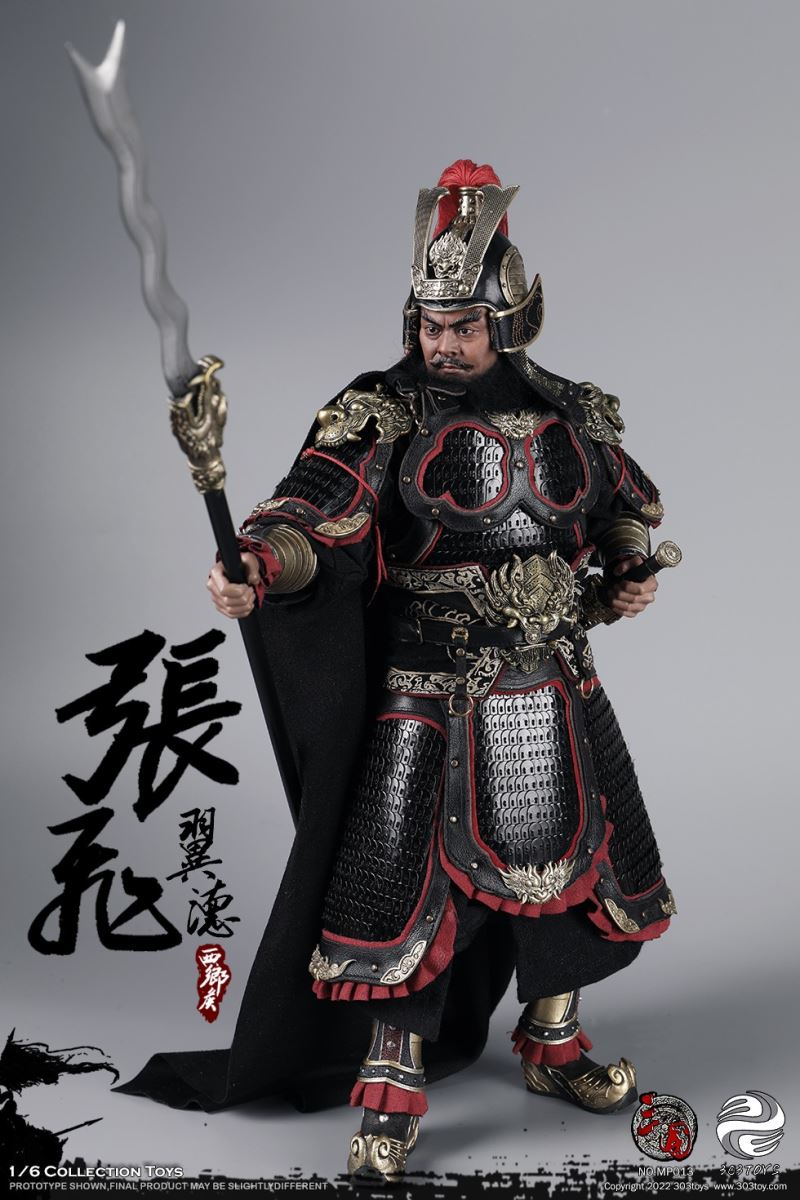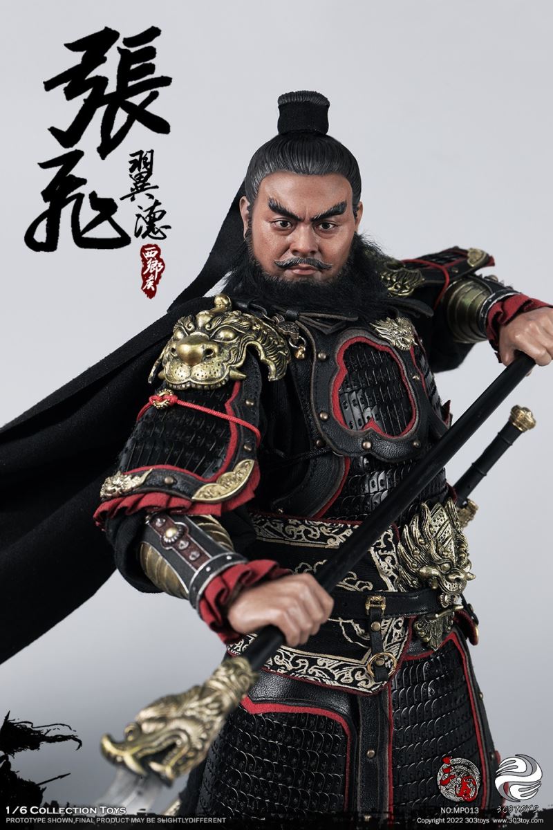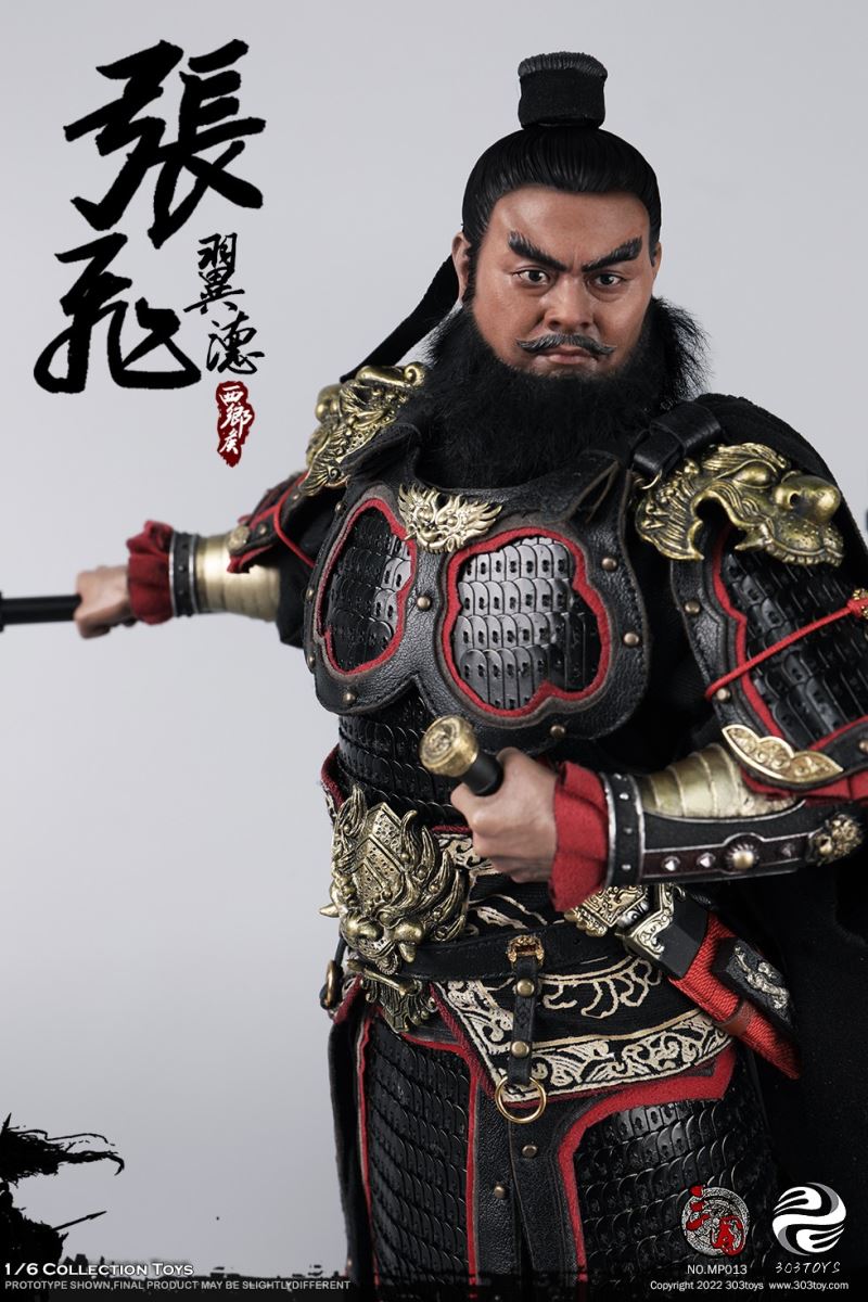 303TOYS MP013 1/6 THREE KINGDOMS SERIES -ZHANG FEI YIDE (STANDARD COPPER VERSION)Barcode:6972603770205The 1/6th scale Zhang Fei Collectible Figure specially features:- One (1) head sculpture with real fabric beard- One (1) body- Six (6) pieces of interchangeable palmsCostumes:- One (1) white shirt- One (1) pair of black pants- One (1) red crown- One (1) black robe- One (1) black corset- One (1) light leather belt- One (1) black copper helmet- One (1) suit of black copper armour- One (1) pair of Metal vambraces- One (1) pair of Metal cuishes- One (1) copper monster buckle- One (1) pair of black leather belts- One (1) pair of Metal shoes- One (1) black cloakWeapons:- One (1) Serpent-headed Spear- One (1) Han sword with scabbardAccessories:- One (1) black figure stand