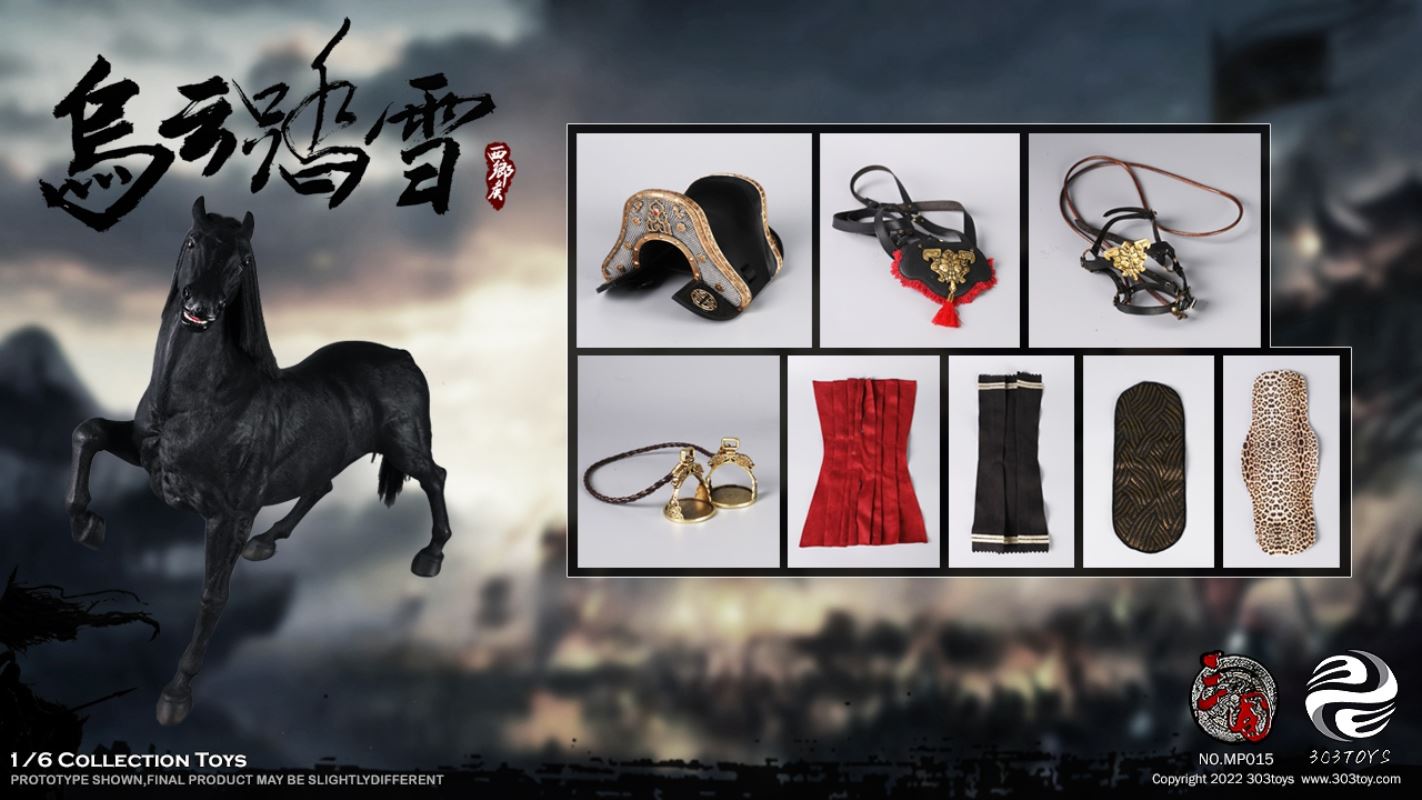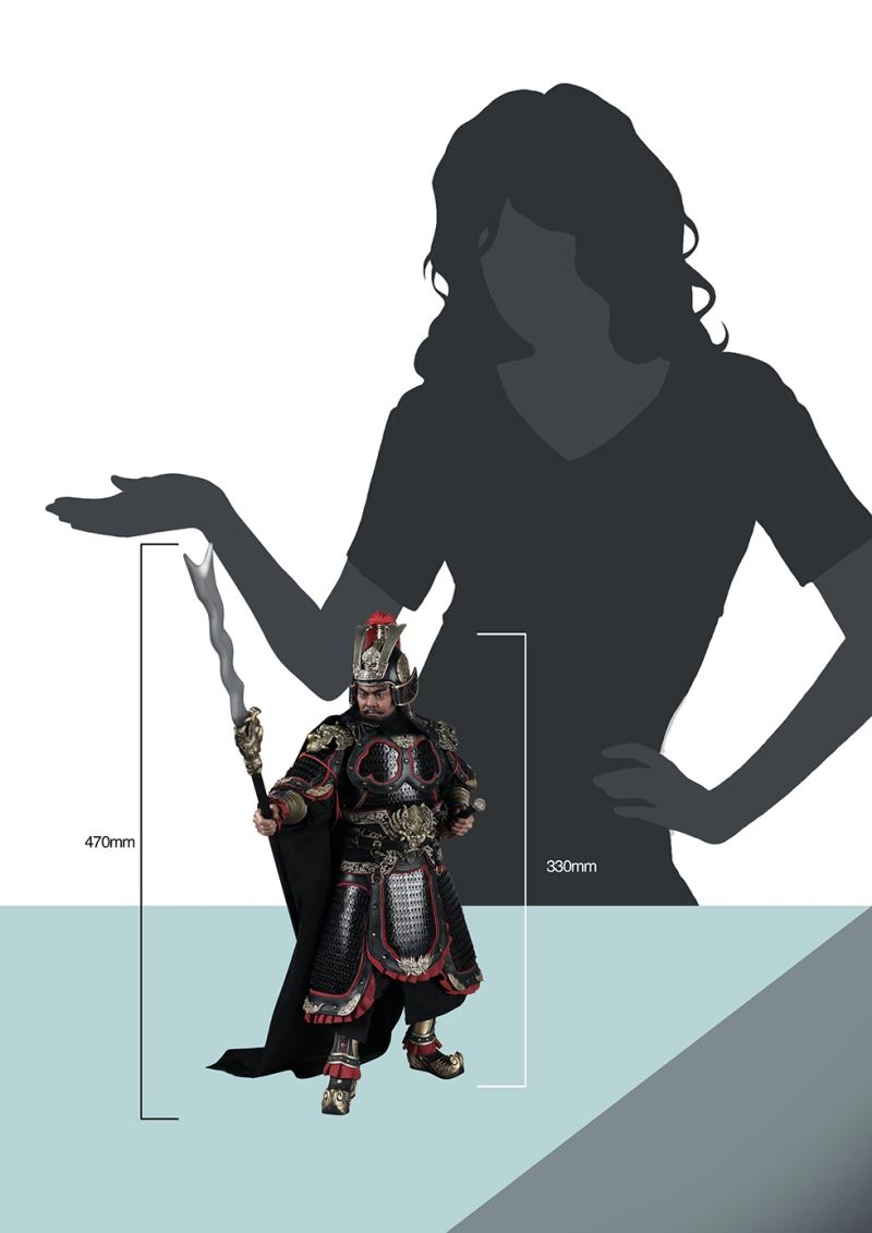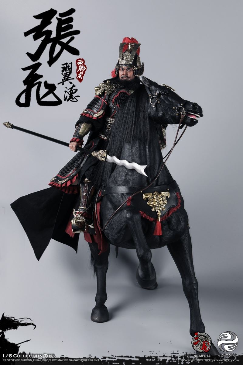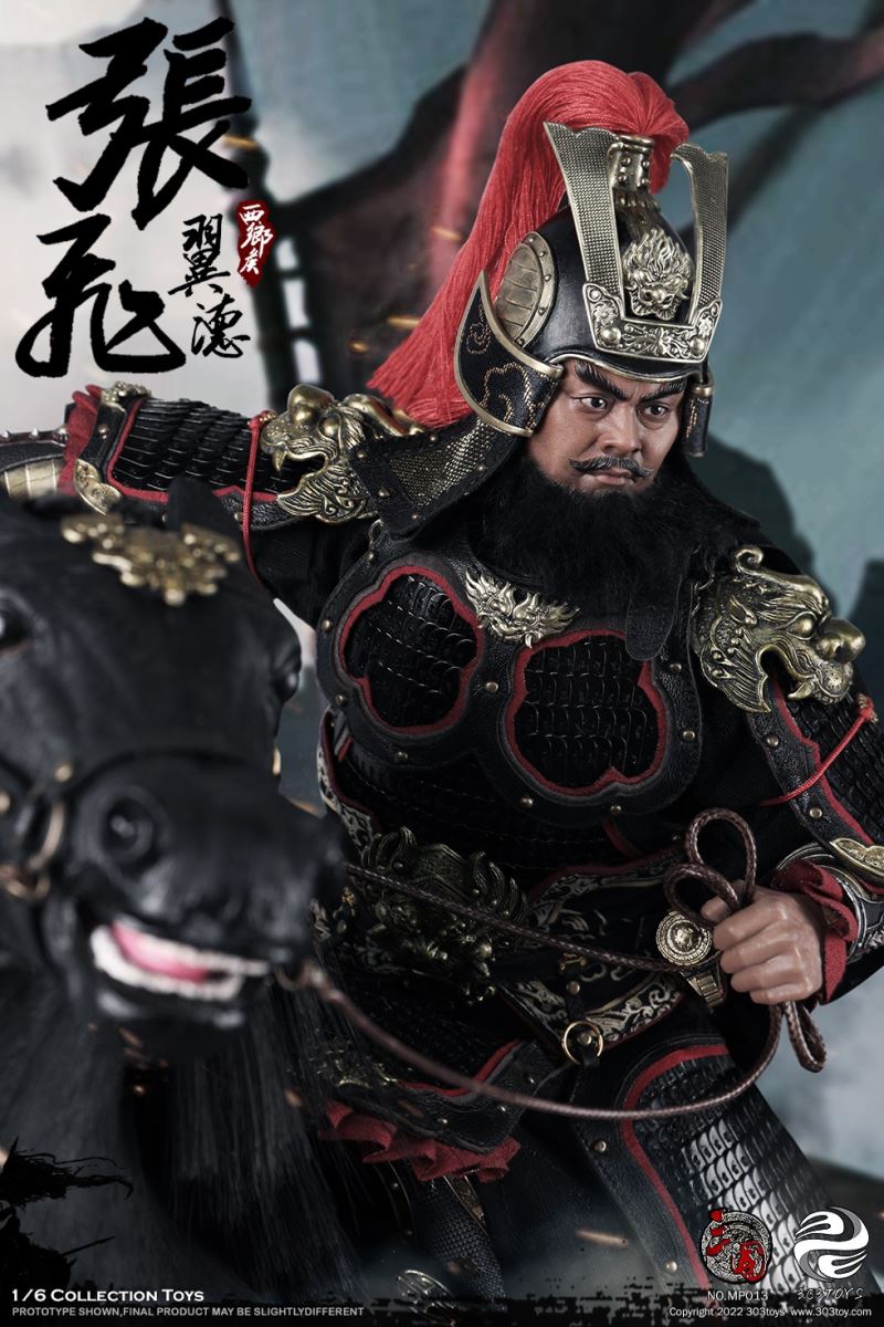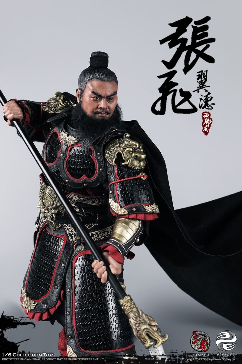 303TOYS MP013 1/6 THREE KINGDOMS SERIES -ZHANG FEI YIDE (STANDARD COPPER VERSION)Barcode:6972603770205The 1/6th scale Zhang Fei Collectible Figure specially features:- One (1) head sculpture with real fabric beard- One (1) body- Six (6) pieces of interchangeable palmsCostumes:- One (1) white shirt- One (1) pair of black pants- One (1) red crown- One (1) black robe- One (1) black corset- One (1) light leather belt- One (1) black copper helmet- One (1) suit of black copper armour- One (1) pair of Metal vambraces- One (1) pair of Metal cuishes- One (1) copper monster buckle- One (1) pair of black leather belts- One (1) pair of Metal shoes- One (1) black cloakWeapons:- One (1) Serpent-headed Spear- One (1) Han sword with scabbardAccessories:- One (1) black figure stand