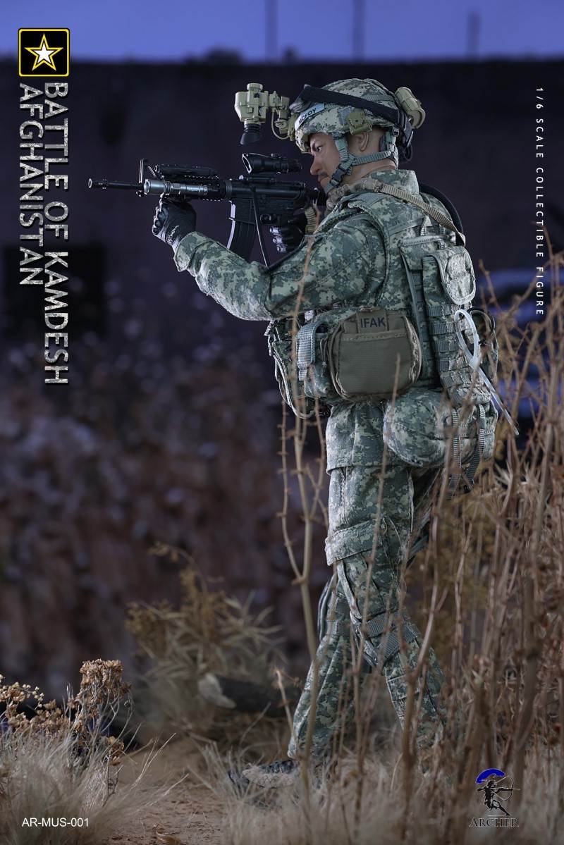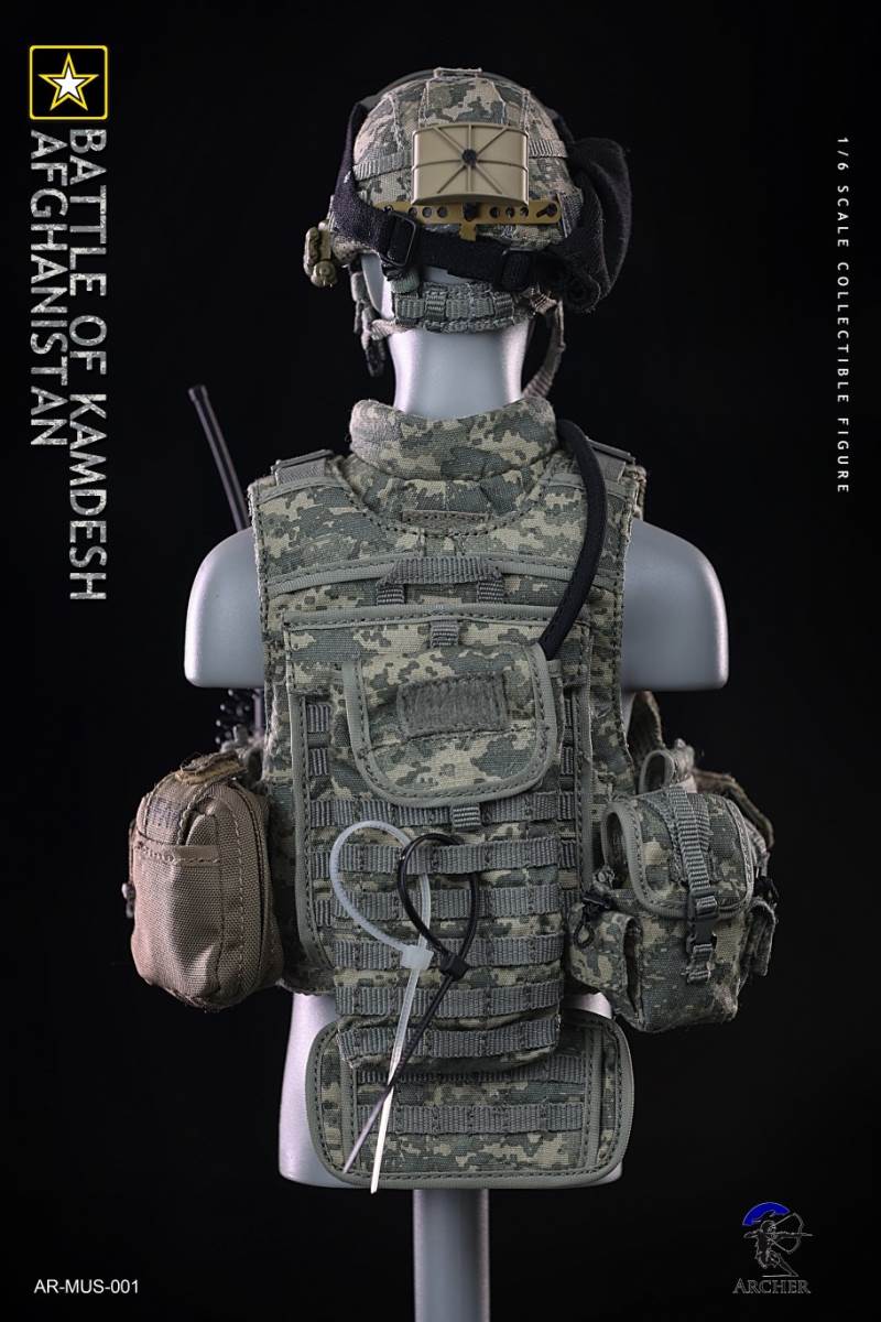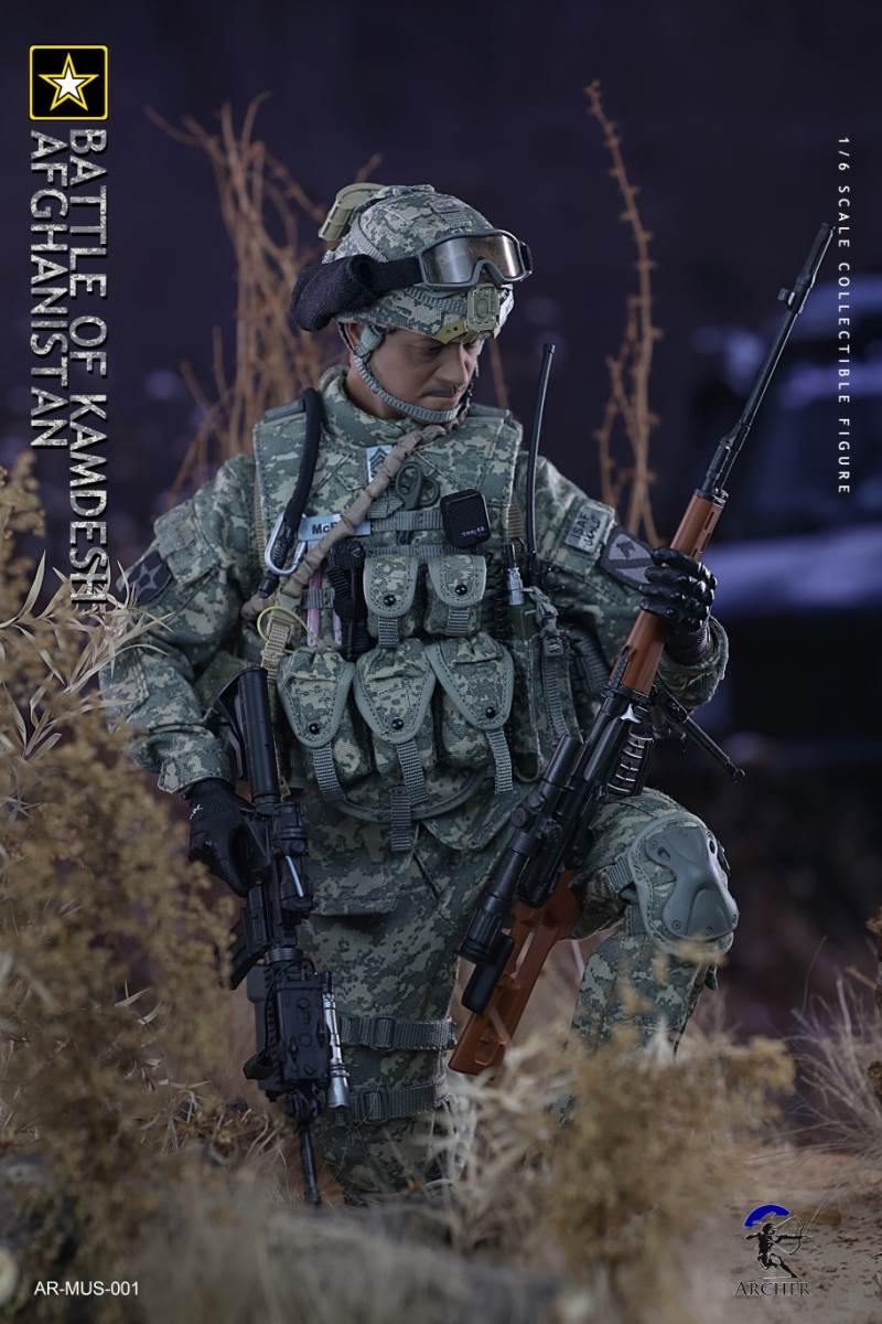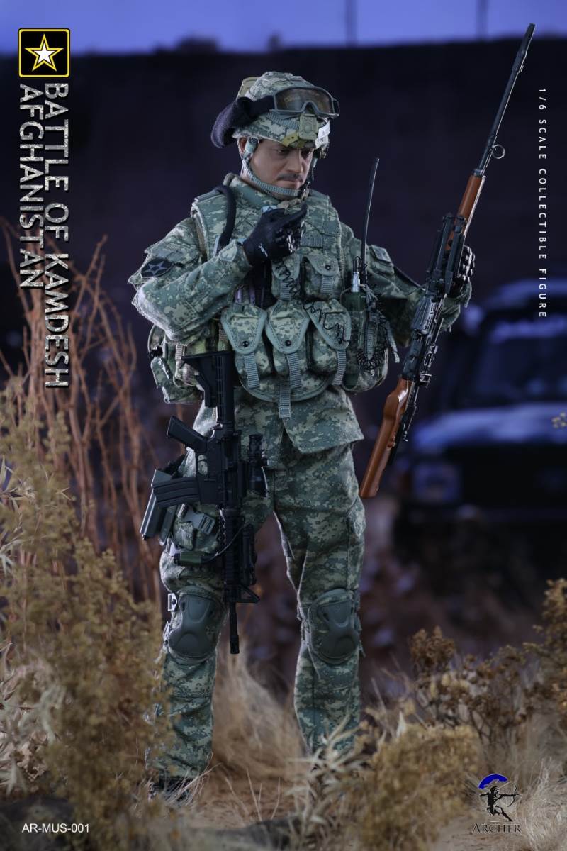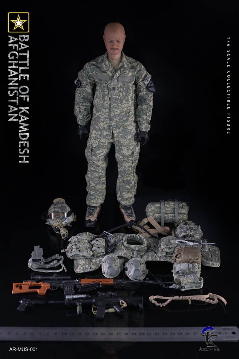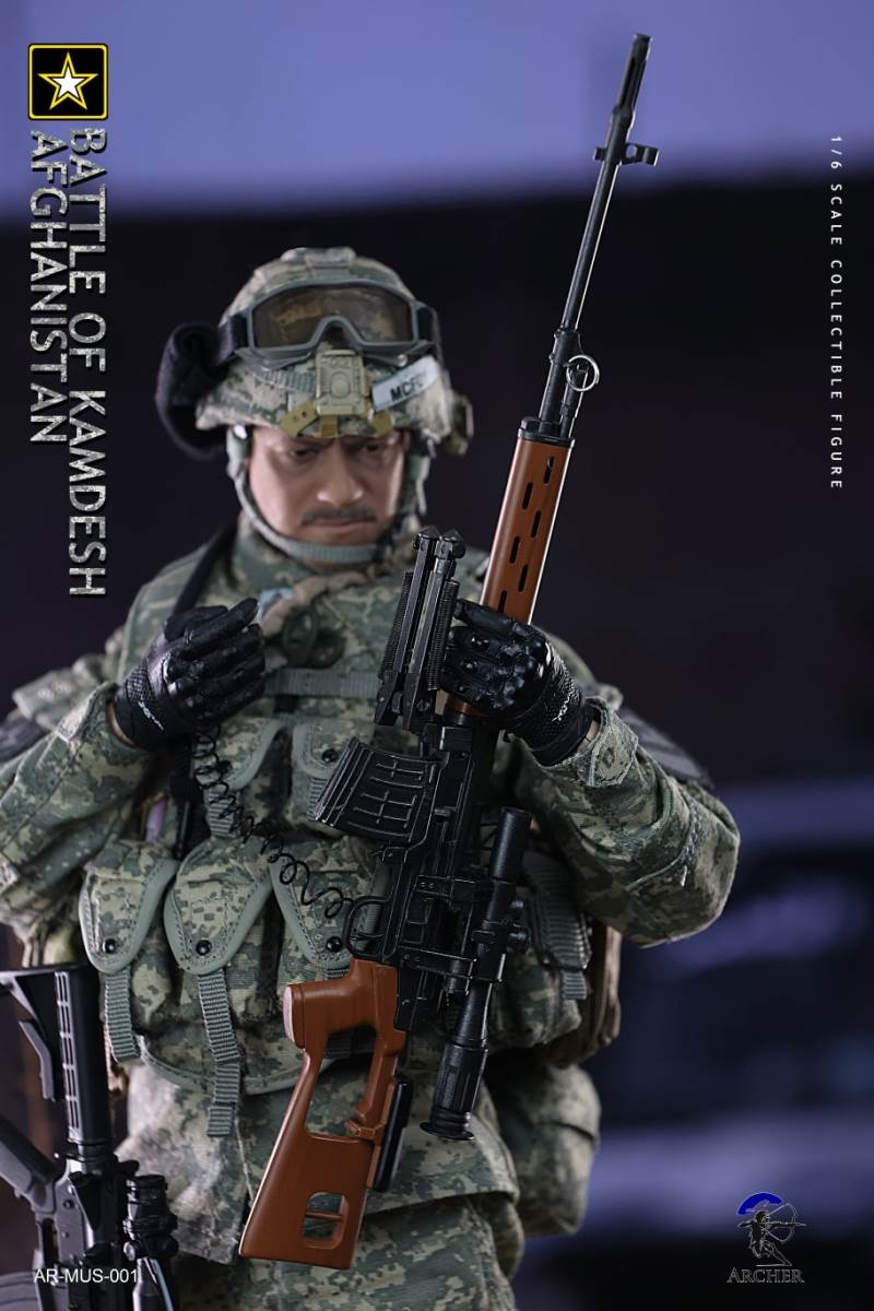 Archer 1/6 Scale Figure The Battle of Kamdesh AfghanistanBAR CODE :List :1-Cat Eye Bands2-ACU Combat Shirt3-ACU Combat Pants4-Khaki Belt5-Khaki Combat Suspenders6-ACU IOTV Vest7-OCP Boo Boo Pouch8-ACU M4 Double Mag Pouch X 39-ACU Smoke Grenade Pouch10-ACU Grenade Pouch X 211ACU Flashbang Pouch12-COYOTE BROWN (CB) IFAK Pouch13-ACU PRC-152 Radio Pouch14-ACU 1QT Canteen Pouch15-ACU Waist Butt Pack16-ACU Hydration Pouch With Fabric Tube17-ACU Knee Pads18-Combat Boots19-Combat Application Tourniquet20-UNIT Patches21-Khaki Rifle Sling22-MICH 2000 Helmet23-NVG Mount24-PSQ-20 Night Vision Goggles25-PSQ-20 Battery Case26-SF Helmet Light27-Googles28-M FRAME 2.0 Sunglasses29-PRC-152 Radio30-Urban Speaker Microphone31-M67 Grenade X 232-M64 Flashbang33-MK18 Smoke Grenade34-Chen Bio Reservoir 4.0 With Tube35-EMT Scissors36-MS2000 Strobe Light37-1QT Canteen38-Carabiner *239-G Buckle40-CQC Holster Leg Panel41-CQC Pistol Mag casX 242-CQC M9 Holster43-M4 Rifle44-Rear Sight45-MOE Stock46-P-Mag X 3+147-M9 Pistol48-M9 Pistol Mag X 2 +149-AN/PEQ15 LASER ATPIAL50-AN/PEQ15A Dual Beam Aiming LASER A2(DBAL-A2)51-TA31ECOS 4X32 Scopes52-M2 Red Dot Sight53-M962 Gun Light54-M952V Gun Light55-Grip *2 56-M Gloves Set57-S2 Body And Head sculpture58-Leg kit59-Bare Feet Short Connected set 60-Dragunov sniper rifle