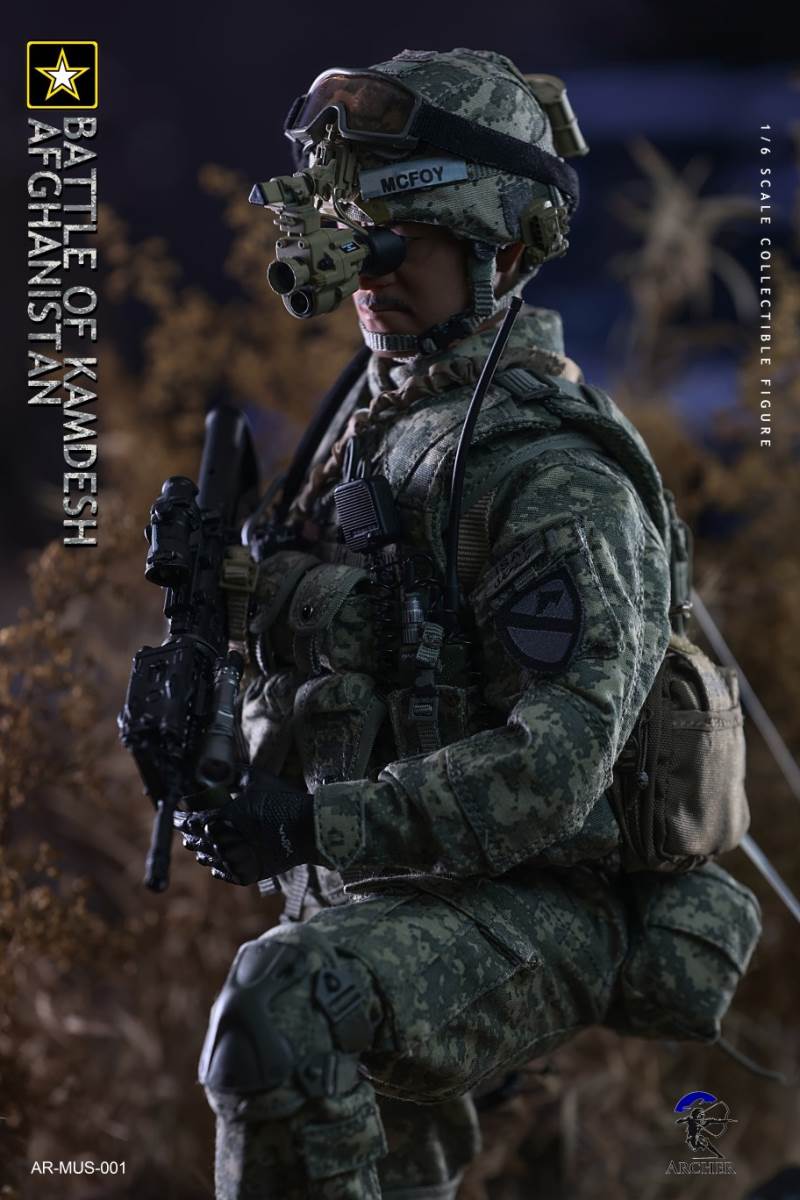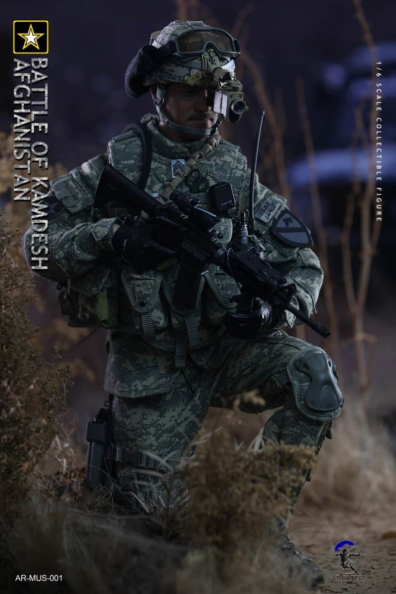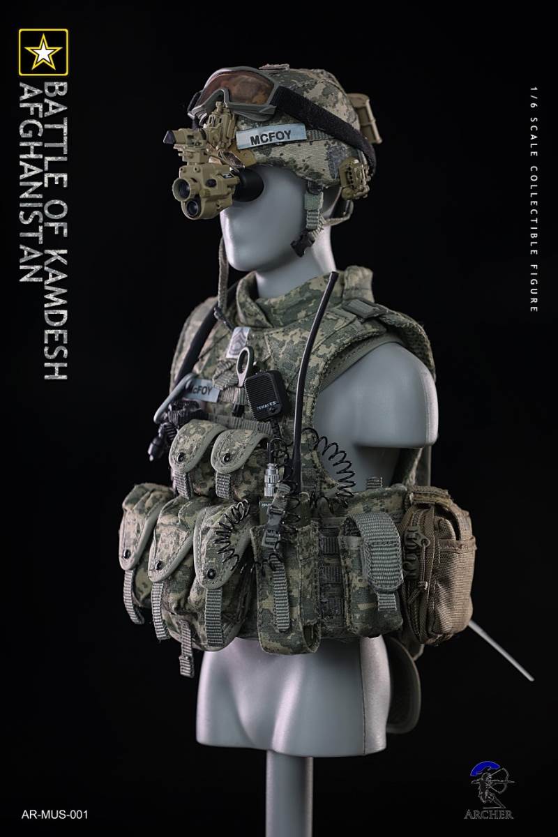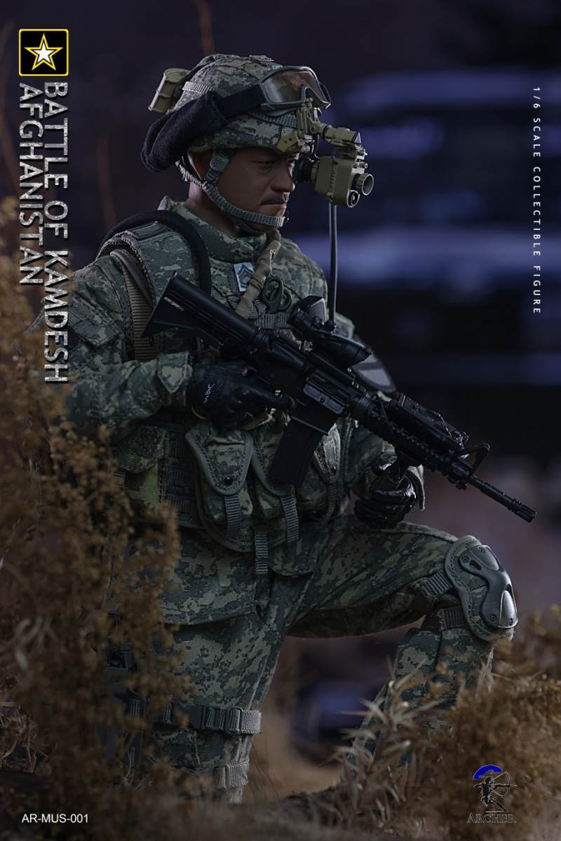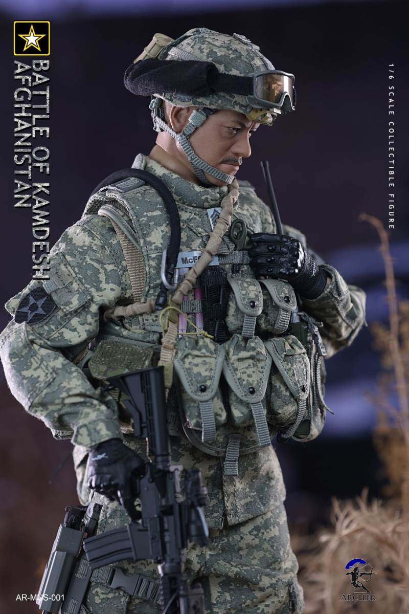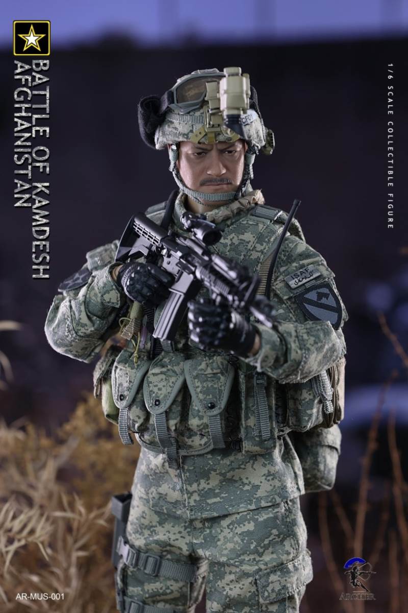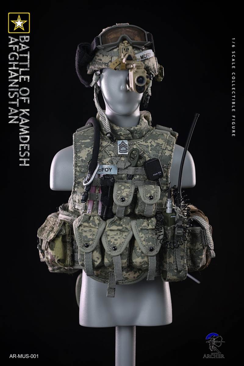 Archer 1/6 Scale Figure The Battle of Kamdesh AfghanistanBAR CODE :List :1-Cat Eye Bands2-ACU Combat Shirt3-ACU Combat Pants4-Khaki Belt5-Khaki Combat Suspenders6-ACU IOTV Vest7-OCP Boo Boo Pouch8-ACU M4 Double Mag Pouch X 39-ACU Smoke Grenade Pouch10-ACU Grenade Pouch X 211ACU Flashbang Pouch12-COYOTE BROWN (CB) IFAK Pouch13-ACU PRC-152 Radio Pouch14-ACU 1QT Canteen Pouch15-ACU Waist Butt Pack16-ACU Hydration Pouch With Fabric Tube17-ACU Knee Pads18-Combat Boots19-Combat Application Tourniquet20-UNIT Patches21-Khaki Rifle Sling22-MICH 2000 Helmet23-NVG Mount24-PSQ-20 Night Vision Goggles25-PSQ-20 Battery Case26-SF Helmet Light27-Googles28-M FRAME 2.0 Sunglasses29-PRC-152 Radio30-Urban Speaker Microphone31-M67 Grenade X 232-M64 Flashbang33-MK18 Smoke Grenade34-Chen Bio Reservoir 4.0 With Tube35-EMT Scissors36-MS2000 Strobe Light37-1QT Canteen38-Carabiner *239-G Buckle40-CQC Holster Leg Panel41-CQC Pistol Mag casX 242-CQC M9 Holster43-M4 Rifle44-Rear Sight45-MOE Stock46-P-Mag X 3+147-M9 Pistol48-M9 Pistol Mag X 2 +149-AN/PEQ15 LASER ATPIAL50-AN/PEQ15A Dual Beam Aiming LASER A2(DBAL-A2)51-TA31ECOS 4X32 Scopes52-M2 Red Dot Sight53-M962 Gun Light54-M952V Gun Light55-Grip *2 56-M Gloves Set57-S2 Body And Head sculpture58-Leg kit59-Bare Feet Short Connected set 60-Dragunov sniper rifle