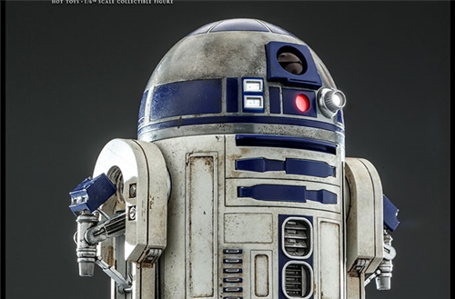 The R2-D2 Sixth Scale Collectible Figure is skillfully crafted with a diecast metal dome, a highly detailed mechanical construction body with openable panels and a retractable middle leg, weathered paint application, an array of accessories including a pair of rocket thrusters, a tether cable for recreating the scene when R2-D2 fixes C-3PO, a collection of attachable mechanical arms and tools, as well as a specially designed commemorative packaging.