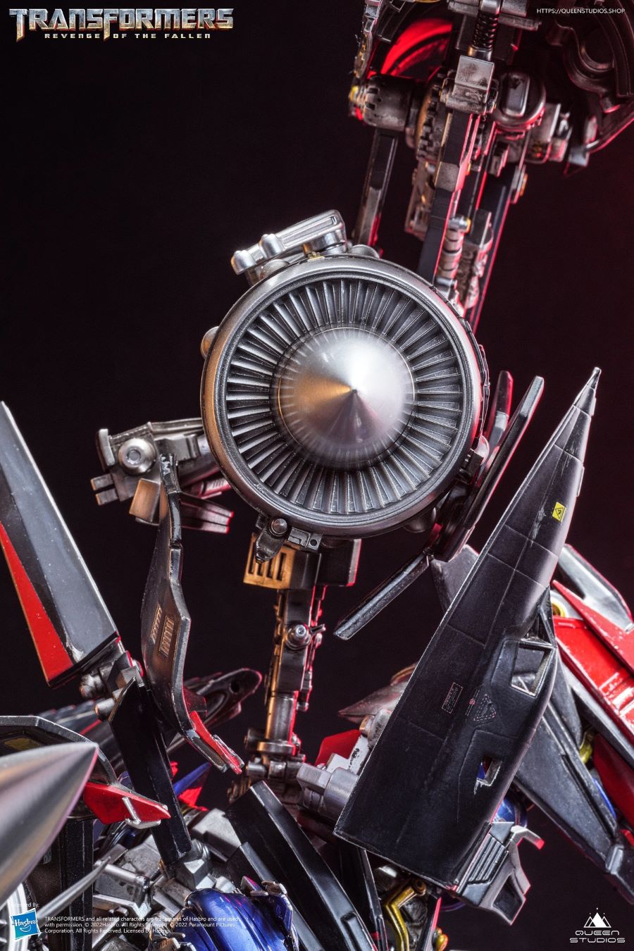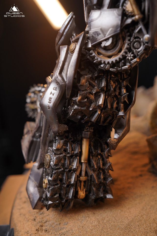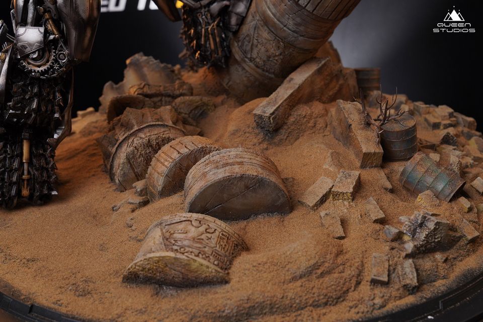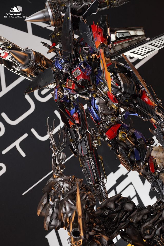 Skyfire Optimus Prime VS Megatron ได้รับแรงบันดาลใจจากฉากต่อสู้สุดท้ายของละคร ในการคืนค่าฉากนี้ เราได้แกะสลักข้อต่อและอาวุธที่ซับซ้อนทุกชิ้นของ Skyfire Optimus Prime และ Megatron อย่างระมัดระวัง และกำหนดจุดส่องสว่างบนดวงตาทั้งสองข้าง ปืนใหญ่ และอุปกรณ์พ่นหลัง ในเวลาเดียวกัน เรายังรวมเสาหินและองค์ประกอบพีระมิดไว้บนแท่น ซึ่งทำให้บรรยากาศของการต่อสู้แตกหักในพีระมิดเพิ่มมากขึ้น อาจกล่าวได้ว่า Tianhuo Optimus Prime VS Megatron เป็นงานของ Queenstudios ที่มีชิ้นส่วนที่มีรายละเอียดมากที่สุด