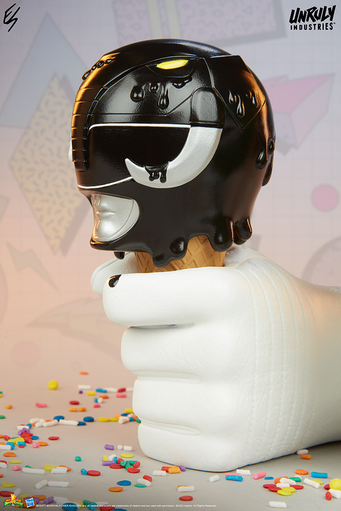 คำชี้แจงของศิลปิน: ในภาคต่อของซีรีส์ One-Scoops ฉันต้องการนำองค์ประกอบเซอร์เรียลลิสต์มาสู่ตัวละคร Power Rangers อันเป็นสัญลักษณ์ในรูปแบบไอศกรีม เมื่อฉันโตขึ้น ฉันมักจะคิดว่าพวกเขามีการออกแบบหมวกกันน็อคที่เจ๋งที่สุด และมันสนุกที่จะจินตนาการว่าพวกเขาจะหน้าตาเป็นอย่างไรถ้าพวกเขาละลายท่ามกลางแสงแดดในวันที่อากาศร้อนใน Angel Grove ฉันอยากจะคิดว่าพวกเขาจะขายสิ่งเหล่านี้ที่ 'Gym and Juice Bar' นั้นซึ่งวัยรุ่นเหล่านี้มักจะออกไปเที่ยวกันในทุกตอน