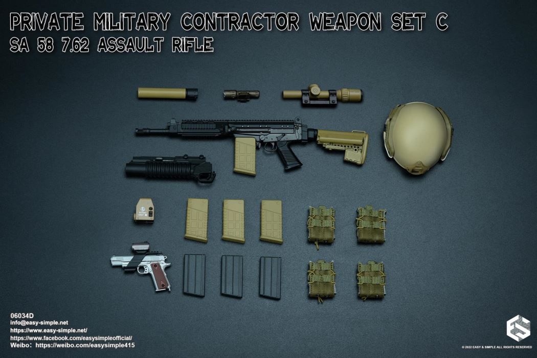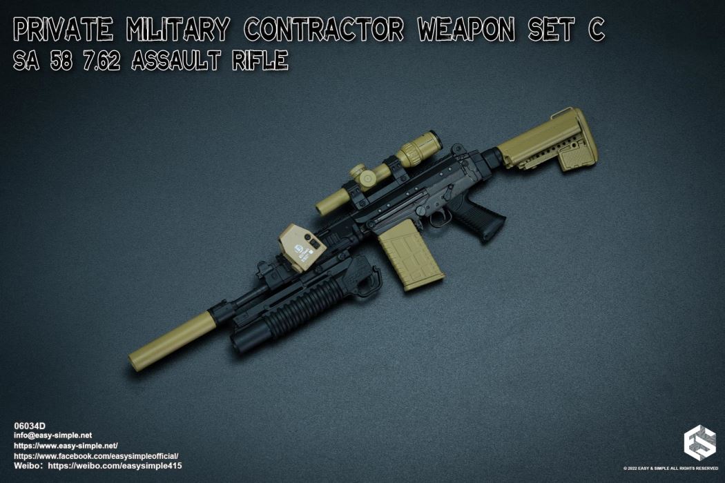 Easy&Simple 06034E Private Military Contractor Weapon Set C SA 58 7.62 Assault Rifle