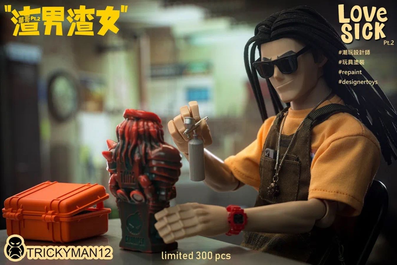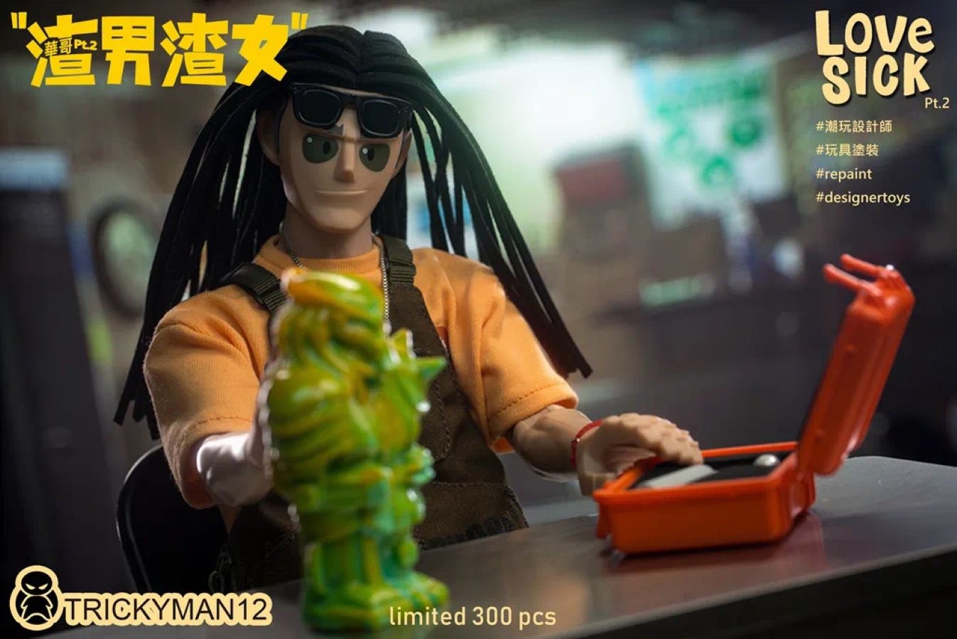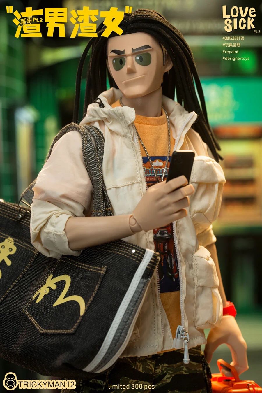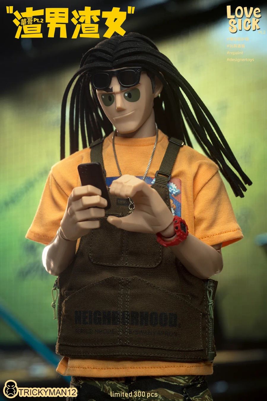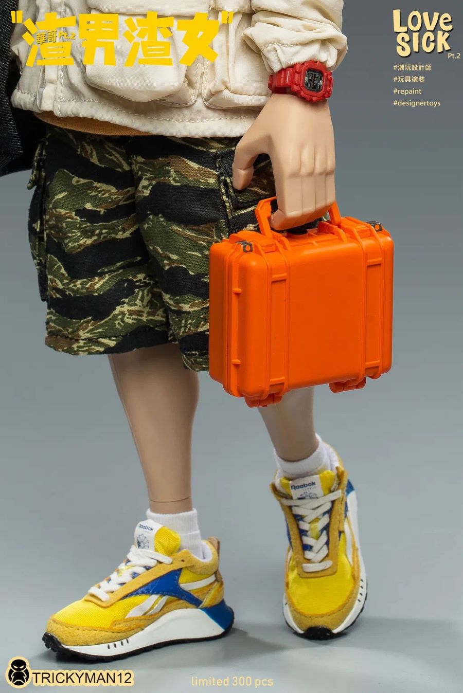 Trickyman12 1/6 Scale Scumbag and Scumbag - Hua Ge (LOVESICK Pt.2)-Parts List-.necklace.G watch.sunglasses.cell phone.Airbrush.toolbox. Instant camera.SOFUBI monster figure*1 (random color).1/6 body.Head carving (hair transplant).Alternative hand (one pair).T-shirt.Tiger print camouflage shorts.Vest apron.Denim satchel.sock.Classic Leather Legacy Yellow Sneakers. Jacket (only available during the pre-order period)