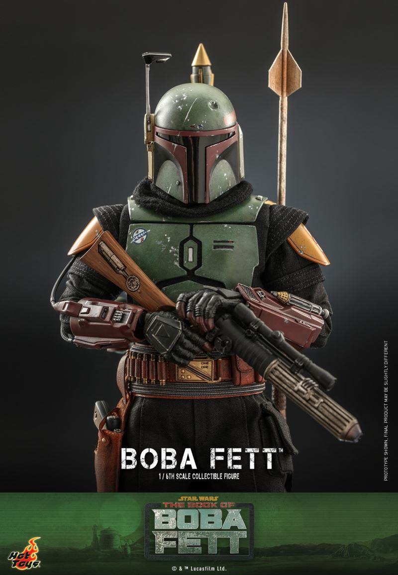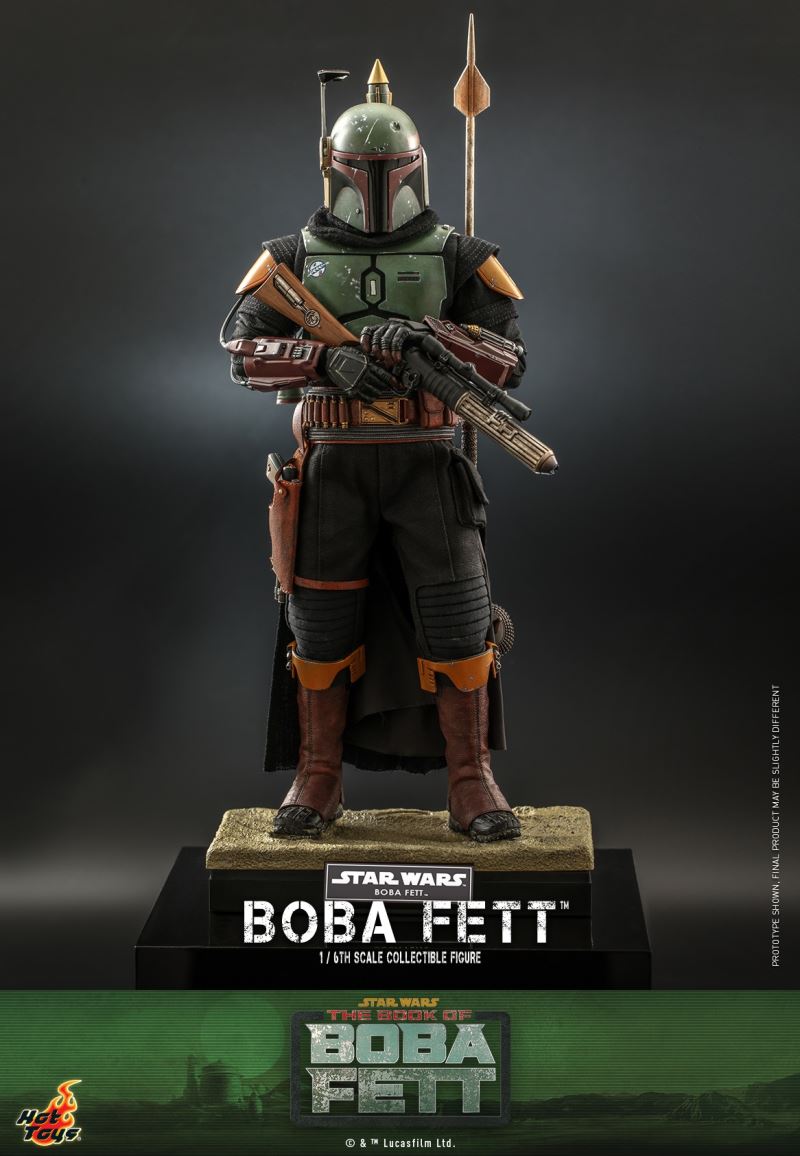 ABOUT THIS SIXTH SCALE FIGUREHaving survived the Sarlacc™ pit on Tatooine™, Boba Fett reclaimed his armor and took over the throne at Jabba’s Palace™. No longer just a hired gun, he reinvents himself on Tatooine alongside Fennec Shand™ to be a respected leader to the people of Mos Espa™. Sideshow and Hot Toys are delighted to officially introduce the new detailed Boba Fett Sixth Scale Figure from the live-action series!This Star Wars collectible figure features a newly developed Boba Fett helmet and armor, finely tailored under-suit, a jetpack, a blaster pistol, a blaster rifle, a gaffi stick, and a sand-themed figure base! Face off with the stranger from the desert with this new Boba Fett collectible figure!BrandStar WarsManufacturerHot ToysTypeSixth Scale FigureGenreSci-fi Pop CultureWHAT'S IN THE BOX?The Boba Fett Sixth Scale Figure features:Authentic and detailed likeness of Boba Fett in Star Wars: The Book of Boba FettA newly crafted Boba Fett helmet with articulated rangefinderSpecially applied distress effects on armor, weapons and accessoriesBody with over 30 points of articulationsApproximately 30 cm tallEight (8) pieces of interchangeable gloved hands including:One (1) pair of relaxed handsOne (1) pair of hands for gaffi stickOne (1) pair of hands for holding pistolOne (1) pair of gesture hand Costume:One (1) Boba Fett’s Mandalorian armor and vest with distressed effectsOne (1) pair of brownish red-colored gauntlets with weathering effectsOne (1) grayish-black colored undersuitOne (1) leather-like brown belt with ammo and pistol holsterOne (1) pair of black-colored boots with brown boot coversOne (1) pair of yellow-colored knee guardsWeapons: One (1) gaffi stickOne (1) blaster rifleOne (1) blaster pistolOne (1) wired grappling hookAccessories:One (1) jetpack with distressed effectsOne (1) pair of real-like thruster fire accessories (attachable to jetpack)One (1) flamethrower effect accessory (attachable to gauntlet)A sand themed figure stand with Star Wars logo and character nameplateADDITIONAL DETAILS & DIMENSIONSMaterialsProduct SizeHeight: 11.81 (30 cm) *Box SizeHeight: 6.00 (15.2 cm)Width: 10.00 (25.4 cm)Depth: 16.00 (40.6 cm) *Shipping Weight5.00 lbs (2.3 kg) ** Size and weight are approximate values.SKU911276UPC4895228611567Item shown is a prototype. When shipped, the final production piece may differ in appearance.© & TM Lucasfilm Ltd. © 2022 Hot Toys Limited. All Rights Reserved.