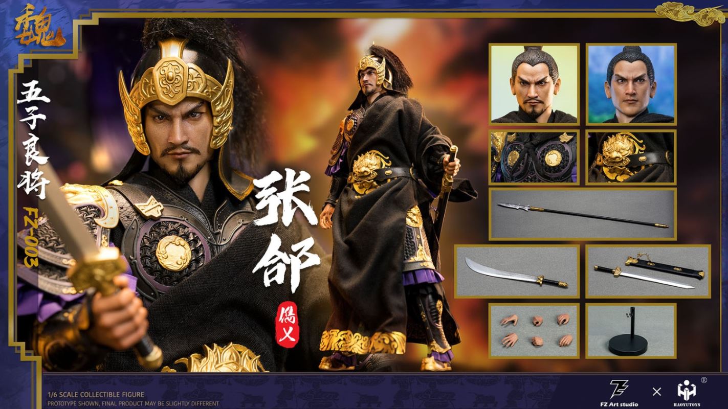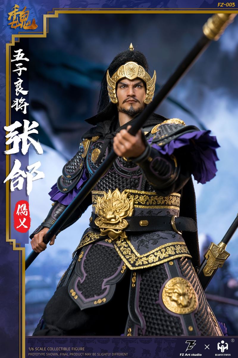 FZ Art studio×HAOYUTOYS 1/6 The Legend of Heroes - Five Great Generals Zhang He Zhang JunyiNO: FZ-003Accessories list:- A youth head carving- A middle-aged head carving- One movable body- Six replacement handsApparel:- One set of full body armor- One black top- One pair of black trousers- One leather belt (two sections)- One girdle- One cape- One robeArms:- One long gun- One short knife- One sword- One scabbardOther Accessories:- A bracket- A desk cardProduct height is about 33 cmShipment Date: Q3 2022*Pictures are samples, for reference only, large quantities may be slightly different.*If the product is adjusted or changed during production, we will issue a notification in time.