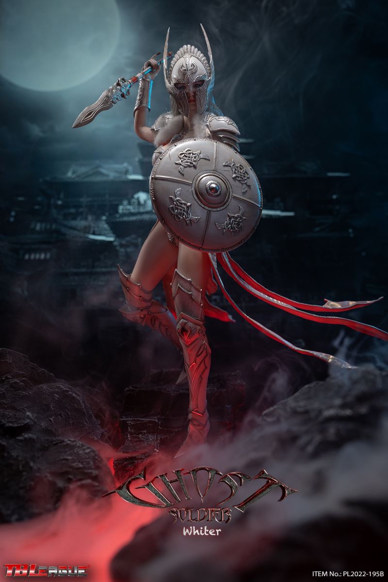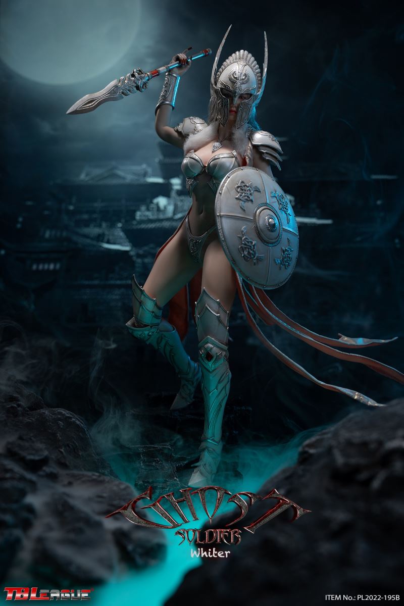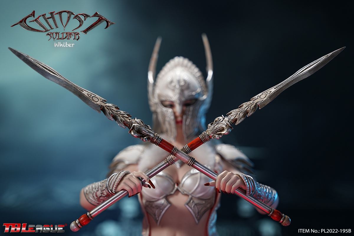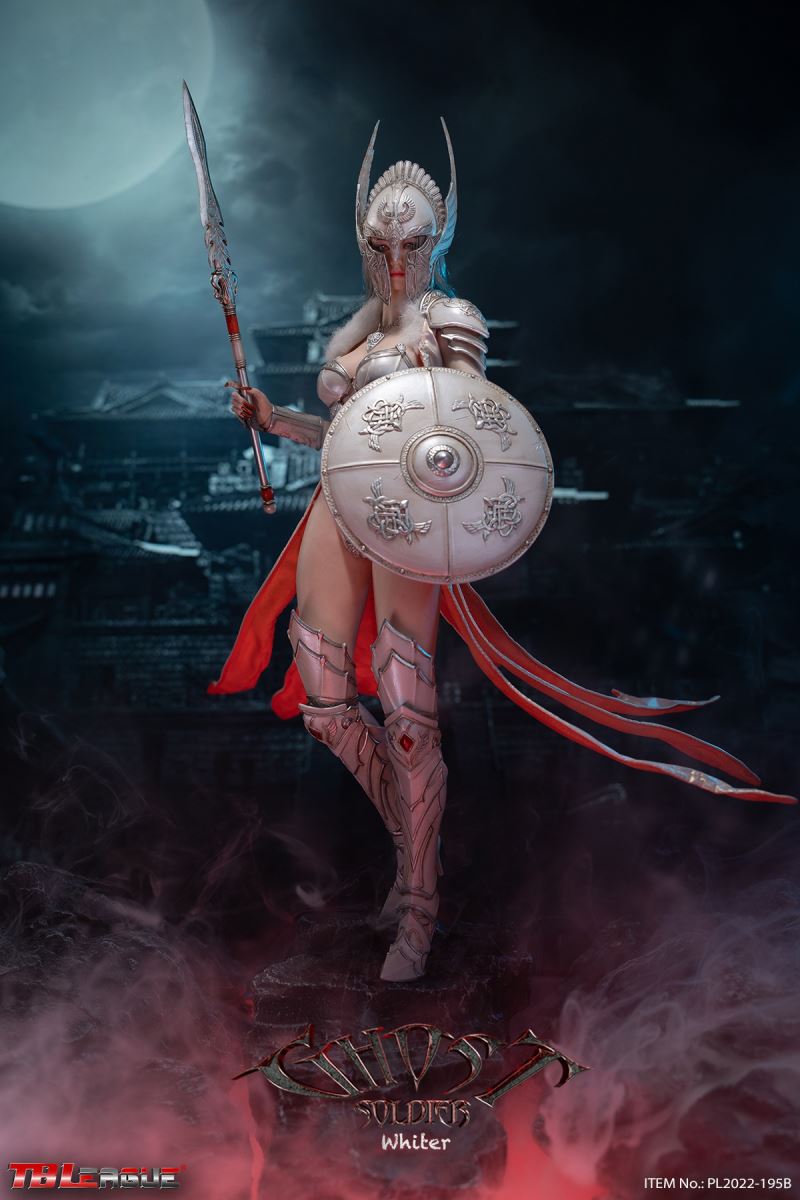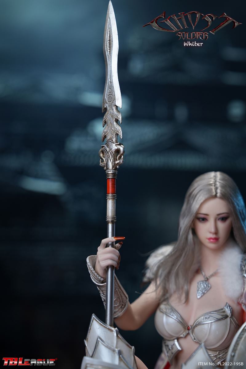 Ghost Soldier – White 1/6Scale Action FigureItem Name: Ghost Soldier – White 1/6 Scale Action FigureItem No: PL2022-195BBar Code: 697 127233 151 9Packing List:1) 1 * helmet2) 1 * head sculpt3) 1 * TBLeague 1/6 scale female seamless body with metal skeleton4) 1 * cloak-like piece of clothes5) 1 * chest plate6) 1 * neck accessory7) 1 pair * underpants8) 3 pairs * interchangeable hands9) 2 pcs * shoulder armor10) 2 pcs * armor for lower arms11) 2 pcs * armor for thighs12) 1 pair * high-heeled boots13) 2 * short spear14) 1 * shieldPackaging:1 product/individual boxGW: 1.52 kgMeasurements: 24.3cm*9.0cm*38.0cm6 products/master cartonGW: 10.02 kgMeasurements: 58.2cm*25.5cm*40.5cm