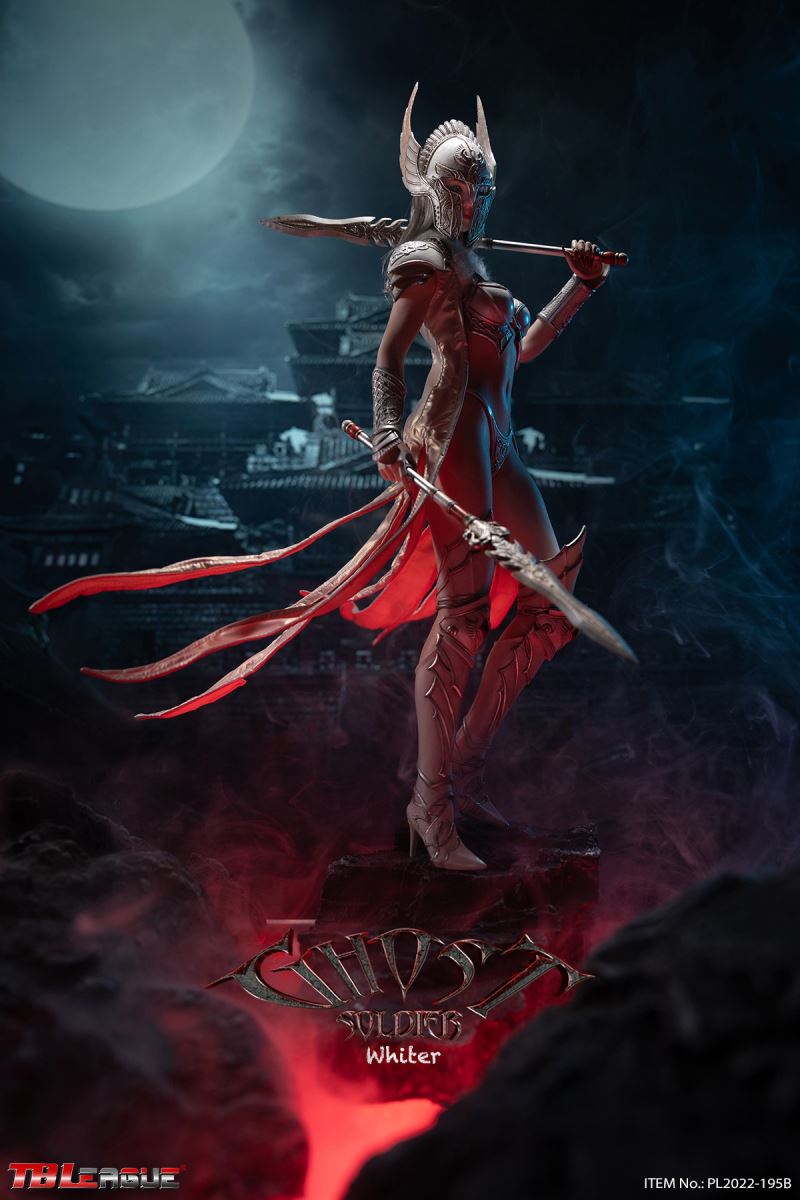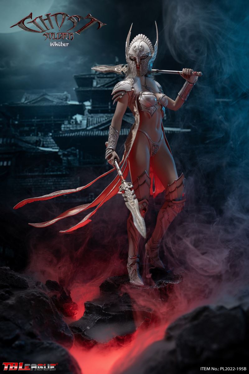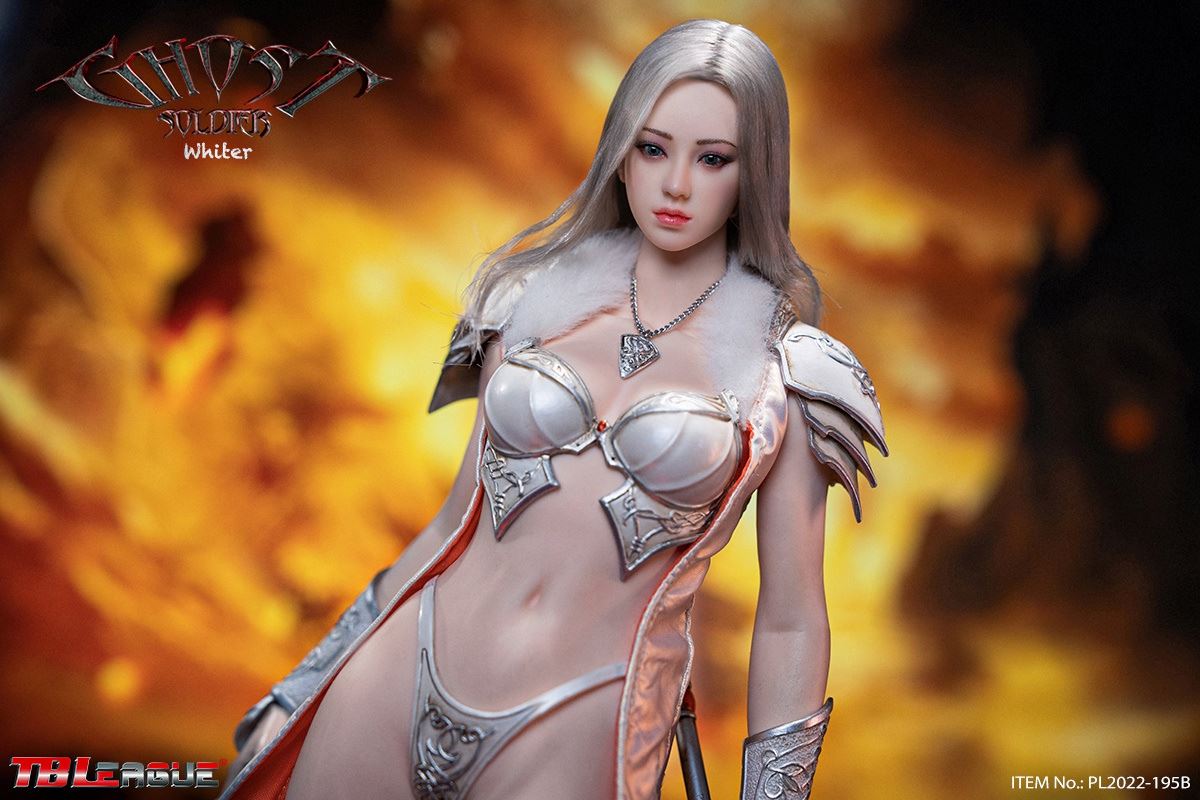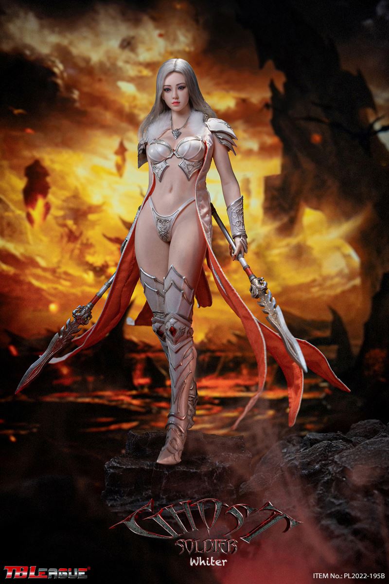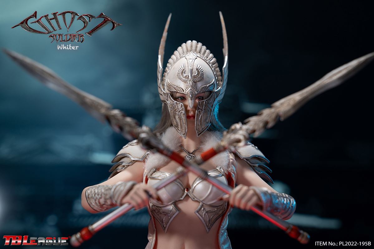 Ghost Soldier – White 1/6Scale Action FigureItem Name: Ghost Soldier – White 1/6 Scale Action FigureItem No: PL2022-195BBar Code: 697 127233 151 9Packing List:1) 1 * helmet2) 1 * head sculpt3) 1 * TBLeague 1/6 scale female seamless body with metal skeleton4) 1 * cloak-like piece of clothes5) 1 * chest plate6) 1 * neck accessory7) 1 pair * underpants8) 3 pairs * interchangeable hands9) 2 pcs * shoulder armor10) 2 pcs * armor for lower arms11) 2 pcs * armor for thighs12) 1 pair * high-heeled boots13) 2 * short spear14) 1 * shieldPackaging:1 product/individual boxGW: 1.52 kgMeasurements: 24.3cm*9.0cm*38.0cm6 products/master cartonGW: 10.02 kgMeasurements: 58.2cm*25.5cm*40.5cm