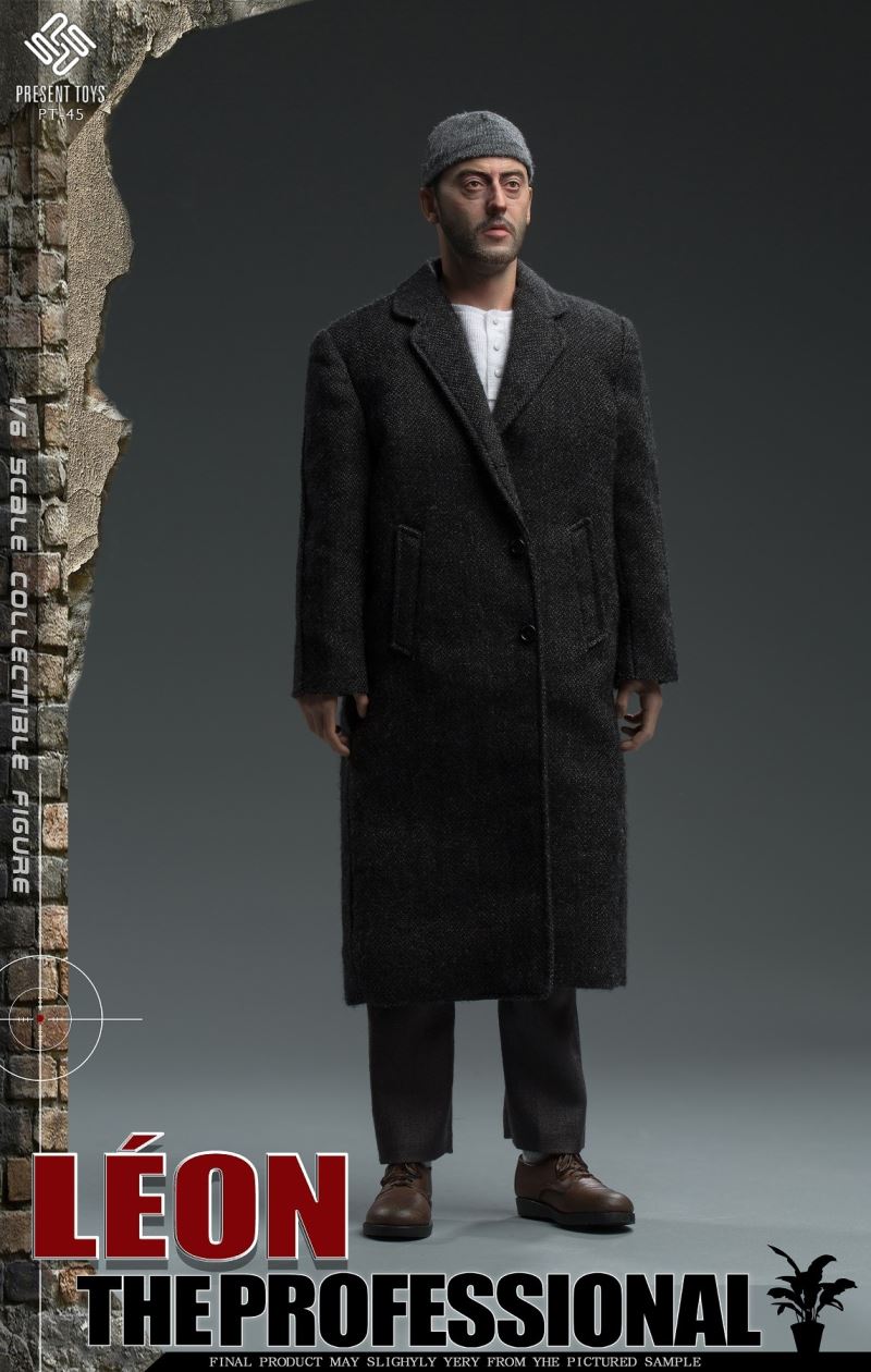 PRESENT TOYS New Product: 1:6 collectible toy –TheProfessional LéonProduct Name: The Professional LéonProduct ID: PT-sp45Scale: 1/6Product List:Authentic head sculpt *1Articulated body *1Hand *6Foldable weapon box *1( Leather production )Plant *1Sunglasses *1Milk glass *1Milk cartridge *2Kraft paper bag *1Figure Stand *1Folded Knife *1Grenade *6Piler *1German Heckler & Koch USP*1US Colt M1911A1*1Italy Beretta 92FS*1Browning HP*1Revolver Ruger SP101*1Revolver W586*1Costume:Grey cap *1Black suit *1White shirt *1Black vest *1Tactical gun belt *1 ( Leather production )Pants *1Socks *1Shoes *2Released date 2nd season 2023