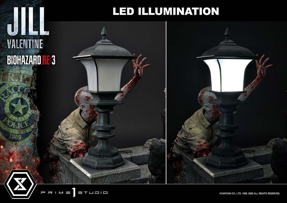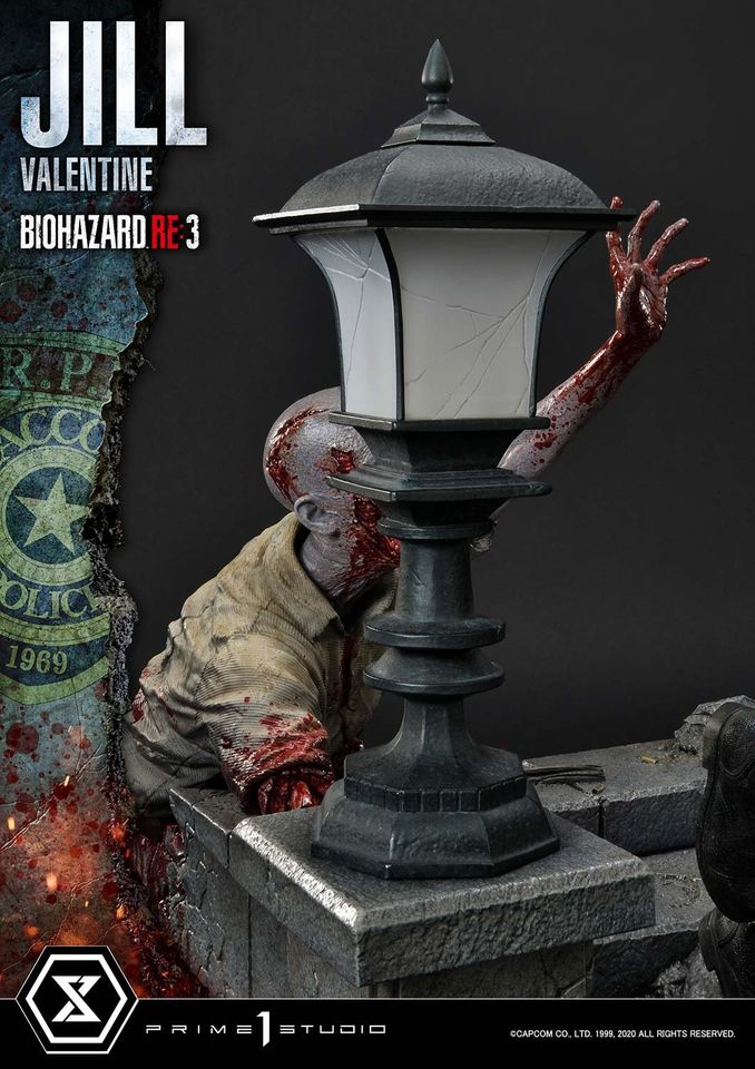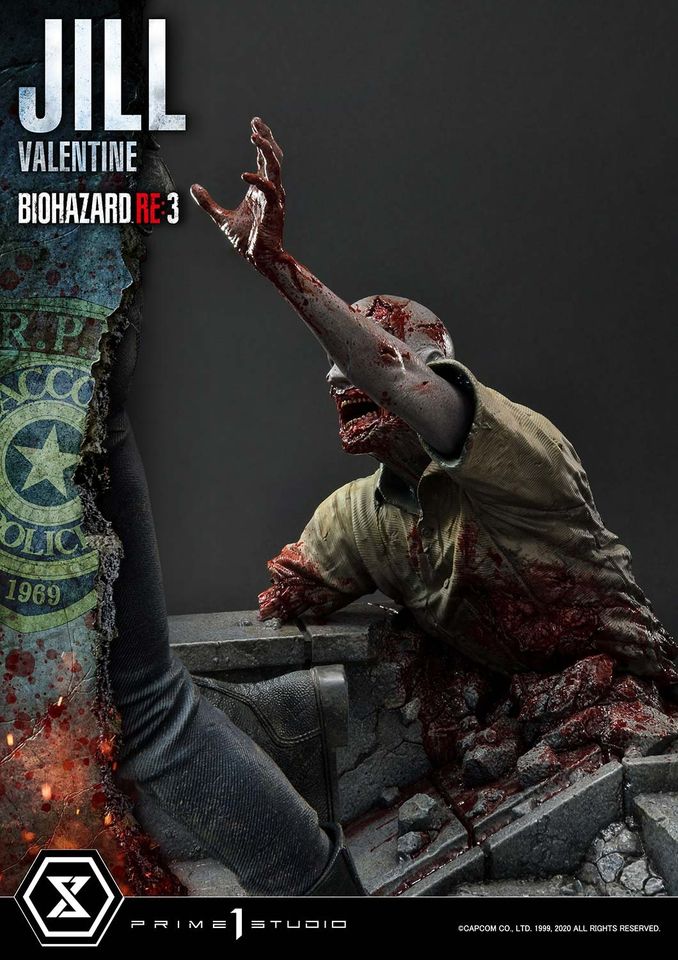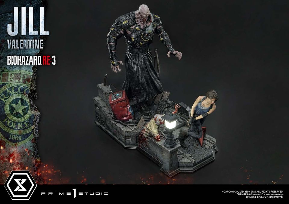 UPMRE3-01: JILL VALENTINE (RESIDENT EVIL 3)“There isn’t going to be any rescue. We have to get out of here!”Prime 1 Studio is proud to present Jill Valentine’s desperate escape from Raccoon City: the 1:4 Scale Ultimate Premium Masterline UPMRE3-01 Jill Valentine from Resident Evil 3!Known as Biohazard in Japan, the Resident Evil franchise has been thrilling survival horror video game fans for decades! In Resident Evil 3, Jill Valentine is in a race against time to find a vaccine for the T-Virus, and to escape the destruction of Raccoon City from devastating a missile strike by the US Government!In this awesome and gritty 20-inch-tall statue, Jill Valentine is in mortal peril! Prime 1 Studio sculptors have captured the tense atmosphere and ominous danger of Resident Evil. Jill’s seemingly simple outfit is rendered in stunning textural sculpting and intricate detailing.Using the game as solid inspiration, Prime 1 Studio painters have pushed the envelope on this amazing piece’s paint job. They have successfully balanced realism and artistic interpretation to bring about the most compelling visual and environmental effects. You will have a choice of switching between two different portraits of Jill Valentine! The mood of the statue is dictated by the weathering, shading, and highlighting of the piece.On her cinematic base, Jill runs down a set of stairs, just barely out of reach of an infected zombie. All this, as Raccoon City is destroyed all around her!UPMRE3-01 Jill Valentine is the perfect companion piece and can be displayed with UPMRE3-02 Nemesis! Whether or not you have other Resident Evil statues, you owe it to yourself to get this amazing action-packed statue of Jill Valentine!!! Pre-Order Today![Product Specifications]-Statue Size approx. 19.7 inches tall [H:50cm W:41cm D:46cm]-Resident Evil 3-themed staircase base-Two (2) Swappable Jill Valentine portraits[Notice]-Prototype samples are shown.-Product details could be subject to change without further notice.