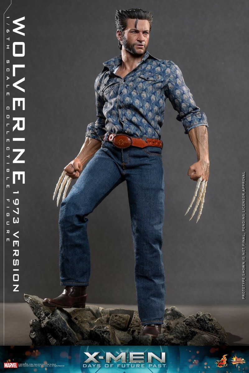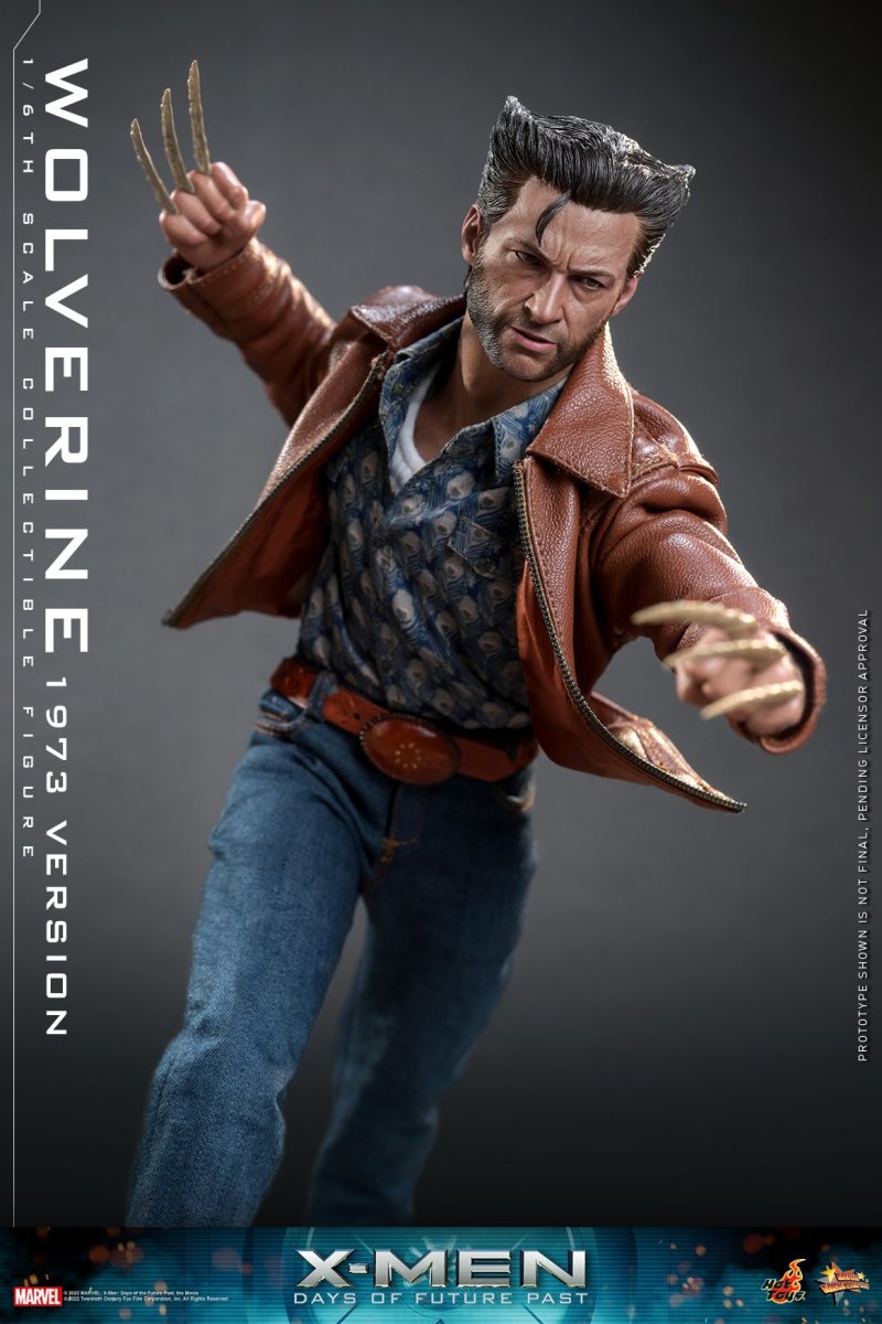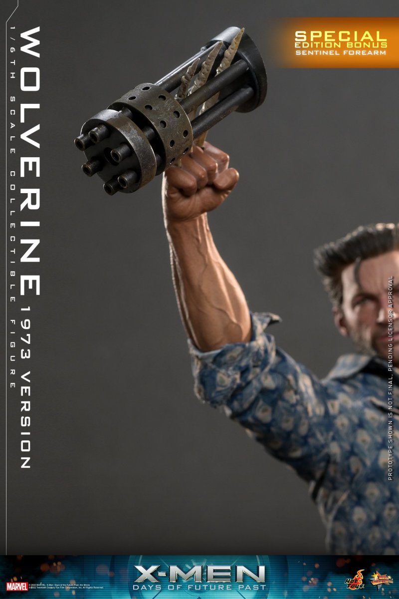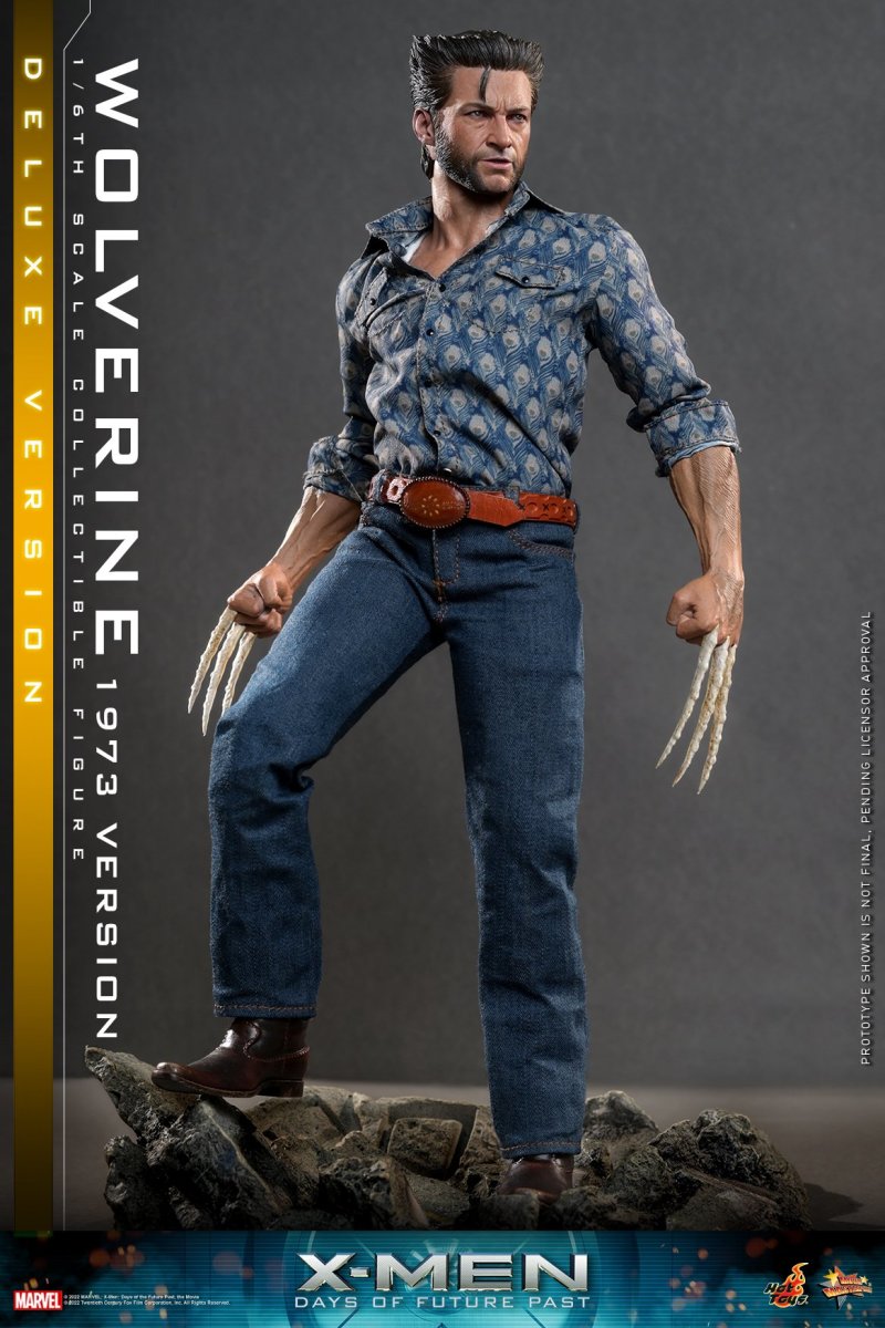 In a future world torn apart by hatred of all mutants, Wolverine is one of the few remaining X-Men able to continue the fight against Sentinels - the highly efficient killing mutant machines. Now older and wiser, Wolverine volunteers to go back in time and rally the X-Men of the past to restore the world to its rightful path.Hot Toys is thrilled to revisit the highly-acclaimed X-Men: Days of Future Past movie by presenting a Deluxe Version of Wolverine outfitted in 1973 fashion as the latest 1/6th scale collectible figure, comes with a remarkable diorama base to compliment the display.The movie-accurate collectible figure is beautifully crafted based on the appearance of Hugh Jackman as Wolverine in the movie. It features a newly developed head sculpt and hair sculpture with impressive likeness, carefully tailored costume with a genuine leather jacket to complete his striking look, interchangeable hands with bone claws and a pair of seamless forearms and clawed hands for Wolverine’s alternate styling.The Deluxe Version includes a greatly detail diorama figure base that replicates the peculiar terrain of combat.A Special Edition available in selected markets includes a Sentinel forearm machine gun.This Wolverine figure will be a unique one among your collection!SPECIFICATIONSPRODUCT CODEMMS660PRODUCT NAMEWOLVERINE (1973 VERSION)HEIGHTAPPROXIMATELY 30 CM TALLPOINTS OF ARTICULATIONS30SPECIAL FEATURESDIORAMA FIGURE STAND BASE THAT REPLICATES THE PECULIAR TERRAIN OF COMBAT, NEWLY DEVELOPED HEAD SCULPT, BROWN LEATHER JACKETPRODUCT RELEASE DATEAPPROXIMATELY Q4, 2023 – Q1, 2024ARTISTSThe 1/6th scale Wolverine (1973 Version) Collectible Figure (Deluxe Version) specially features:- Authentic and detailed likeness of Hugh Jackman as Wolverine in X-Men: Days of Future Past- One (1) newly developed head sculpt with screen-accurate facial expression and skin textures- Highly-detailed dark brown short hair sculpture and detailed beard- Approximately 30 cm tall- Muscular body with over 30 points of articulations- One (1) pair of forearm and bone clawed hands with seamless wrist joints- Six (6) pieces of interchangeable hands including:- One (1) pair of fists with bone claws- One (1) pair of fists- One (1) pair of relax hands- Each piece of head sculpt is specially hand-paintedCostumes:- One (1) brown genuine leather jacket- One (1) blue colored shirt with patterns- One (1) white undershirt- One (1) black colored shirt- One (1) pair of dark blue jeans- One (1) brown colored belt- One (1) pair of brown colored shoesAccessory:- Specially designed diorama figure stand with artificial grass***Exclusive Bonus Accessory for Special Edition:- One (1) Sentinel forearm machine gun***Exclusive to Deluxe VersionRelease date: Approximately Q4, 2023 – Q1, 2024*Prototype shown is not final, pending licensor approval**Product details could be subjected to change without further notice© 2022 MARVEL; X-Men: Days of the Future Past, the Movie © 2022 Twentieth Century Fox Film Corporation, Inc. All Rights Reserved.© 2022 Hot Toys Limited. All Rights Reserved.