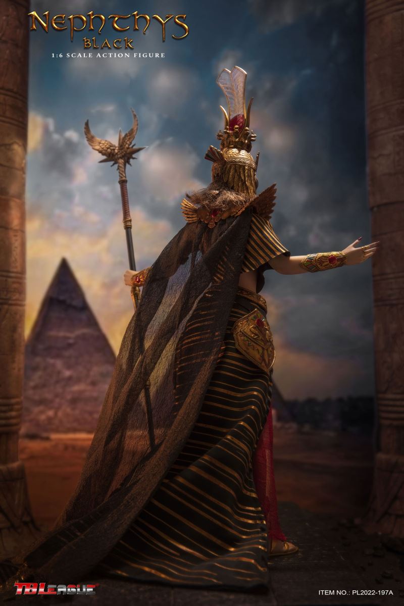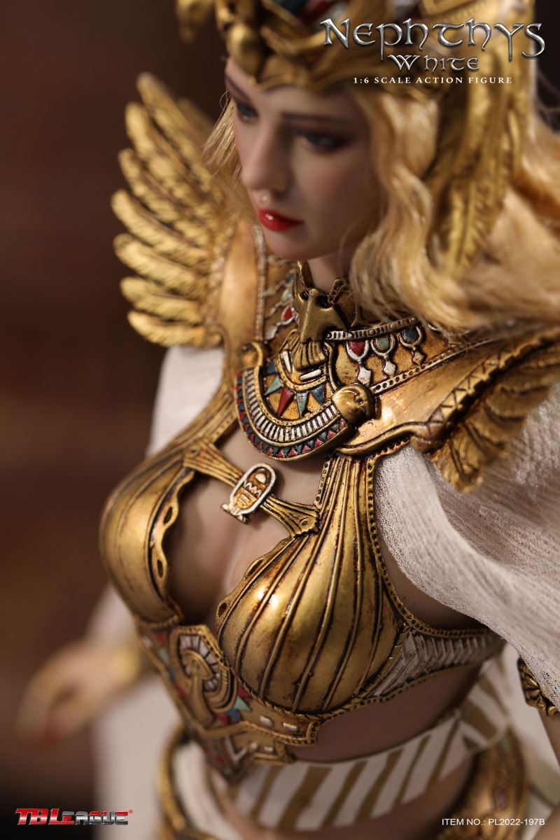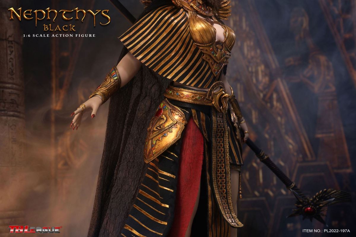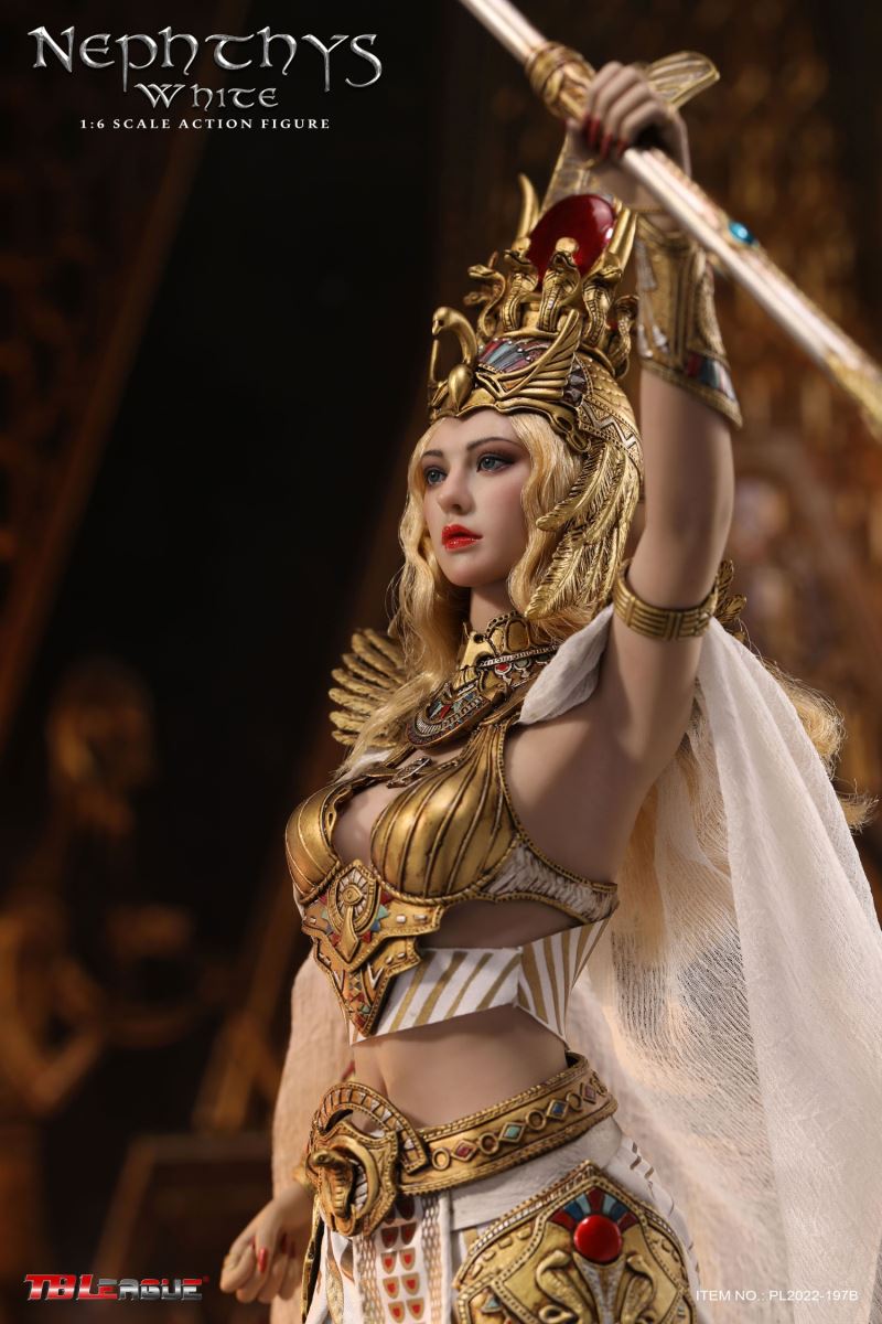 Nephthys - Black 1/6 Scale Action FigureItem Name: Nephthys - Black 1/6 Scale Action FigureItem No: PL2022-197ABar Code: 697 127233 155 7Packing List:1) 1 x crown2) 1 x head sculpt3) 1 x TBLeague 1/6 scale female seamless body with metal skeleton4) 1 x one-piece armor for upper body5) 1 x cloak6) 1 x one shoulder shawl for right arm7) 1 x upper arm bracelet8) 1 pair x armor pieces for lower arms9) 1 x decorative belt for waist (cobra ornament)10) 1 x white waist belt11) 1 pair x armor pieces for thighs12) 1 x long skirt13) 1 pair x underpants14) 1 x fringe belt for left thigh15) 1 x snake design bracelet for lower left leg16) 1 x ankle bracelet17) 1 xa strip of fabric for fastening noto right ankle18) 1 pair x sandals19) 1 x ankh symbol20) 3 pairs x interchangeable hands21) 1 x sceptrePackaging:1 product/individual boxGW: 1.63 kgMeasurements: 23cm*10cm*36cm6 products/master cartonGW: 10.79 kgMeasurements: 50cm*36.7 cm*40.5cm--------------------------Nephthys - White 1/6 Scale Action FigureItem Name: Nephthys - White 1/6 Scale Action FigureItem No: PL2022-197BBar Code: 697 127233 156 4Packing List:1) 1 x crown2) 1 x head sculpt3) 1 x TBLeague 1/6 scale female seamless body with metal skeleton4) 1 x one-piece armor for upper body5) 1 x cloak6) 1 x one shoulder shawl for right arm7) 1 x upper arm bracelet8) 1 pair x armor pieces for lower arms9) 1 x decorative belt for waist (cobra ornament)10) 1 x white waist belt11) 1 pair x armor pieces for thighs12) 1 x long skirt13) 1 pair x underpants14) 1 x fringe belt for left thigh15) 1 x snake design bracelet for lower left leg16) 1 x ankle bracelet17) 1 xa strip of fabric for fastening noto right ankle18) 1 pair x sandals19) 1 x ankh symbol20) 3 pairs x interchangeable hands21) 1 x sceptrePackaging:1 product/individual boxGW: 1.63 kgMeasurements: 23cm*10cm*36cm6 products/master cartonGW: 10.79 kgMeasurements: 50cm*36.7cm*40.5cm
