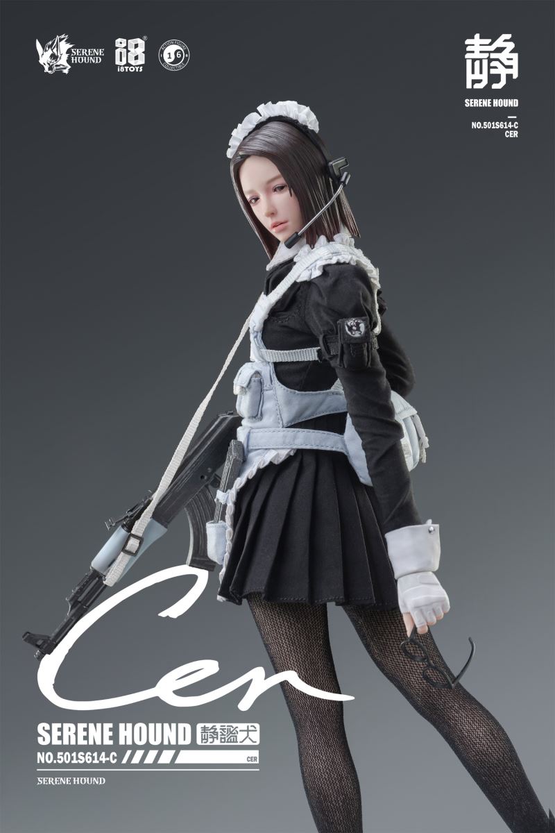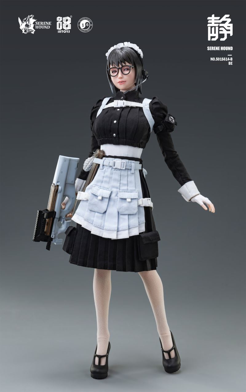 Serene Hound Cer, 501S614 -CSerene Hound Cer, 501S614-C Serene Hound Be (Abu), 501S614-BSerene Hound Be, 501S614-BRus, 501S614-RSerene Hound Rus, 501S614-Rquiet dogCerberus Maidi8TOYS 1/6 Cer Serene Hound Troop Figure ---501S614-CSerene Dog Cer , 501S614-Clist· Female head sculpt (Movable eyes)· Female body (hybrid teenage body with metal skeleton)· Hand*10 Hands 10pcs· Tactical back bag· Black Tactical small bag 2pcs Tactical small bag 2pcs· Black uniform long sleeve dress· Maid Belly Pocket· Black pantyhose· Black high-heeled shoes· Black glasses· Maid earphone· AK- 47 Assault Rifle with extra 2pcs Cartridge clipi8TOYS 1/6 Be Serene Hound Troop Figure ---501S614-BSerene Dog Be (Abu), 501S614-Blist· Female head sculpt (Movable eyes)· Female body (hybrid teenage body with metal skeleton)· Hand*10 Hands 10pcs· Tactical straps· Tactical back bag· Black Tactical small bag 2pcs Tactical small bag 2pcs· Black uniform short skirt· Black uniform Jacket· white bodysuit· white underpant· white long stockings· Maid Belly Pocket· Black high heels shoes· Black glasses· Maid earphone· MK2 grenade*2pcs MK2*2pcs· P90 with extra 1pc Cartridge clipi8TOYS 1/6 Rus Serene Hound Troop Figure ---501S614-RSilent Dog Rus , 501S614-Rlist· Female head sculpt (Movable eyes)· Female body (hybrid teenage body with metal skeleton)· Hand*10 Hands 10pcs· Tactical bag 1pcs Tactical back bag 1pc· Black uniform long sleeve long dress· Maid Belly Pocket· White socks· Black high heels shoes· Black glasses· Maid earphone· M26 grenade*2pcs M26*2pcs· MK23 Combat Pistol*2pcs MK23 MOD 0*2pcsArrival estimated: First Quarter 2023Shipment Date: Q1 2023