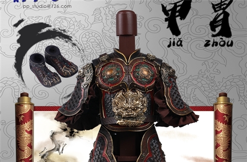 PP Studio new product: 1/6 alloy ancient Chinese armor suit No. P1015A&P1016A(Support is not included in the package)Material: alloy, clothAccessories: 1 set of alloy breastplate1 pair of alloy shoulder armor1 pair of alloy skirt armour1 pair of alloy hand armour1 pair of alloy leg armor1 pair of alloy shoes1 alloy belt animal head1 leather belt