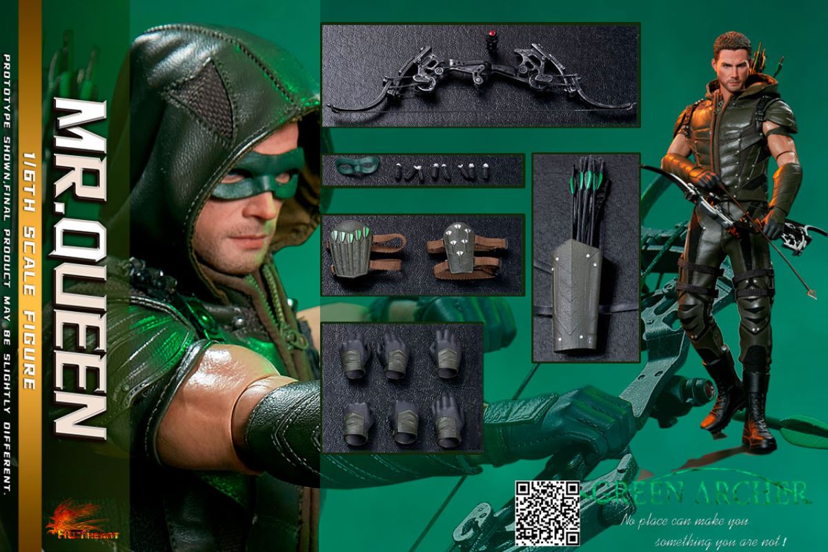 Hot Heart 1/6 scalecollectible figure, GREEN ARCHER-Mr.Queen(FD011)One head sculpt with movie-accurate facialexpressionOne newlydeveloped strong male-body approximately 31 cm tallOne set of green eyes-patchOne set of short sleeveOne set of combat jacket(high toughnessmicrofiber leather)One set of combat trousers(high toughnessmicrofiber leather)One pair of shoulder padOne pair of wristbandsThree pairs of interchangeable handsOne pair of combat bootsOne set of modern bowEight set of arrowheadsTwo set of armed leg setsOne set of quiver