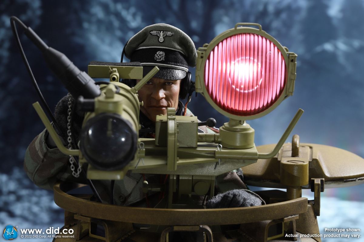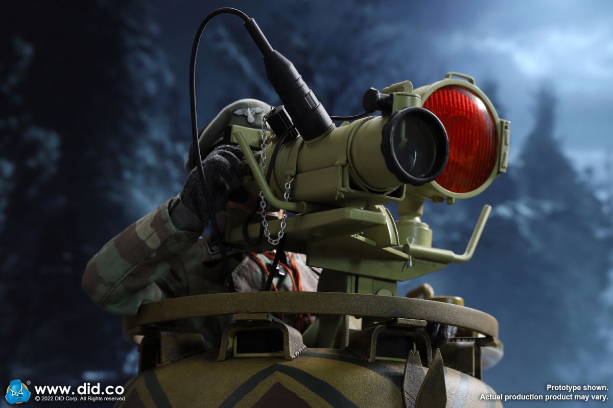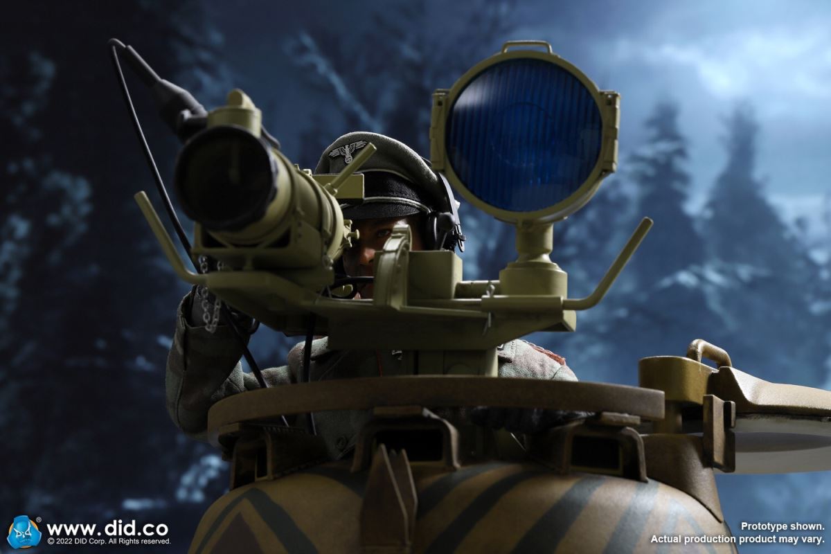 DID's new product E60068 1/6 Panther tank diorama 1/6 Panther G tank conning tower platform scene (this new product does not contain the characters in the picture) Highlights: 1/6 metal Panther tank hatch. Detachable, disassembled, light-emitting, interchangeable lens FG1250 Sparrowhawk night vision device. Wooden base with anti-magnetic armor and finely painted metal shield and cross.Suggested retail price RMB: 890E60068 1/6 Panther Tank DioramaBrief IntroductionTo better present Jager and re-create the combat scenes of the WWII German Panzer Commander, DID presents you the 1/6 Panther tank diorama.It includes the Panther G Commander cupola, wooden base and FG1250 IR night vision scope. The panther G Commander cupola is made of metal and could be opened flexibly. Wooden base with Zimmerit coating on both sides, cross emblems and metal-made panzer emblem are included.The night vision scope is made of plastic and composed of the infrared night vision device, exchangeable lens and bracket. It could be lit up and is made for night fighting.1/6 Panther tank diorama is the perfect match for the German Panzer Commander. Just come and get it!PS: 1/6 WWII German Panzer Commander – Jager (D80160) is NOT included in E60068.Full Part ListBase:1 FG1250 IR night vision scope (can be lit up and with exchangeable lens)2 Panther G commander cupola (metal)3 Wooden base (with Zimmerit coating, cross emblem and metal panzer emblem)IntroductionTo better show Jager and recreate the battle scene of a German armored commander in WWII, DID shows you a 1/6th Panther tank stereogram.It includes a Panther G Commander cupola, wooden base and FG1250 infrared night vision. The panther G Commander cupola is made of metal and can be opened flexibly. Includes wooden base with Zimmerit coating on both sides, cross badges and metal armor badges.The night vision device is made of plastic and consists of an infrared night vision device, a replaceable lens and a bracket. It can be ignited and is designed for night combat.The 1/6 Panther tank diorama perfectly matches the German armored commander. Come and get it!Note: WWII 1/6 German Armored Commander - Jagger (D80160) is not included in E60068.Accessories List:Base1 FG1250 Infrared Night Vision Device (lights up and comes with interchangeable lenses)2 Panther G Commander Cupola (metal)3 Wooden base (with Zimmerit coating, cross badge and metal armor badge)