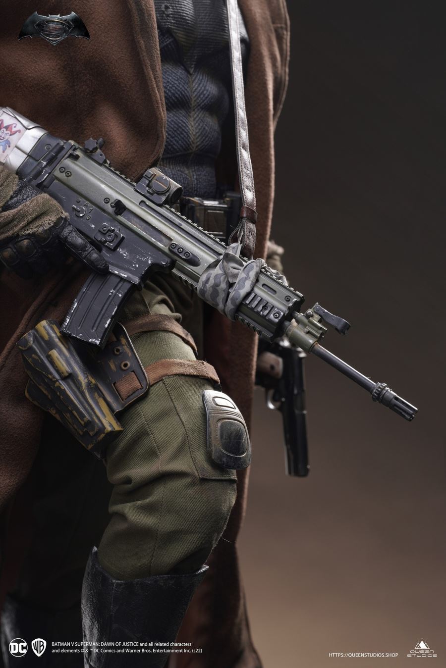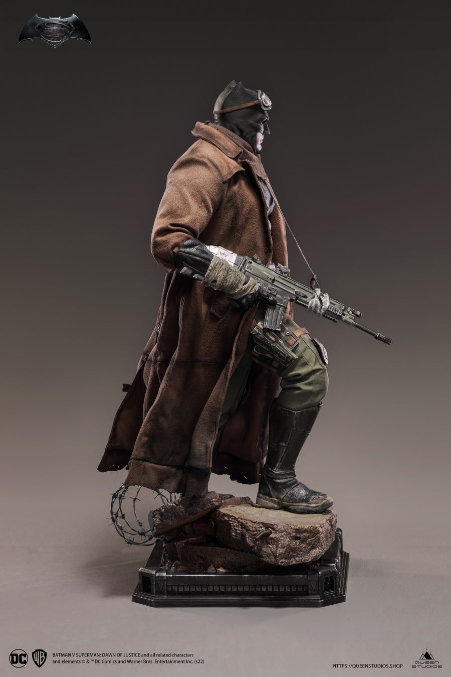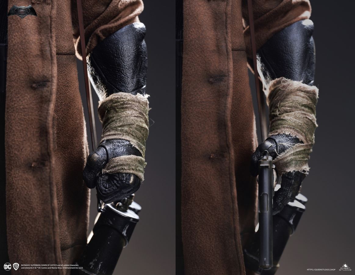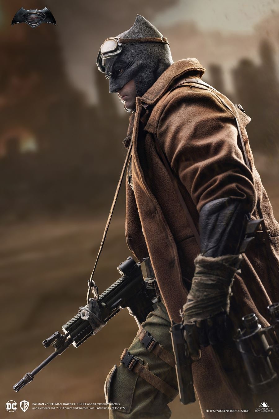 𝗣𝗥𝗢𝗗𝗨𝗖𝗧 𝗜𝗡𝗙𝗢𝗥𝗠𝗔𝗧𝗜𝗢𝗡*Material: Resin, Fabric Clothing, PUProduct Size: 53cm (H) × 27cm (W) × 30cm (D)Estimated Delivery Time: Q4 2023Edition Size: 800*Full list of materials will be listed on the product web page.----------------------------------------------------𝗔𝗯𝗼𝘂𝘁 𝘁𝗵𝗲 𝘀𝘁𝗮𝘁𝘂𝗲The Knightmare Batman is inspired by the “Knightmare Sequence” in Batman v Superman: Dawn of Justice. To capture the character we’ve opted for a powerful standing pose. Batman holds his weapon in his right hand and a pair of binoculars in his left. His left hand can also be switched-out.His coat is made of real fabric, and will include weathering around the edges to make the outfit more movie accurate. Collectors can also chose to display the statue with the goggles on or off.𝗔𝗯𝗼𝘂𝘁 𝘁𝗵𝗲 𝗕𝗮𝘀𝗲The base includes barbedwire surrounding the rocks below tying the whole piece together.