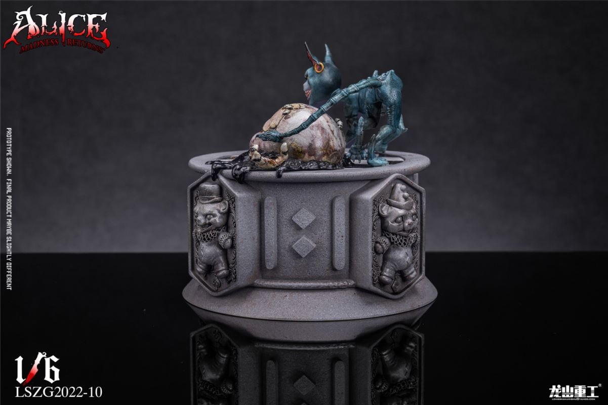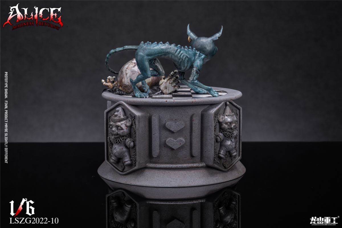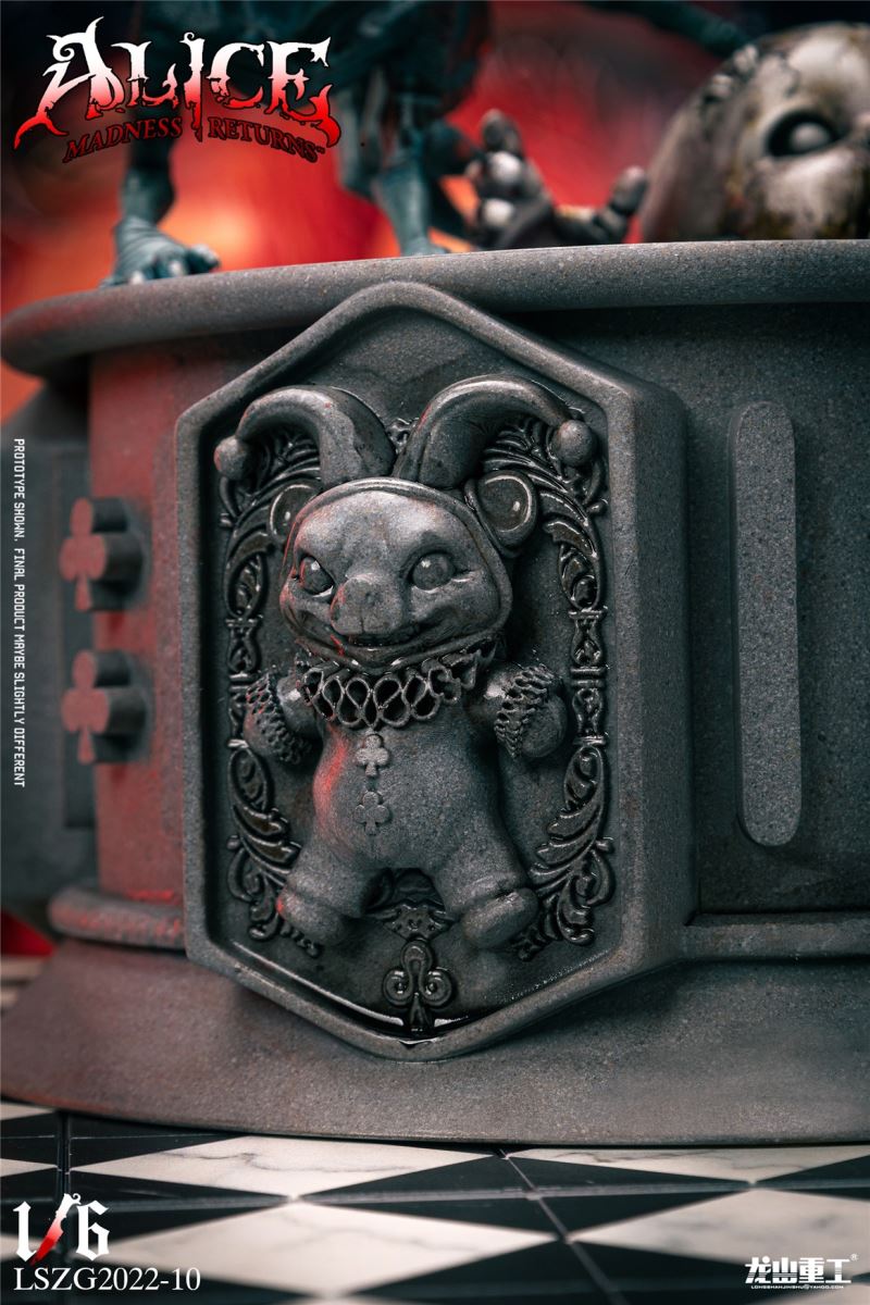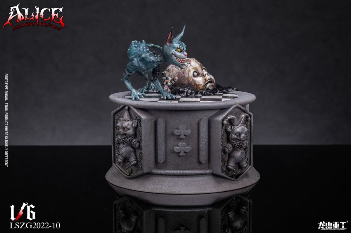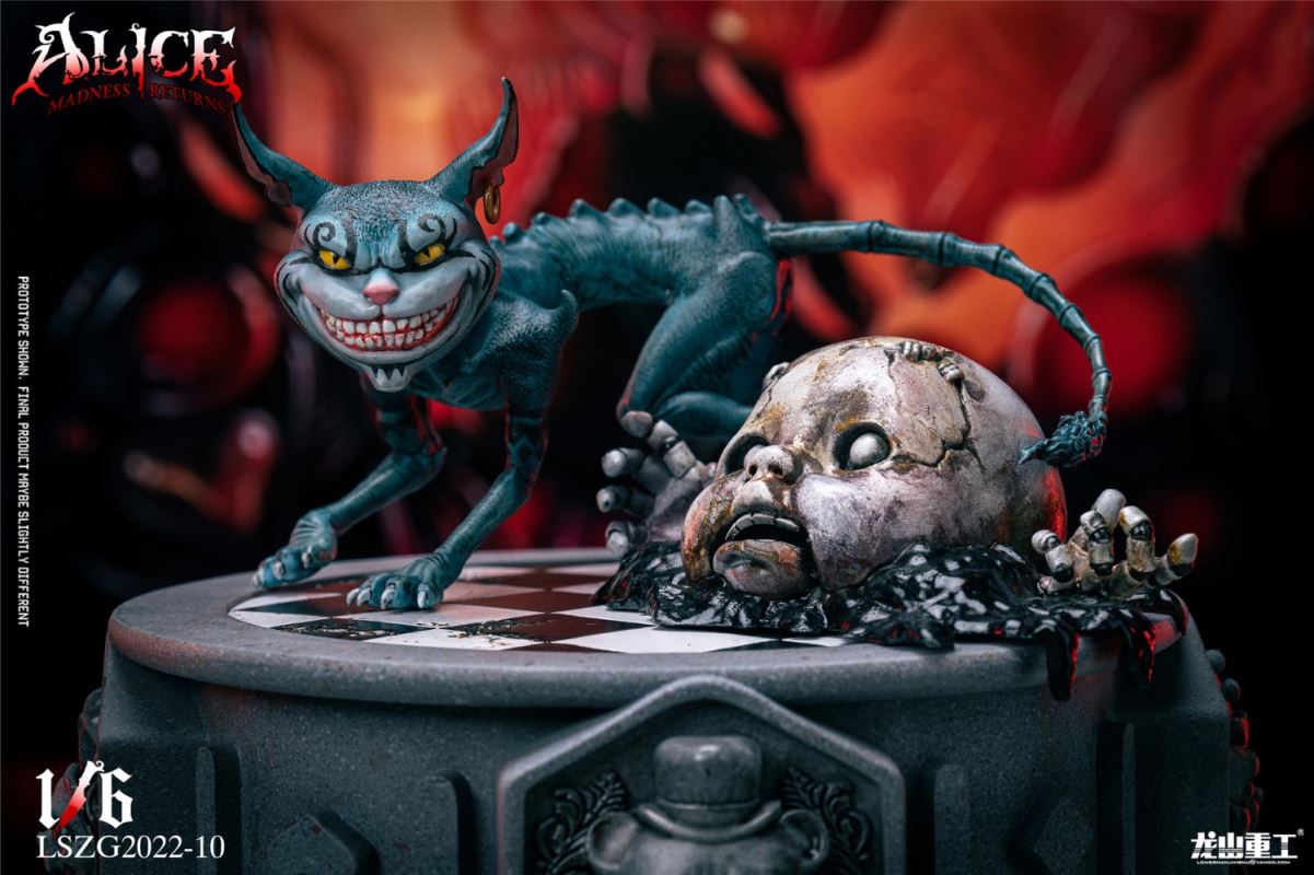 LONGSHANZHONGGONG.TOYS LSZG2022-10 1/6 Alice returns crazilyProduct No: LSZG2022-10Product list:TBL-S36 Gelatinite X1Simulated head carving X1Dress X1Underwear X1Waist X1Long leg socks X2Leather boots X2Hand X5Cutter X1(pure copper)Small single angle smashing X1Cheshire Cat X1Imp X1Platform X1