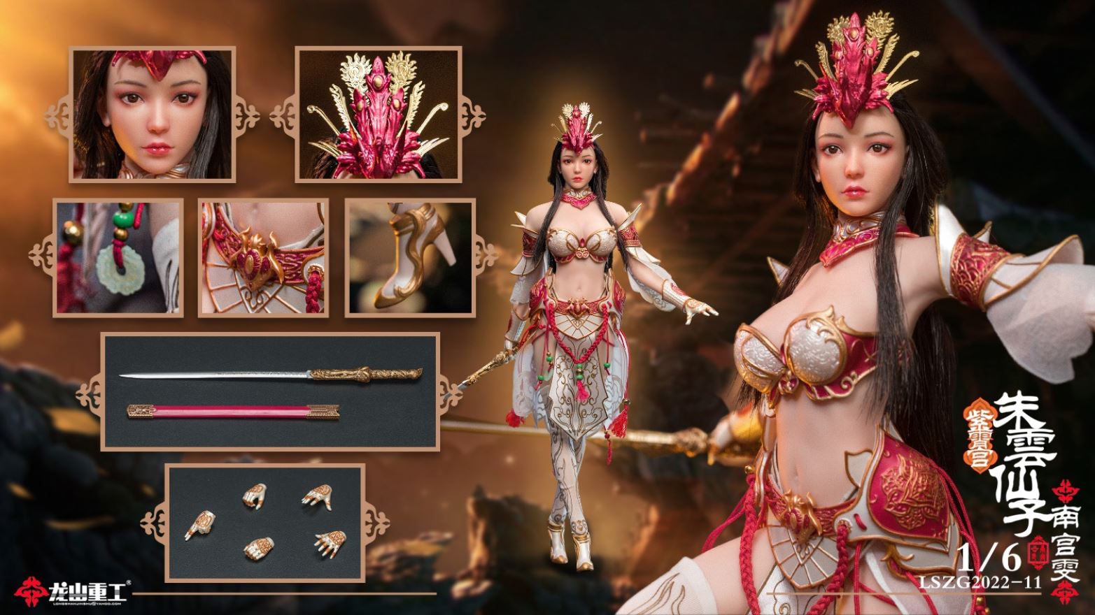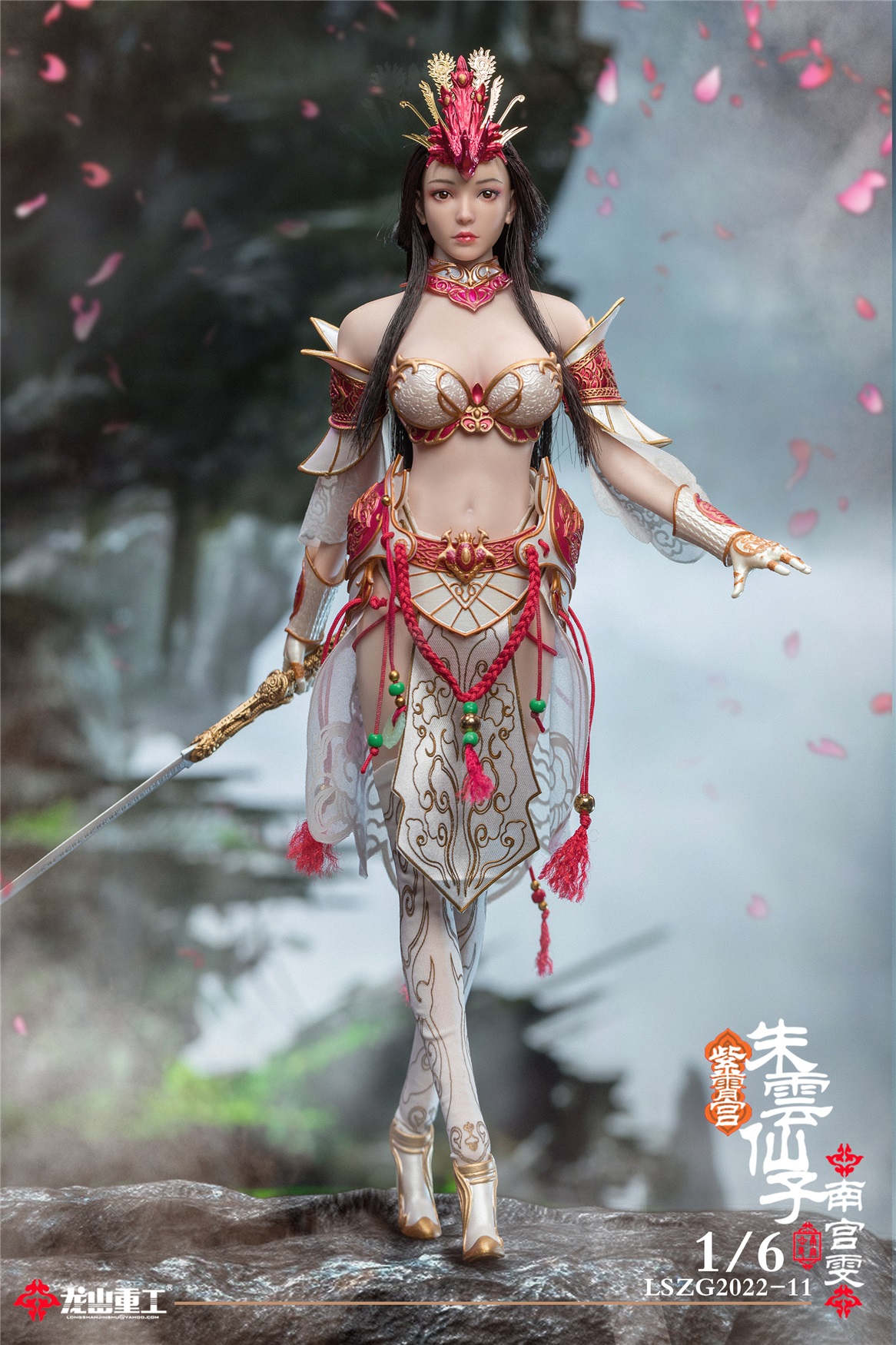 Longshan Heavy Industry LSZG2022-11 1/6 Zixia Palace Zhu Yun Fairy (Nangong Wen)Product No. LSZG2022-11Product list:TBL-S10D encapsulated plastid x1Simulated head carving X1Crown X1Chest armor X2Guard arm X2Guard X2Skirt armour X4Hand X5Shoes X2Flower sleeve X2Jade pendant X1Underwear X1Swing skirt X1Long leg socks X2Youlong Sword X1Platform support X1