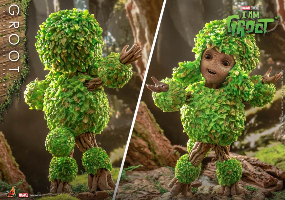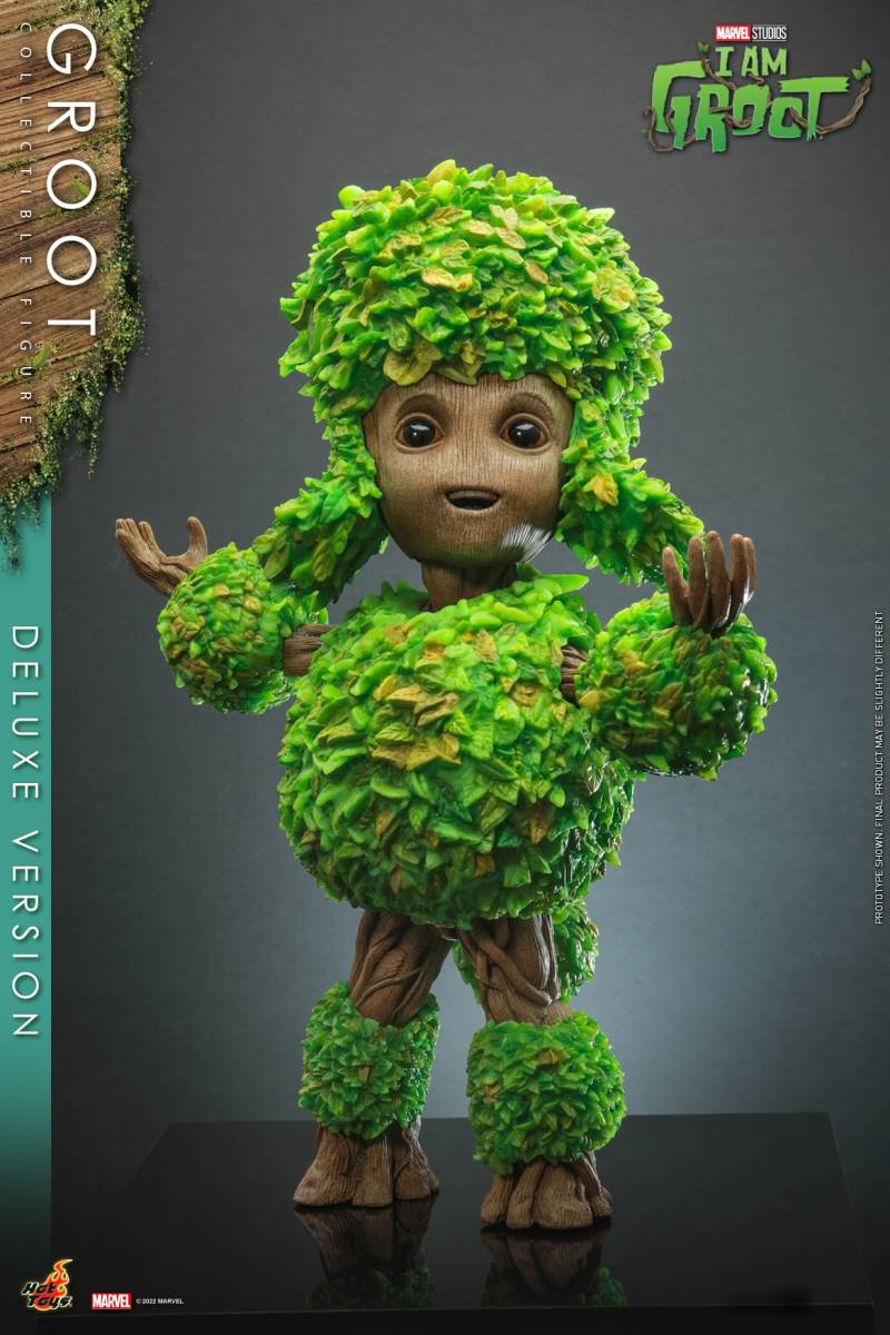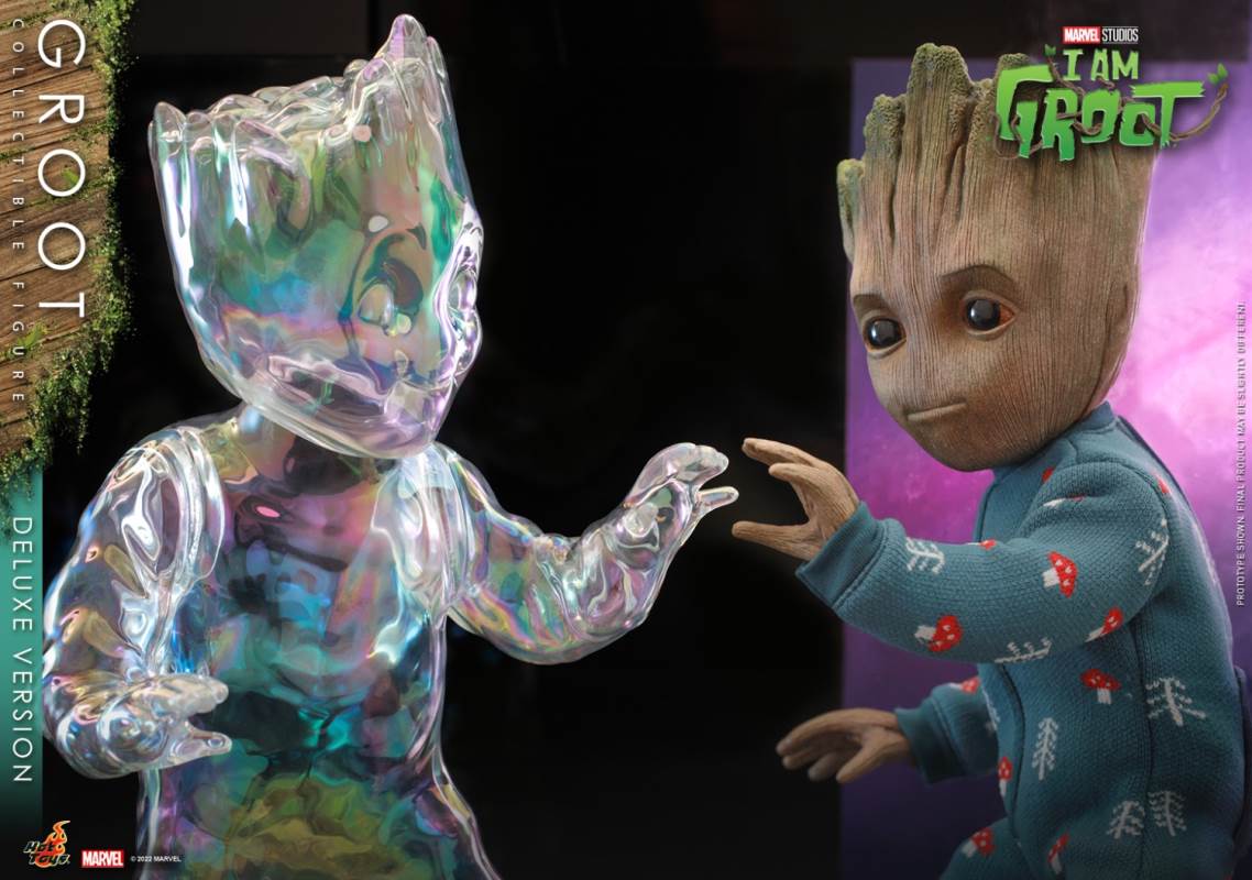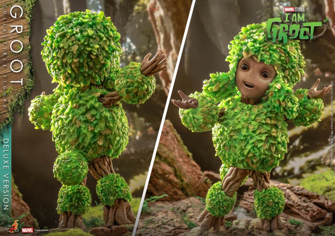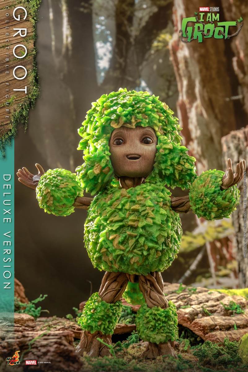 Hot Toys I Am Groot Groot Collection Doll (Deluxe/Normal Version)Various accessories restore the cute shape of the tree GrootThe deluxe version is exclusively equipped with magic color transparent Groot and one-piece knitted pajamasI 'm Groot! Marvel's original short drama I Am Groot revolves around the super-popular character Groot in Guardians of the Galaxy Vol. 2, making the audience exclaim: It's so cute!Hot Toys joins little Groot's growth story with the I Am Groot Groot Collectible Figure with movable joints!At the same time, Hot Toys, adhering to the original intention of being loyal to the character, has specially created a Groot collectible figure with a height of about 26cm and more than 15 movable joints with high standard production technology.Referring to the appearance of the little tree people in the drama, the texture of each tree is meticulously carved, and the density is alternated to create a rich sense of hierarchy. Make the tree person look more natural and more infinite vitality at the same time.The newly produced Groot head sculpture has three facial components with different expressions, namely: grinning, smiling and angry expressions, as well as a pair of big watery eyes, which restores Groot in the series A variety of cute looks and action shapes.At the same time, in order to restore the super cute scene where Groot grows like a bush after taking a bath in the episode of Groot's Transformation, two sets of leaf shapes that can be installed on Groot's body are specially designed. ,respectively: airplane head with a beard of a strong man and a cute poodle dog. Among them, the strong man with an angry expression shows a sense of strength, while the poodle with a grin or a smile expression makes it more cute. Lift!The doll also comes with two cucumbers (with built-in magnets on the smiling face) and a painting of Groot, which shows Groot hugging the Guardians of the Galaxy with open arms, paying tribute to Groot at the end of Guardians of the Galaxy A scene where he sacrificed himself to protect everyone.The deluxe version will be exclusively equipped with an imitation metal liquid, which has a very clear and high refractive effect, and the transparent Groot (head and arms can be moved)And a lake blue one-piece knitted pajamas featuring prints and mushrooms and a built-in zipper on the back for easy removal.