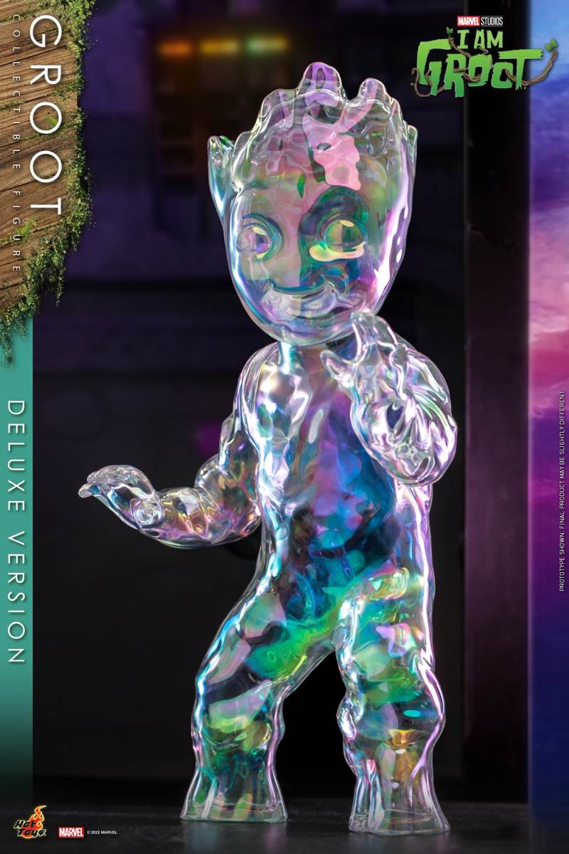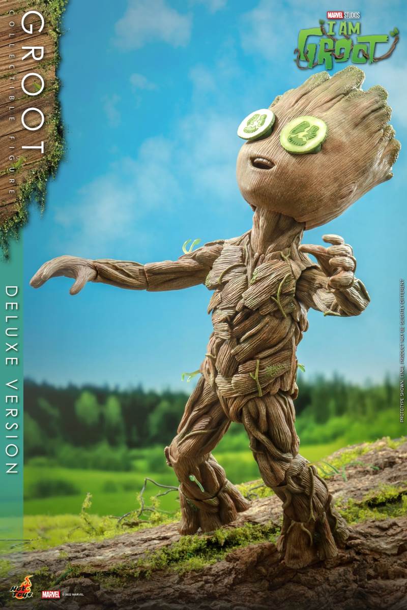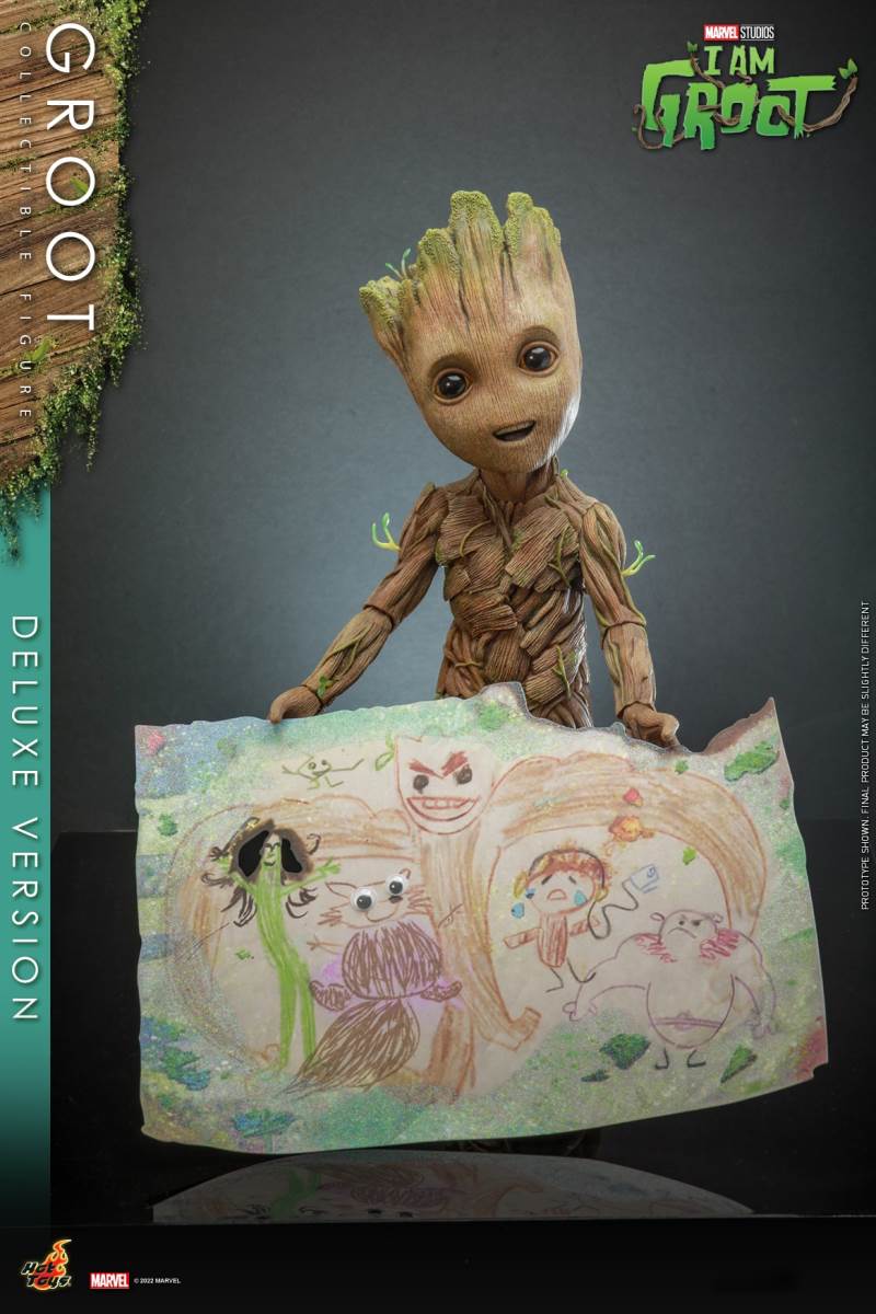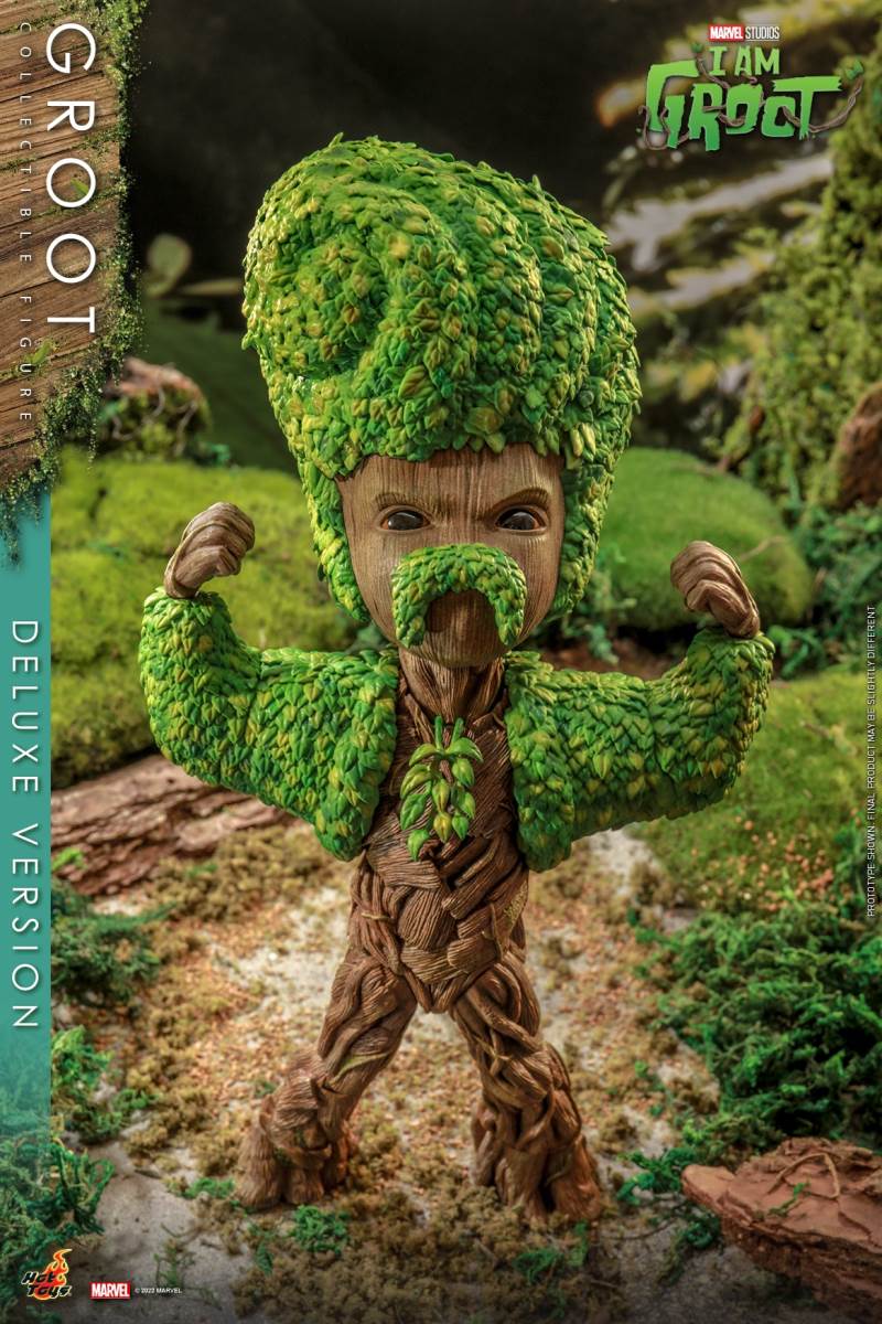 Hot Toys I Am Groot Groot Collection Doll (Deluxe/Normal Version)Various accessories restore the cute shape of the tree GrootThe deluxe version is exclusively equipped with magic color transparent Groot and one-piece knitted pajamasI 'm Groot! Marvel's original short drama I Am Groot revolves around the super-popular character Groot in Guardians of the Galaxy Vol. 2, making the audience exclaim: It's so cute!Hot Toys joins little Groot's growth story with the I Am Groot Groot Collectible Figure with movable joints!At the same time, Hot Toys, adhering to the original intention of being loyal to the character, has specially created a Groot collectible figure with a height of about 26cm and more than 15 movable joints with high standard production technology.Referring to the appearance of the little tree people in the drama, the texture of each tree is meticulously carved, and the density is alternated to create a rich sense of hierarchy. Make the tree person look more natural and more infinite vitality at the same time.The newly produced Groot head sculpture has three facial components with different expressions, namely: grinning, smiling and angry expressions, as well as a pair of big watery eyes, which restores Groot in the series A variety of cute looks and action shapes.At the same time, in order to restore the super cute scene where Groot grows like a bush after taking a bath in the episode of Groot's Transformation, two sets of leaf shapes that can be installed on Groot's body are specially designed. ,respectively: airplane head with a beard of a strong man and a cute poodle dog. Among them, the strong man with an angry expression shows a sense of strength, while the poodle with a grin or a smile expression makes it more cute. Lift!The doll also comes with two cucumbers (with built-in magnets on the smiling face) and a painting of Groot, which shows Groot hugging the Guardians of the Galaxy with open arms, paying tribute to Groot at the end of Guardians of the Galaxy A scene where he sacrificed himself to protect everyone.The deluxe version will be exclusively equipped with an imitation metal liquid, which has a very clear and high refractive effect, and the transparent Groot (head and arms can be moved)And a lake blue one-piece knitted pajamas featuring prints and mushrooms and a built-in zipper on the back for easy removal.