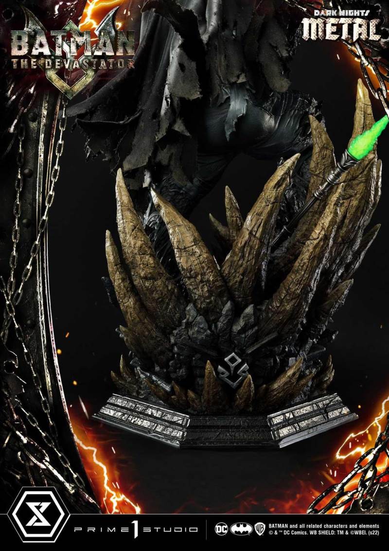 DescriptionsYou made them believe. You fooled them into always thinking that you would always be there for them...And that belief is exactly what will drag your entire world to devastation. - The Devastator to SupermanPrime 1 Studio is proud to present the latest breathtaking addition to the Museum Masterline DC Dark Nights: Metal Series! The 1:3 Scale MMDCMT-11: THE DEVASTATOR from DC DARK NIGHTS: METAL!In the DC Multiverse-spanning epic, Dark Nights: Metal, not only did a Dark version of the DC Multiverse exist, but a malevolent force was gathering all the evil, corrupted versions of Batman from each Negative universe into a perverted and frightening version of the Justice League: The Dark Knights!Prime 1 Studio proudly presents this terrifying 39-inch-tall take on a corrupted Caped Crusader: The Batman of Earth -1...THE DEVASTATOR! Prime 1 Studio’s talented artisans pulled out all the stops with this statue. As massive as it is complex, this is not just a simple Doomsday clone...this is Doomsday with the super-intelligence, martial arts mastery, and strategic guile of Batman...combined with the super speed, super strength, and durability of Doomsday.As The Devastator was borne out of a Doomsday Virus-infected Bruce Wayne, this hulking monstrosity is shown with the shredded remnants of Batman’s uniform. The Devastator comes with a poseable fabric cape...one of the last remaining vestiges of a Batman gone bad.The Devastator stands threateningly on a rocky, alien outcropping of stone and bone, set into a craggy, weathered gargoyle built out of masonry. Nestled between his feet is the Kryptonite Spear that proved useless against a marauding Man of Steel.Complete your ever-growing Dark Nights: Metal statue collection with the breathtaking MMDCMT-11 The Devastator from DC Dark Nights: Metal!Specifications:Dark Nights: Metal-themed basePoseable Fabric CapeNotice:Prototype samples shown.Product details could be subject to change without further notice.Please note the final product specifications may differ because each product is Handmade.Since the product is still in the development stage, the Size (up to 10%) & Weight (up to 10kg) may be changed during the production stage.BATMAN and all related characters and elements © & ™ DC Comics. WB SHIELD: TM & © WBEI. (s22)