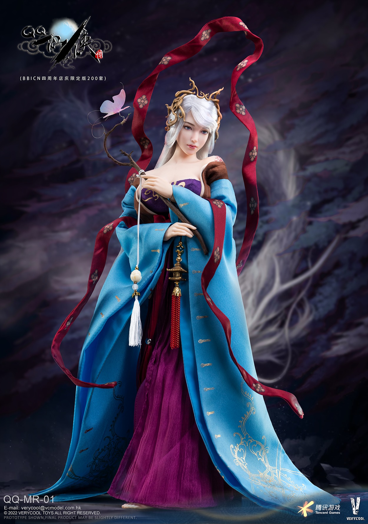 VERYCOOL NEWS : 1/6 “QQ Xian Xia Zhuan” -- MuRong MuRong ( Store celebration limited edition )Product No.: QQ-MR-01Product List:-Emulational head sculpture-VC Steel Skeleton Silica Gel Female Body-Robe(Blue)-Corset-Pleated long skirt-Pleated gauze skirt-Shawl-Girdle-Ribbon-Bow hanging waist-Pendant-Crown-Hair rope-Butterfly-Wooden flute-Wooden flute accessories-Hand shape*6