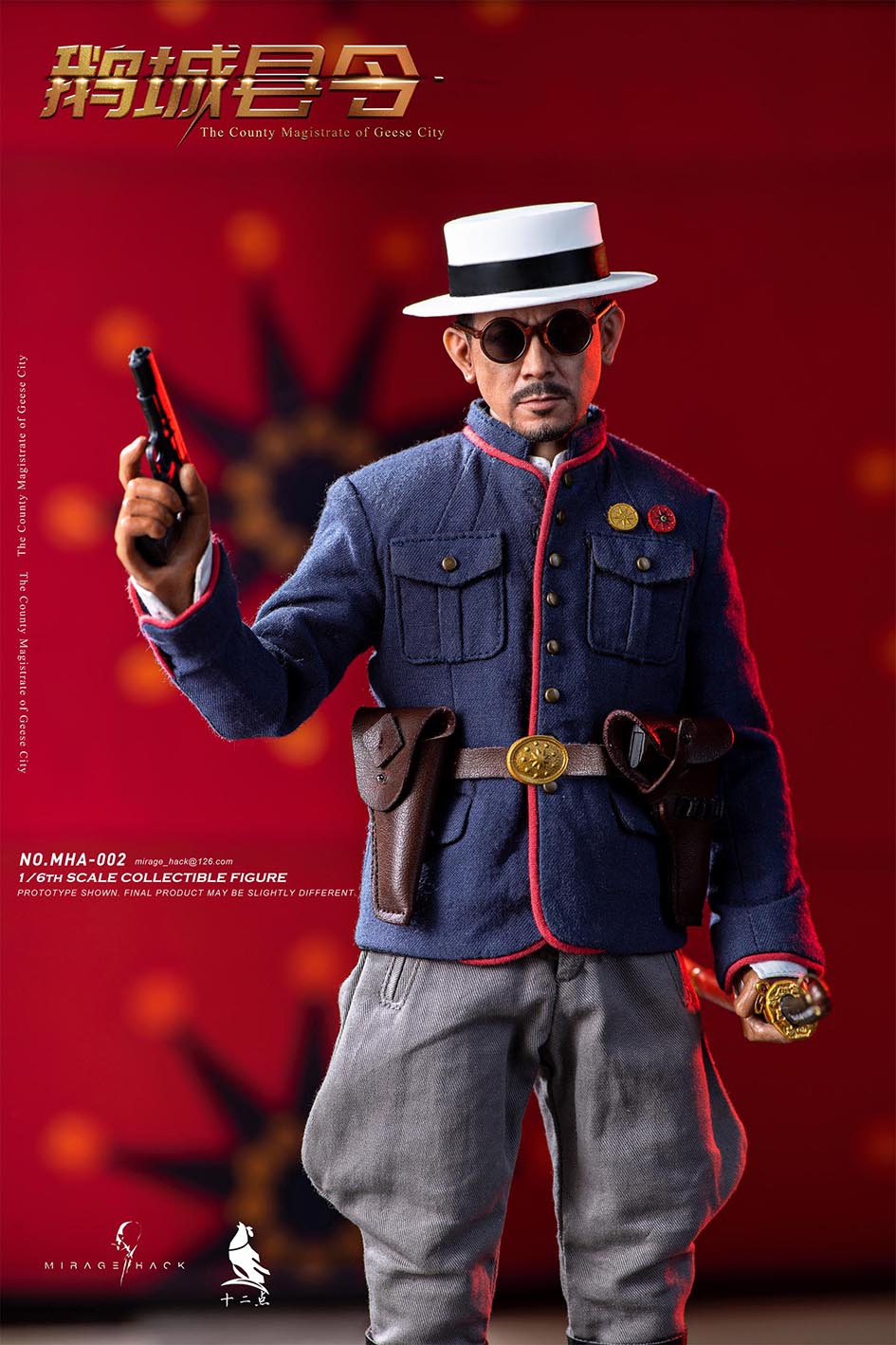 Brand: Mirage Hack & Twelve Pointsspecification:Product Name: 1/6 Goose City Magistrate Action FigureScale: 1/6No.: MHA-00 2Parts List:Head carving *1Body *1Hand type * 4 pairsHat *1Glasses *1Belt + bullet case *1Holster *2pistol *2Knife *1White top *1Blue coat *1Pants *1Leather boots *1Estimated shipping time: the third to fourth quarter of 2023