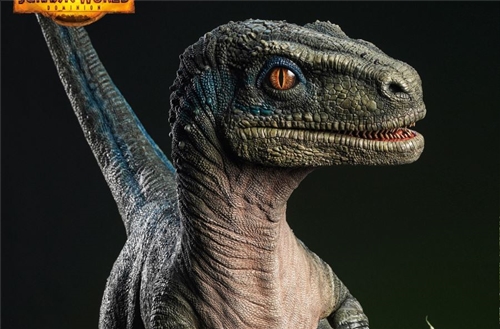 𝗝𝗨𝗥𝗔𝗦𝗦𝗜𝗖 𝗪𝗢𝗥𝗟𝗗 𝗗𝗢𝗠𝗜𝗡𝗜𝗢𝗡: 𝗕𝗘𝗧𝗔 𝗟𝗜𝗙𝗘-𝗦𝗜𝗭𝗘 𝗦𝗧𝗔𝗧𝗨𝗘 𝗕𝗬 𝗤𝗨𝗘𝗘𝗡 𝗦𝗧𝗨𝗗𝗜𝗢𝗦----------------------------------------------------𝗣𝗥𝗢𝗗𝗨𝗖𝗧 𝗜𝗡𝗙𝗢𝗥𝗠𝗔𝗧𝗜𝗢𝗡*Material: Resin, PUProduct Size: 97cm (H) × 81cm (W) × 77cm (D)----------------------------------------------------𝗔𝗯𝗼𝘂𝘁 𝘁𝗵𝗲 𝗖𝗵𝗮𝗿𝗮𝗰𝘁𝗲𝗿Beta was born sometime in the four years after the 2018 Dinosaur Outbreak. She lived together with her mother in the wild. Beta is the image of her mother Blue, not just in her appearance but also in her nature. There are minor differences between Beta and Blue, Blue’s eyes are smaller, and Beta’s snout is stubbier than her mothers. Although Beta is Blue’s daughter, she was created asexually to access the the DNA used to create Blue.𝗔𝗯𝗼𝘂𝘁 𝘁𝗵𝗲 𝗦𝘁𝗮𝘁𝘂𝗲This 1/1 life size Beta statue is a first for Queen Studios. It is a life-size replica of the prehistoric dinosaur seen in Jurassic World: Dominion. Beta is stands between two small ferns, a plant as ancient as her. Her front claws are raised to her chest. Two beautiful blue stripes follow both sides of her spine, from her eyes to the tip of her tail. Every facet of this beast has been accounted for in this life-size model, every reptilian scale has been accurately recreated in pain-staking detail.𝗦𝘁𝗮𝘁𝘂𝗲 𝗮𝗻𝗱 𝗕𝗮𝘀𝗲This statue’s base is of similar design to our previous Jurassic World statue, it is made up of three tiers, two metal plates surrounding an luminous tier. On the face of the base is Beta’s name and the logo of Jurassic World: Dominion. The statue stands at 97cm tall and is crafted from resin.