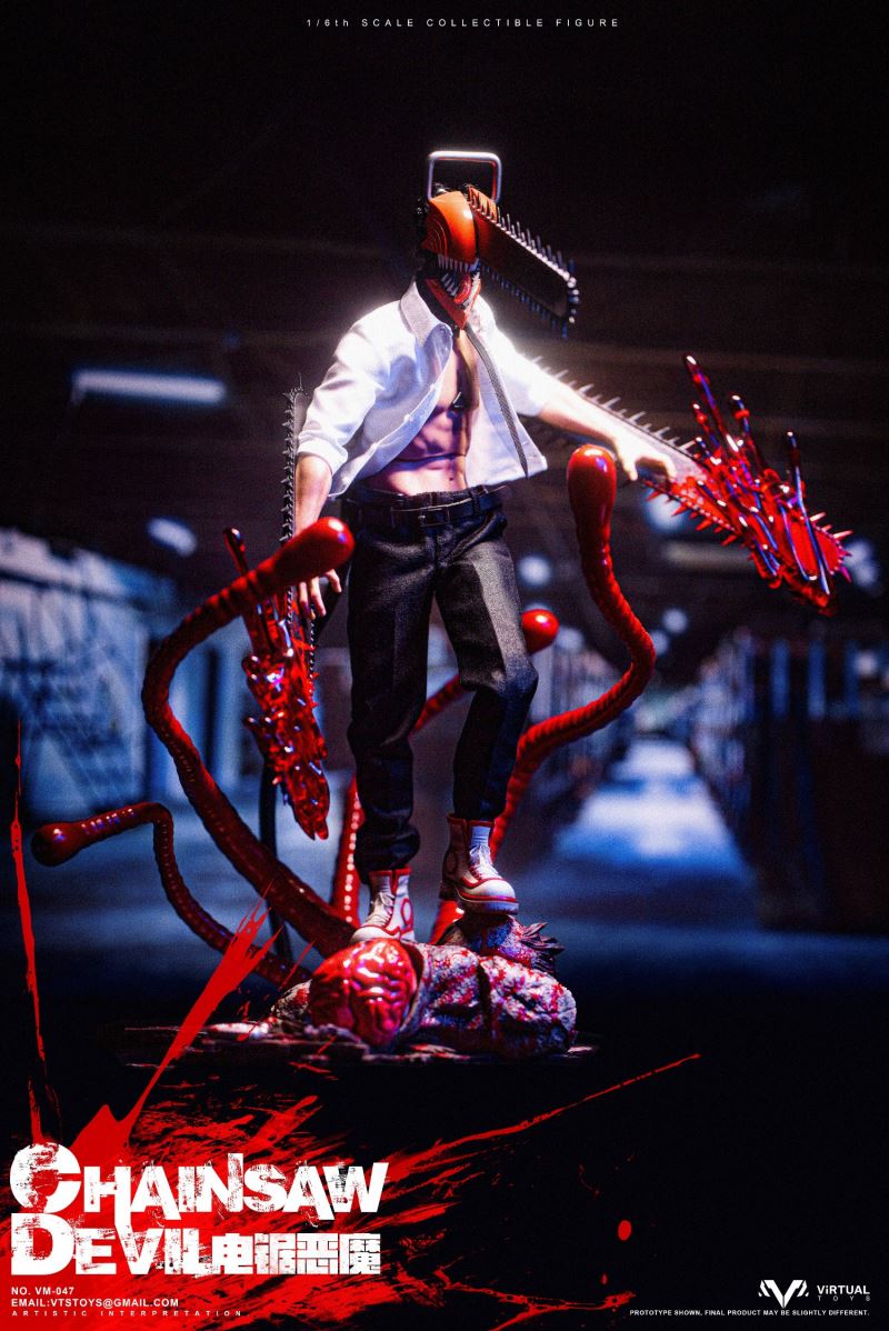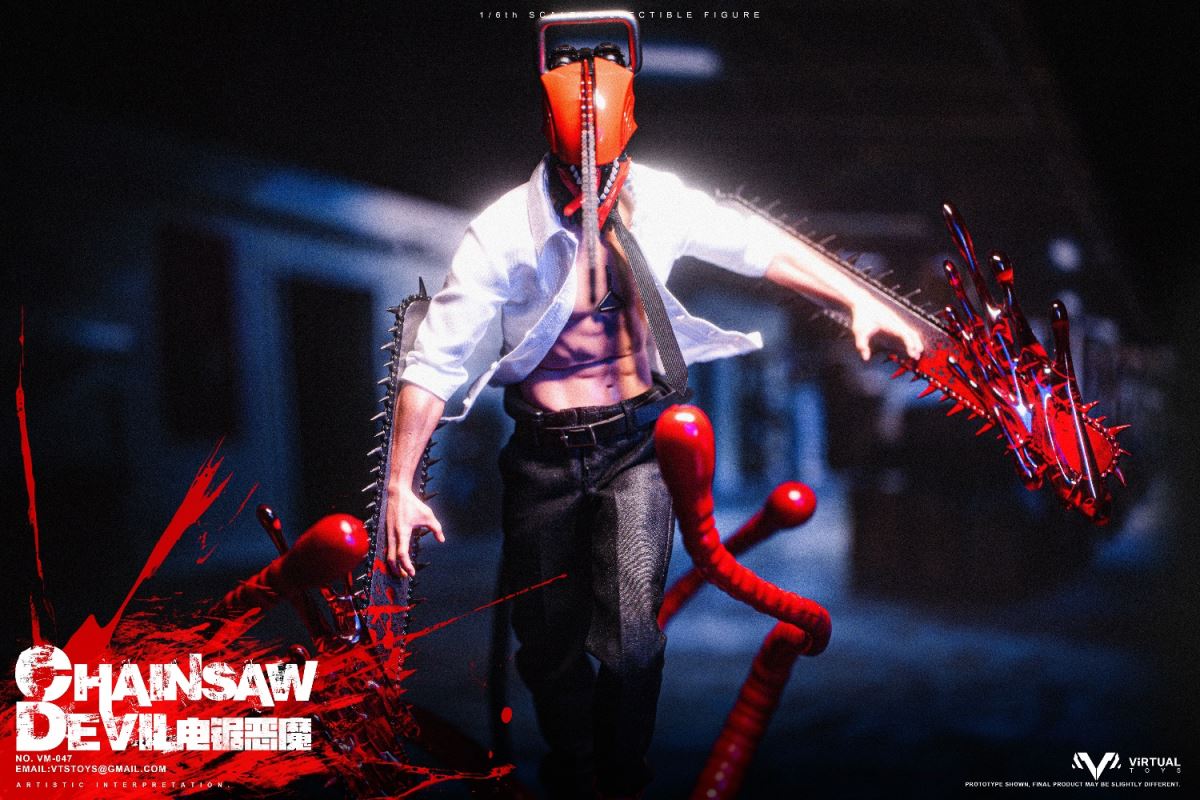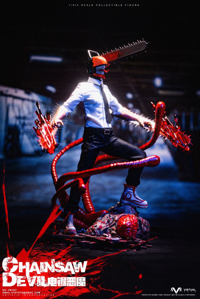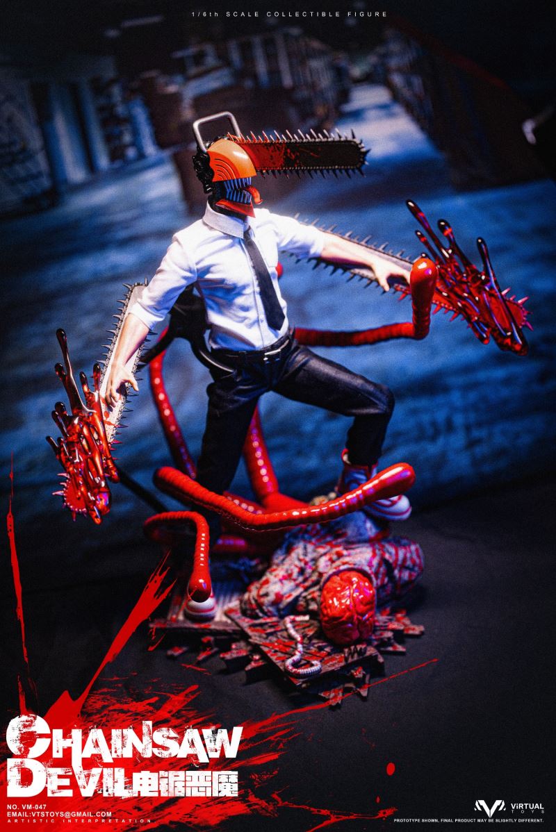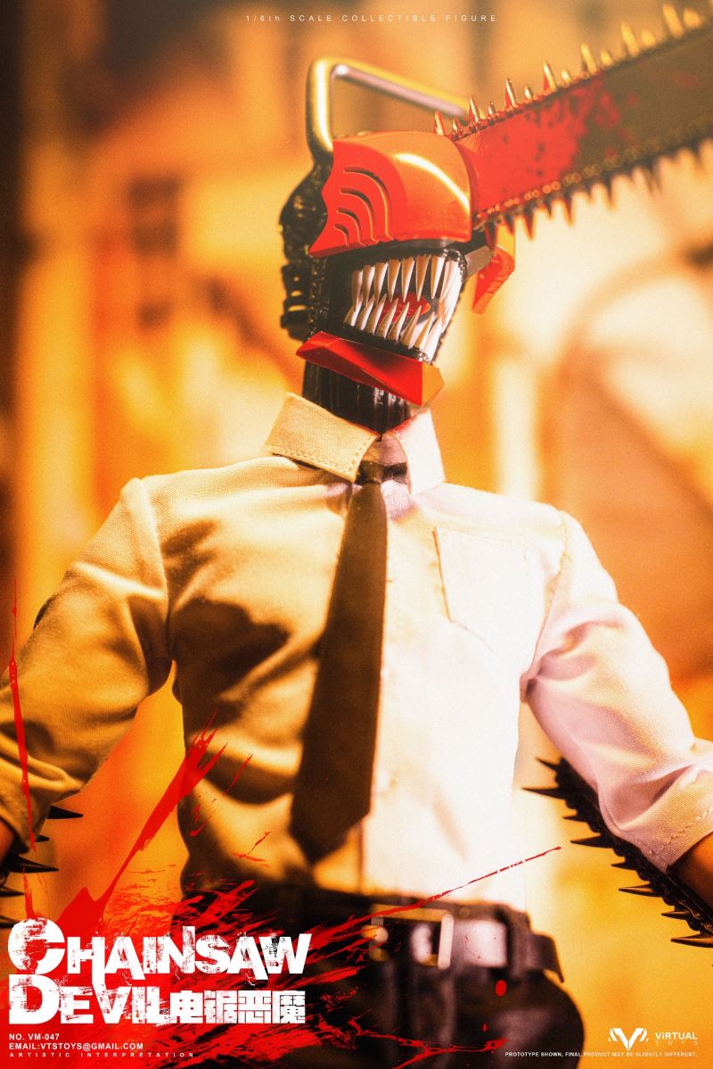 VTS TOYS 1/6 (VM-047) CHAINSAW DEVIL is now officially available!This time the team brings you the extremely popular character Chainsaw Demon. In order to restore the unique image in the animation, the team made a lot of improvements to the body.First of all, in order to fit the animation image, we recreated the neck and chest of the body, not only restoring the unique shape, but also making the pull ring in the center of the chest.The biggest feature this time is its iconic head. We recreated the head with a lot of details based on the animation, so that it still has extremely complex details at a scale of 1/6.In order to restore the mouth of the character in the animation, we designed a double movable mouth, so that it has the largest range of movable performance while maintaining the integrity of the shape. For the character's iconic tongue, we use magnets to install it, and provide players with three tongues of different shapes to facilitate the restoration of different scenarios.In terms of hands, we have recreated a brand new special hand shape for the chainsaw demon. Not only does it have a huge chainsaw and exquisite painting, but we also avoid damage to the overall shape of the hand joints. In order to increase the display effect, we also added special blood effects to the hands.In terms of clothing, we have restored the shirt and trousers that are simple and simple in the animation, but on the pants, we have made special modifications for the mobility of the toy so that the clothing will not have any impact on the mobility of the toy.In terms of accessories, we also produced Pochita, an important character in the animation. On the basis of restoring the animation shape, we used transparent parts to make its eyes, which not only showed the transparent texture of the eyes, but also produced the three-dimensional shape of the pupils. sense.As for the platform, we designed and restored the zombie demon that appeared in the first episode of the animation, showing its image of being hit by the chainsaw demon and stepping on the ground. On the face of the zombie demon, we gave it an exquisite painting, and painted a lot of blood on the overall platform to represent the scene in the animation.As for the four tentacles of the zombie demon, we made them with soft materials embedded with iron wires, so that players can bend the tentacles according to their own ideas.We hope that players will like our product this time and enjoy the unique experience brought by the product.Product list:-Specially designed chainsaw head sculpt-Specially modified muscular high-motion body-Arm with chainsawClothing :-White shirt-Black tie-Water trousers-Uniquely shaped sneakersAccessories:-Blood special effects parts-Porchita-Three Tongues of Different Shapes -Scene Basewith Soft MaterialsVTS TOYS 1/6 (VM-047) CHAINSAW DEVIL Chainsaw Demon is now officially launched!This time our team brings you the extremely popular character chainsaw devil .In order to restore the unique image in the animation, the team made a lot of improvements to the body. First of all, in order to fit the animation image, we recreated the neck and chest of the body, not only to restore the unique shape, but also to make the pull ring in the center of the chest.The biggest feature this time is its iconic head. We reworked a lot of details on the head based on the animation, so that it still has extremely complex details at a 1/6 scale. In order to restore the mouth of the character in the animation, we designed a double joint mouth, so that it has the largest range of movable performance while maintaining the integrity of the shape. For the character's iconic tongue, we use the magnet installation method, and provide players with three different shapes of the tongue to facilitate the restoration of the shape of different scenarios.On the hands side, we've recreated a new special hand shape for the Chainsaw Devil. Not only have a huge chainsaw and exquisite paint, we also avoid the damage of the hand joints to the overall shape. In order to increase the display effect, we also added special blood effects for the hands.In terms of clothing, we restored the simple animation of shirts and trousers, but on the trousers, we made special modifications for the movement of the toy so that the clothing would not have any effect on the movement of the toy.In terms of accessories, we also made Pochita, an important character in the animation. On the basis of restoring the animation shape, we used transparent parts to make its eyes, which not only showed the transparent texture of the eyes, but also made the three-dimensional pupils.As for the base, we designed and restored the zombie devil that appeared in the first episode of the animation, showing its image of stepping on the ground after being hit by the chainsaw devil. On the face of the zombie devil, we gave it a delicate painting, and painted a lot of blood on the overall platform to express the scene in the animation. As for the four tentacles of the zombie devil, we use soft materials to embed iron wires to make them, so that players can bend the tentacles according to their own ideas.Hope players can like our product this time and enjoy the unique experience of the product.Product List:-Specially designed chainsaw head sculpt- Specially remodeled muscle body with high mobility- Arm with chainsawclothing:-white shirt- black tie- Trousers- Uniquely shaped sneakersAccessories:-Blood effects-Pochita-Three different shaped tongues-Base with soft material
