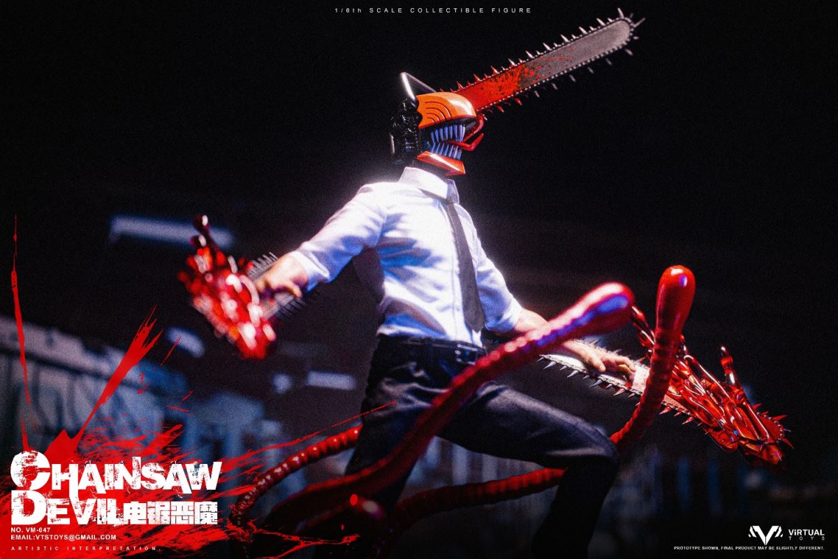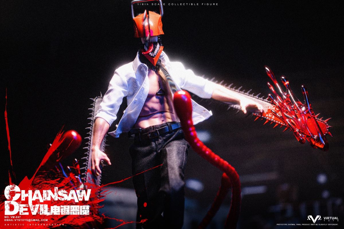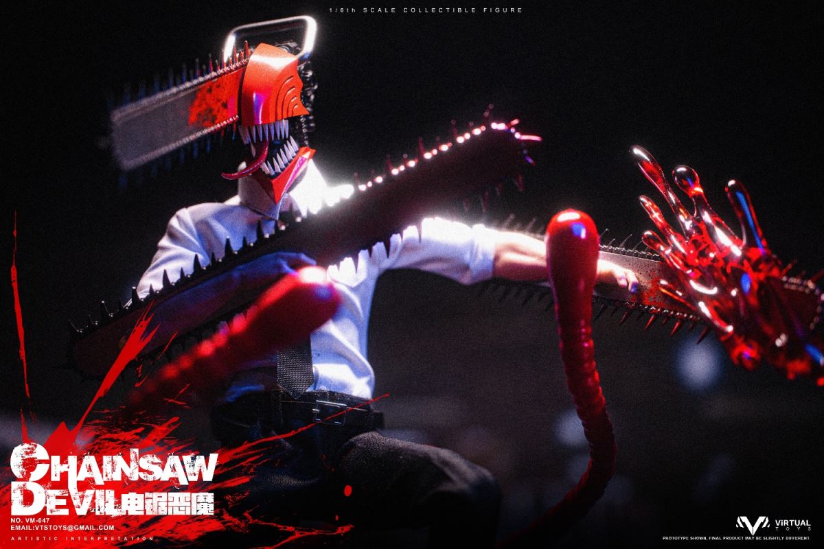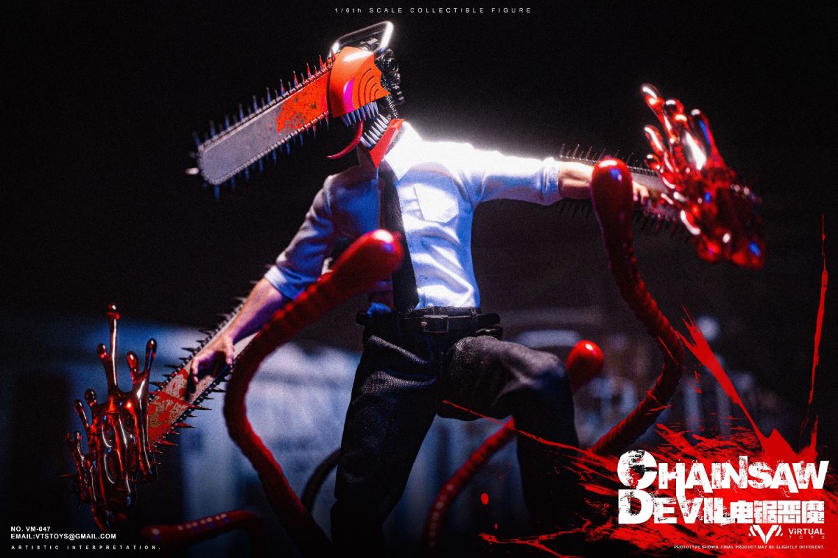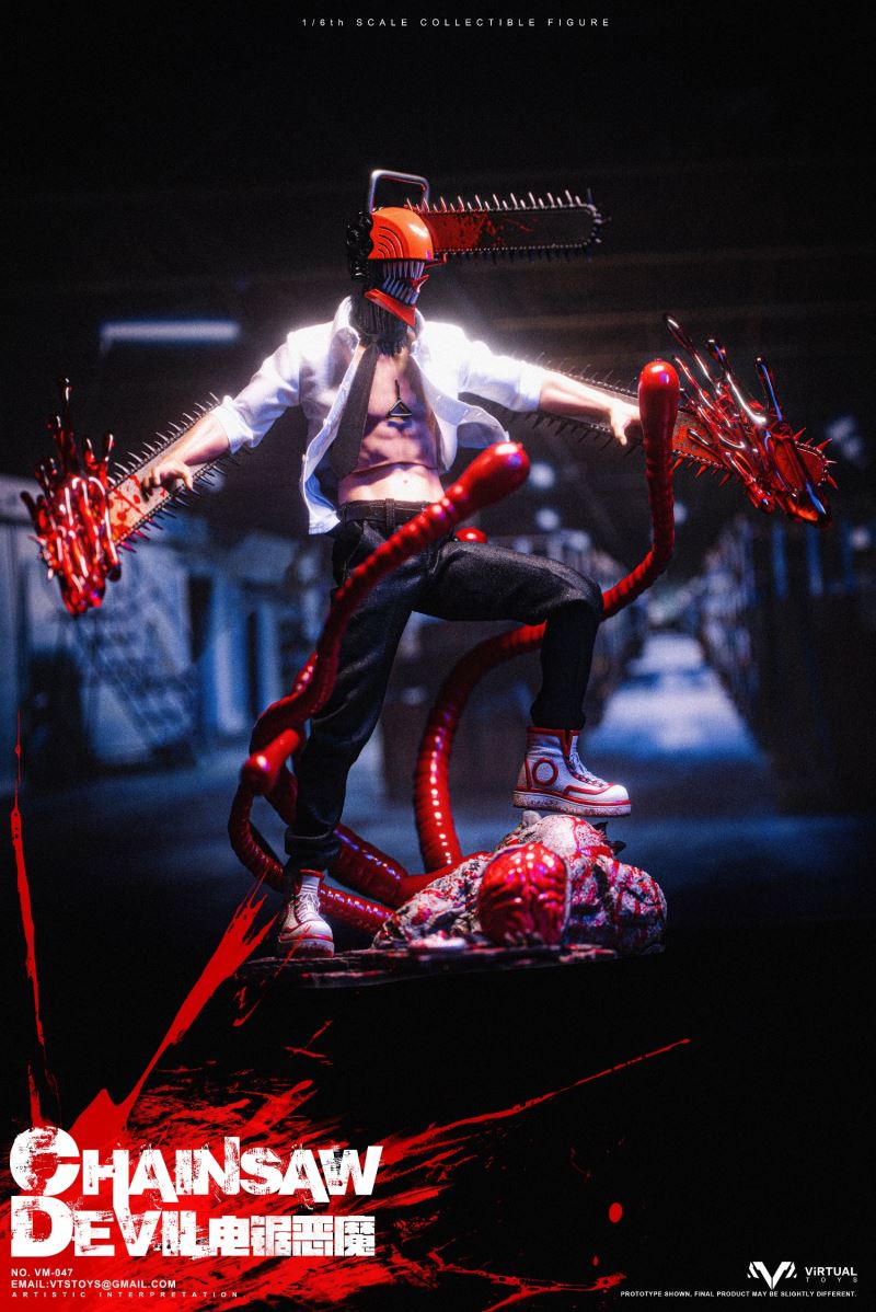 VTS TOYS 1/6 (VM-047) CHAINSAW DEVIL is now officially available!This time the team brings you the extremely popular character Chainsaw Demon. In order to restore the unique image in the animation, the team made a lot of improvements to the body.First of all, in order to fit the animation image, we recreated the neck and chest of the body, not only restoring the unique shape, but also making the pull ring in the center of the chest.The biggest feature this time is its iconic head. We recreated the head with a lot of details based on the animation, so that it still has extremely complex details at a scale of 1/6.In order to restore the mouth of the character in the animation, we designed a double movable mouth, so that it has the largest range of movable performance while maintaining the integrity of the shape. For the character's iconic tongue, we use magnets to install it, and provide players with three tongues of different shapes to facilitate the restoration of different scenarios.In terms of hands, we have recreated a brand new special hand shape for the chainsaw demon. Not only does it have a huge chainsaw and exquisite painting, but we also avoid damage to the overall shape of the hand joints. In order to increase the display effect, we also added special blood effects to the hands.In terms of clothing, we have restored the shirt and trousers that are simple and simple in the animation, but on the pants, we have made special modifications for the mobility of the toy so that the clothing will not have any impact on the mobility of the toy.In terms of accessories, we also produced Pochita, an important character in the animation. On the basis of restoring the animation shape, we used transparent parts to make its eyes, which not only showed the transparent texture of the eyes, but also produced the three-dimensional shape of the pupils. sense.As for the platform, we designed and restored the zombie demon that appeared in the first episode of the animation, showing its image of being hit by the chainsaw demon and stepping on the ground. On the face of the zombie demon, we gave it an exquisite painting, and painted a lot of blood on the overall platform to represent the scene in the animation.As for the four tentacles of the zombie demon, we made them with soft materials embedded with iron wires, so that players can bend the tentacles according to their own ideas.We hope that players will like our product this time and enjoy the unique experience brought by the product.Product list:-Specially designed chainsaw head sculpt-Specially modified muscular high-motion body-Arm with chainsawClothing :-White shirt-Black tie-Water trousers-Uniquely shaped sneakersAccessories:-Blood special effects parts-Porchita-Three Tongues of Different Shapes -Scene Basewith Soft MaterialsVTS TOYS 1/6 (VM-047) CHAINSAW DEVIL Chainsaw Demon is now officially launched!This time our team brings you the extremely popular character chainsaw devil .In order to restore the unique image in the animation, the team made a lot of improvements to the body. First of all, in order to fit the animation image, we recreated the neck and chest of the body, not only to restore the unique shape, but also to make the pull ring in the center of the chest.The biggest feature this time is its iconic head. We reworked a lot of details on the head based on the animation, so that it still has extremely complex details at a 1/6 scale. In order to restore the mouth of the character in the animation, we designed a double joint mouth, so that it has the largest range of movable performance while maintaining the integrity of the shape. For the character's iconic tongue, we use the magnet installation method, and provide players with three different shapes of the tongue to facilitate the restoration of the shape of different scenarios.On the hands side, we've recreated a new special hand shape for the Chainsaw Devil. Not only have a huge chainsaw and exquisite paint, we also avoid the damage of the hand joints to the overall shape. In order to increase the display effect, we also added special blood effects for the hands.In terms of clothing, we restored the simple animation of shirts and trousers, but on the trousers, we made special modifications for the movement of the toy so that the clothing would not have any effect on the movement of the toy.In terms of accessories, we also made Pochita, an important character in the animation. On the basis of restoring the animation shape, we used transparent parts to make its eyes, which not only showed the transparent texture of the eyes, but also made the three-dimensional pupils.As for the base, we designed and restored the zombie devil that appeared in the first episode of the animation, showing its image of stepping on the ground after being hit by the chainsaw devil. On the face of the zombie devil, we gave it a delicate painting, and painted a lot of blood on the overall platform to express the scene in the animation. As for the four tentacles of the zombie devil, we use soft materials to embed iron wires to make them, so that players can bend the tentacles according to their own ideas.Hope players can like our product this time and enjoy the unique experience of the product.Product List:-Specially designed chainsaw head sculpt- Specially remodeled muscle body with high mobility- Arm with chainsawclothing:-white shirt- black tie- Trousers- Uniquely shaped sneakersAccessories:-Blood effects-Pochita-Three different shaped tongues-Base with soft material