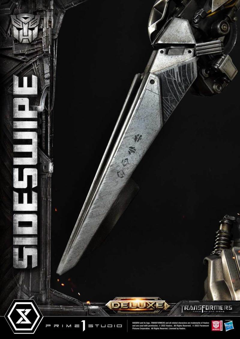 Descriptions“Autobots, Attack!”Prime 1 Studio is proud to present another elite Autobot in our Museum Masterline Series: the Non-Scale MMTFM-35DXS: Sideswipe Deluxe Bonus Version from Transformers: Dark of the Moon!Incredibly fast on four wheels or two, Sideswipe is acrobatic, athletic, and dynamic. He is a master of ranged weaponry but ultimately prefers to fight with his double-sword melee attacks!In the events of Transformers: Dark of the Moon, Sideswipe assisted Bumblebee in taking over an illegal power plant in the Middle East, fought with Ironhide against Sentinel Prime, and survived the explosion of the Xantium with other Autobots.In this 22-inch statue, Sideswipe’s cool, silver metallic armor is replete with sculpted machinery, plating, and electronics indistinguishable from the real thing! He’s equipped with his arm cannons and looks incredibly alert and alive with light-up eyes and chest lights powered by LEDs! This Deluxe Bonus Version also comes with Sideswipe’s favored fighting weapons: his super-sharp, arm-mounted, Cybertanium swords!Balancing on his twin-wheeled form, Sideswipe is prepared for a standoff on a smartly-appointed Autobots base featuring the Autobots logo front and center!And for the Bonus Versions of this statue, we are offering Bonus Transformers Logo Plates to display with your Sideswipe! The Global Bonus Version features the Transformers logo in English. And for the Chinese Bonus Version, we are including the Chinese version of the Transformers Logo Plate to display with your Sideswipe!Keep your Autobot ranks growing by pre-ordering MMTFM-35DXS: Sideswipe Deluxe Bonus Version from Transformers: Dark of the Moon now before he skates away!Specifications:Transformers: Dark of the Moon themed baseLED-Illuminated Eyes and Chest LightsOne (1) Pair of Swappable Arm Swords (Left and Right Arms)One (1) Transformers Logo Plague in English [Global Bonus Version Only]Notice:Prototype samples shown.Product details could be subject to change without further notice.Please note the final product specifications may differ because each product is Handmade.Since the product is still in the development stage, the Size (up to 10%) & Weight (up to 10kg) may be changed during the production stage.© 2010 Paramount Pictures Corporation.Manufactured under license from TOMY Company, Ltd.® and/or TM & © 2022 TOMY. All Rights Reserved. TM & ® denote Japan Trademarks.For sale in Japan only. 「トランスフォーマー」「TRANSFORMERS」は株式会社タカラトミーの登録商標です。