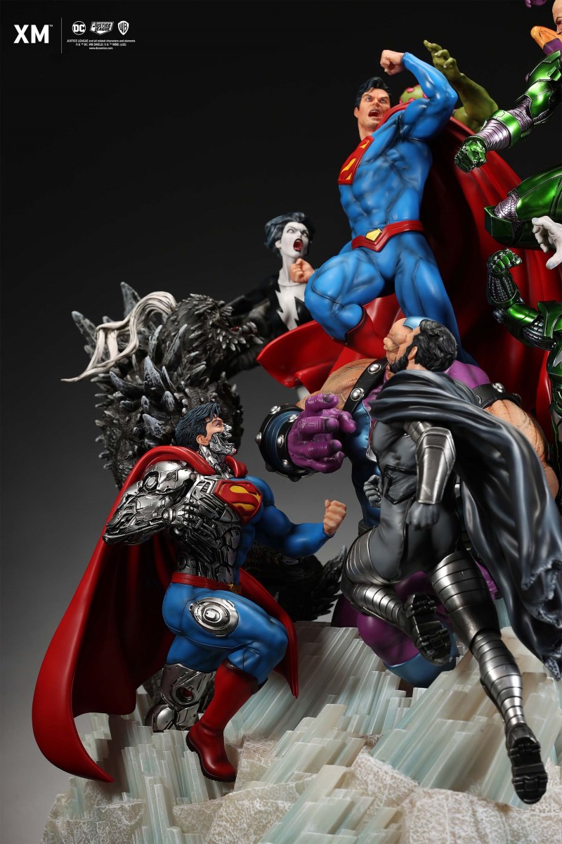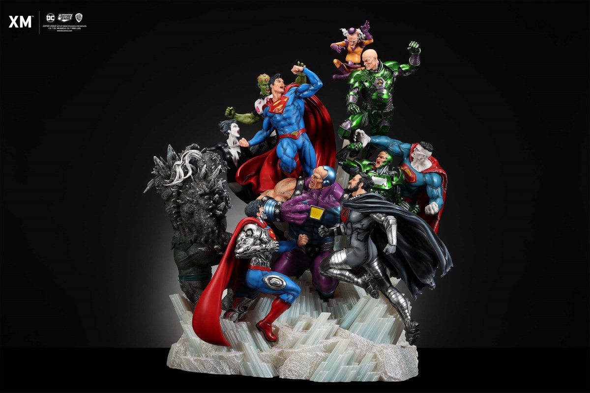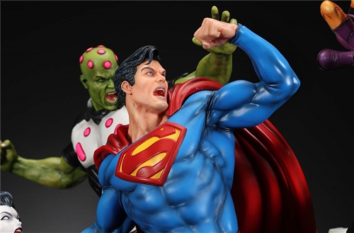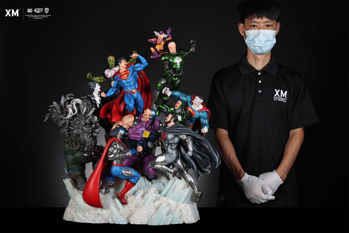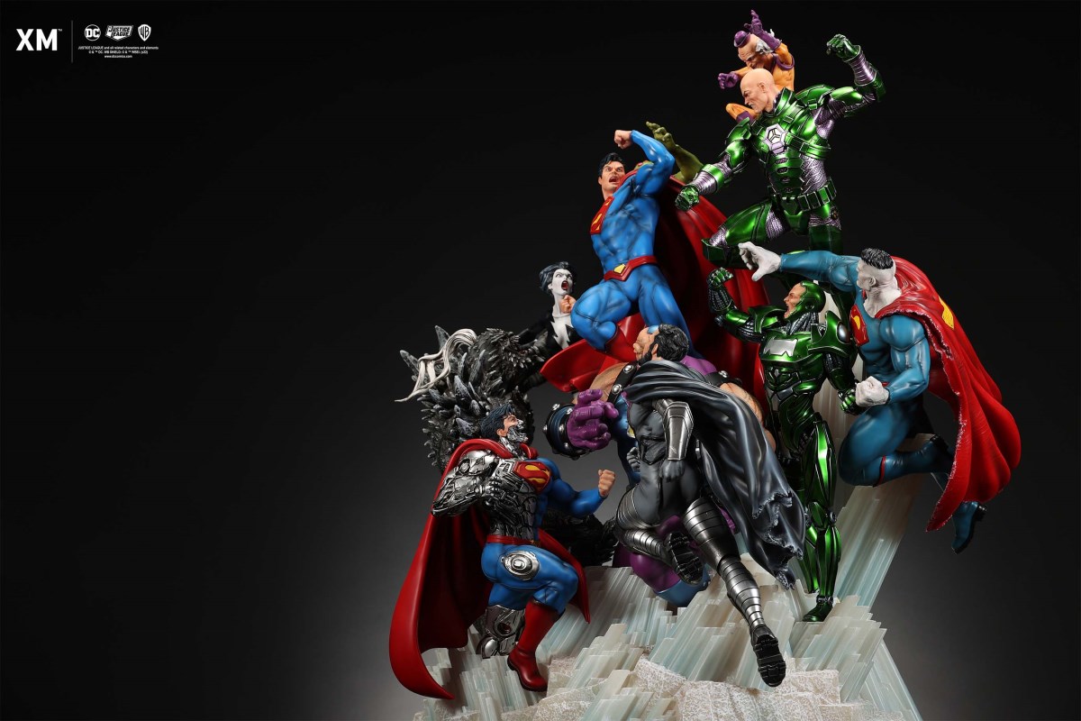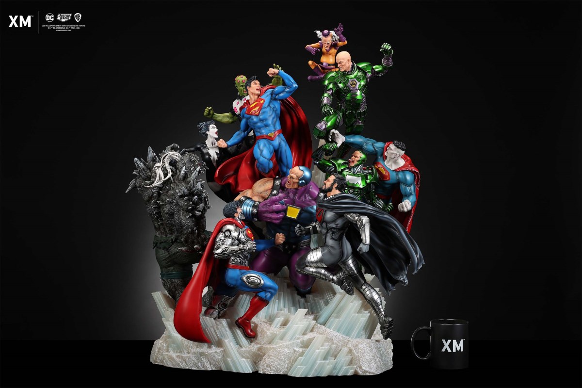 XM Studios is excited to present our next 1/6 scale DC EPIC DIORAMA series statue, Superman - Justice by David Finch! Having worked with XM to produce the Batman Sanity and Wonder Woman Courage dioramas, David is back to complete the trinity with a dynamic showstopper of a statue featuring the man of steel surrounded by some of his greatest foes in an epic struggle against evil! Description: Superman is a guiding light and the embodiment of hope to all – even against insurmountable odds. But there's more to it all beneath the iconic blue uniform and flowing red cape. With this art piece, we explore Superman’s resolve and inherently dichotomous nature. Though not of earth, he goes out of his way to protect its inhabitants. While extremely powerful, he has a plethora of other mighty foes opposing him. And most of all, his tendency to spare the lives of his foes may very well come back to haunt him in unsuspecting ways. Still, he presses on with unwavering determination to stand up for what’s right to the point where it almost seems like his foes are desperately trying to capture him and obstruct his path of exacting justice. Collectors will be able to choose between two gorgeous paint application variations. The first one allows collectors to appreciate the varied foes in full colour, with every carefully hand-painted character furnished with fleshed out textures and stunning detail. Positioned in the centre of it all is none other than Superman himself, struggling valiantly against all odds. The ice crystal version features his foes painted in the iconic colors of The Fortress of Solitude, providing an alternative reading of the statue, in which Superman’s foes are recreated as a memoir and representation of his many battles against them. #DC #Superman The statue features:Full-colourOne (1) highly detailed sculpt featuring a total of 11 characters in 1/6 scaleCrafted in PolystoneEach painstakingly handcrafted statue is individually hand-painted with the highest possible quality finish Artists:David Finch (2D)XM Studios Design and Development Team Manufactured by:XM Studios Note: Prototype shown and pending final approval, final product may differ. Batteries will not be included for products with light up features due to customs. Product and Box DimensionsEst. Box Size: Box A - 60*65*58cm; Box B - 85*65*38cmEst. Product Weight: 33kgEst. Shipping 40kg