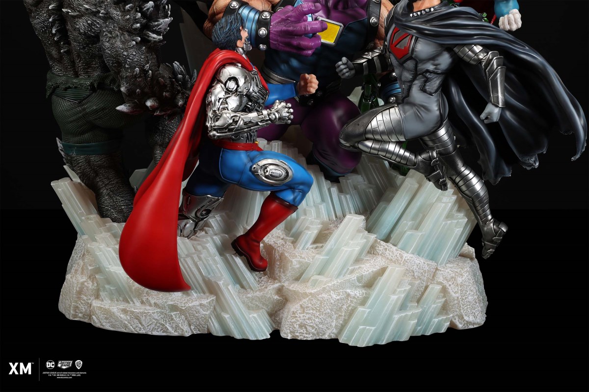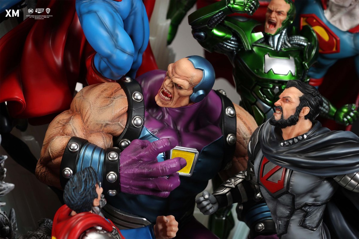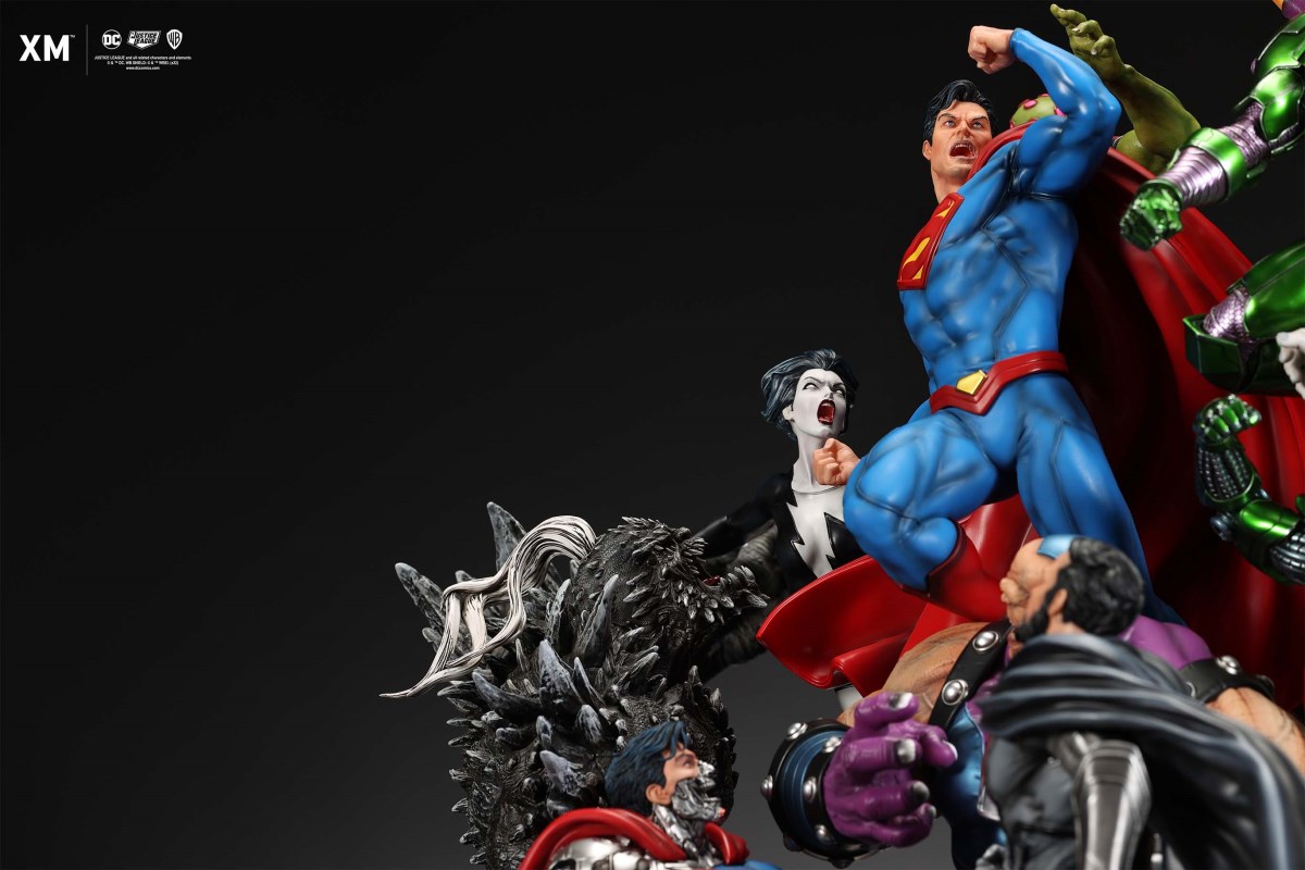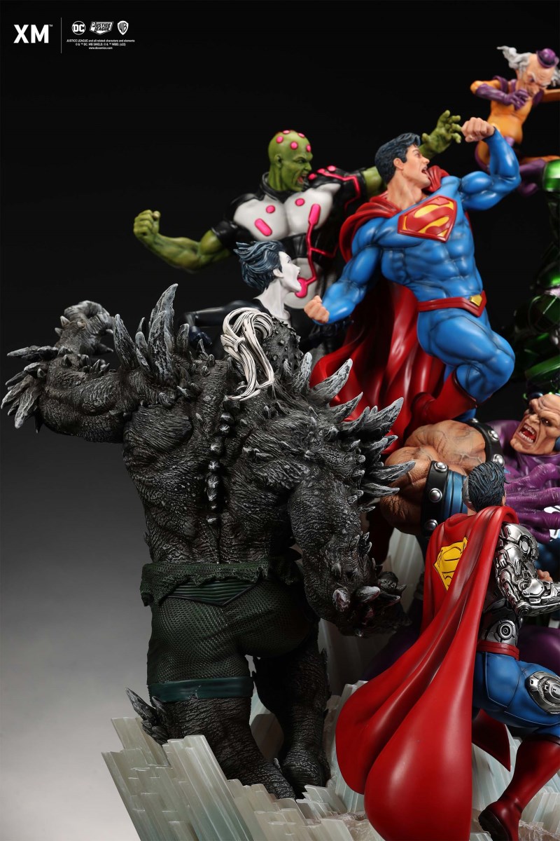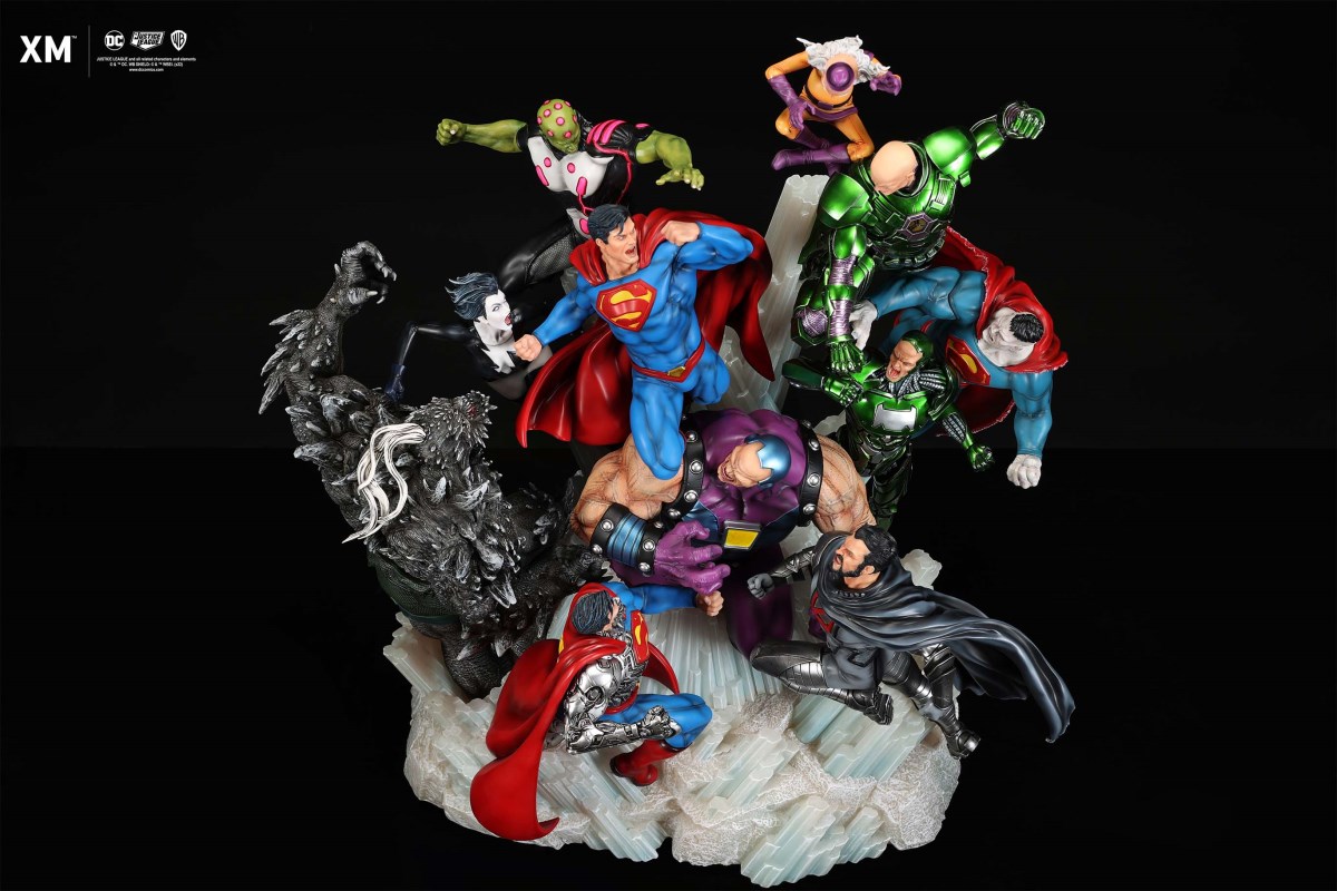 XM Studios is excited to present our next 1/6 scale DC EPIC DIORAMA series statue, Superman - Justice by David Finch! Having worked with XM to produce the Batman Sanity and Wonder Woman Courage dioramas, David is back to complete the trinity with a dynamic showstopper of a statue featuring the man of steel surrounded by some of his greatest foes in an epic struggle against evil! Description: Superman is a guiding light and the embodiment of hope to all – even against insurmountable odds. But there's more to it all beneath the iconic blue uniform and flowing red cape. With this art piece, we explore Superman’s resolve and inherently dichotomous nature. Though not of earth, he goes out of his way to protect its inhabitants. While extremely powerful, he has a plethora of other mighty foes opposing him. And most of all, his tendency to spare the lives of his foes may very well come back to haunt him in unsuspecting ways. Still, he presses on with unwavering determination to stand up for what’s right to the point where it almost seems like his foes are desperately trying to capture him and obstruct his path of exacting justice. Collectors will be able to choose between two gorgeous paint application variations. The first one allows collectors to appreciate the varied foes in full colour, with every carefully hand-painted character furnished with fleshed out textures and stunning detail. Positioned in the centre of it all is none other than Superman himself, struggling valiantly against all odds. The ice crystal version features his foes painted in the iconic colors of The Fortress of Solitude, providing an alternative reading of the statue, in which Superman’s foes are recreated as a memoir and representation of his many battles against them. #DC #Superman The statue features:Full-colourOne (1) highly detailed sculpt featuring a total of 11 characters in 1/6 scaleCrafted in PolystoneEach painstakingly handcrafted statue is individually hand-painted with the highest possible quality finish Artists:David Finch (2D)XM Studios Design and Development Team Manufactured by:XM Studios Note: Prototype shown and pending final approval, final product may differ. Batteries will not be included for products with light up features due to customs. Product and Box DimensionsEst. Box Size: Box A - 60*65*58cm; Box B - 85*65*38cmEst. Product Weight: 33kgEst. Shipping 40kg