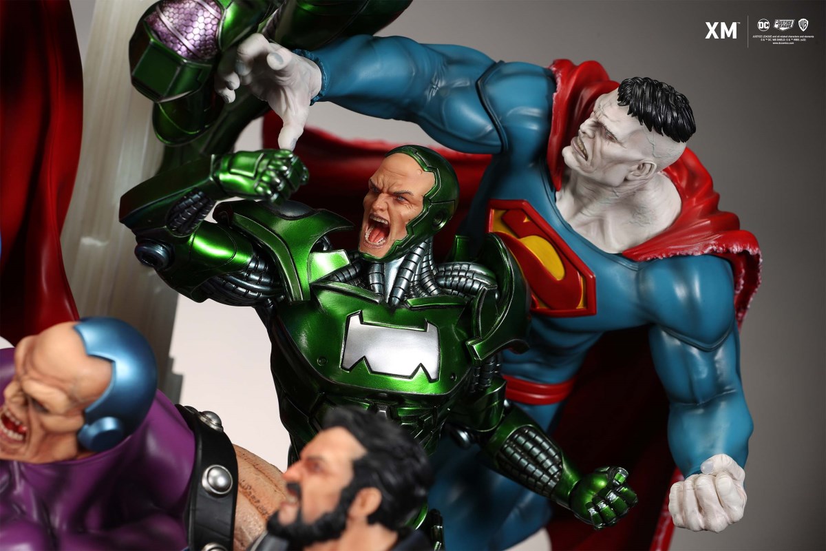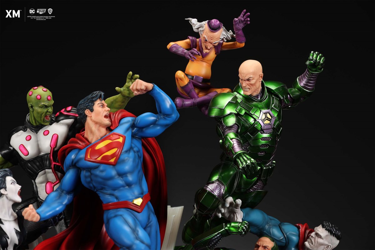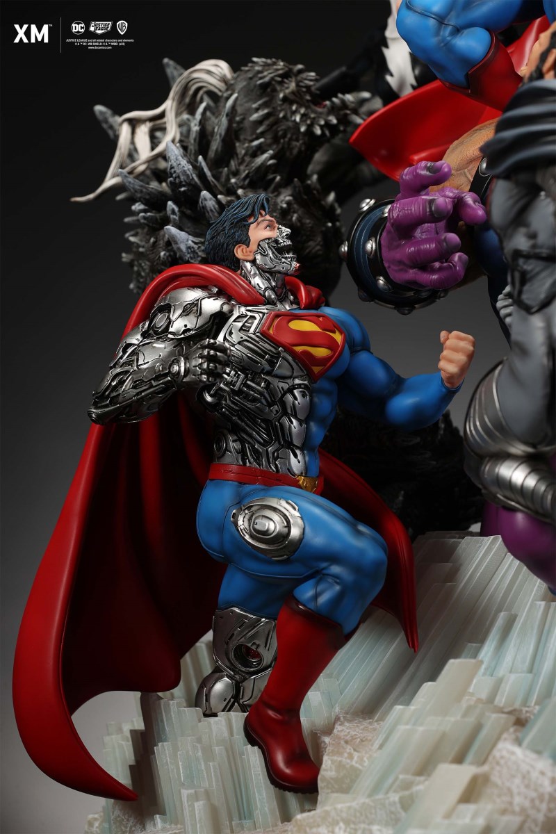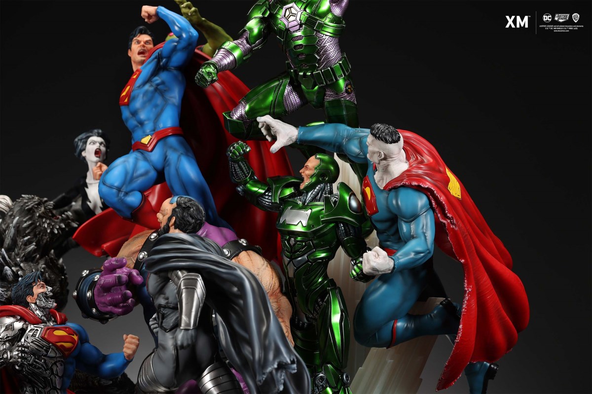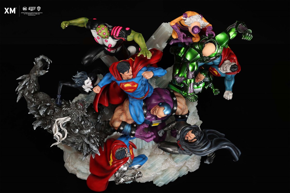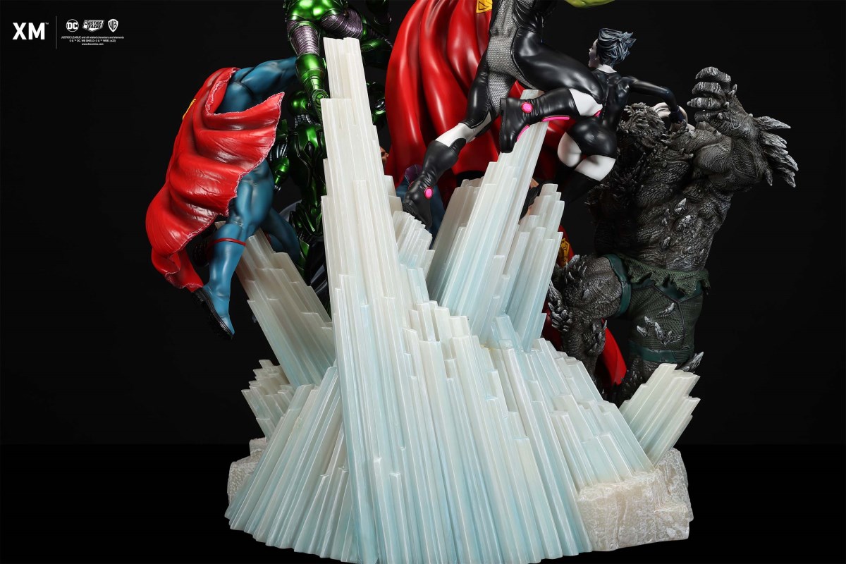 XM Studios is excited to present our next 1/6 scale DC EPIC DIORAMA series statue, Superman - Justice by David Finch! Having worked with XM to produce the Batman Sanity and Wonder Woman Courage dioramas, David is back to complete the trinity with a dynamic showstopper of a statue featuring the man of steel surrounded by some of his greatest foes in an epic struggle against evil! Description: Superman is a guiding light and the embodiment of hope to all – even against insurmountable odds. But there's more to it all beneath the iconic blue uniform and flowing red cape. With this art piece, we explore Superman’s resolve and inherently dichotomous nature. Though not of earth, he goes out of his way to protect its inhabitants. While extremely powerful, he has a plethora of other mighty foes opposing him. And most of all, his tendency to spare the lives of his foes may very well come back to haunt him in unsuspecting ways. Still, he presses on with unwavering determination to stand up for what’s right to the point where it almost seems like his foes are desperately trying to capture him and obstruct his path of exacting justice. Collectors will be able to choose between two gorgeous paint application variations. The first one allows collectors to appreciate the varied foes in full colour, with every carefully hand-painted character furnished with fleshed out textures and stunning detail. Positioned in the centre of it all is none other than Superman himself, struggling valiantly against all odds. The ice crystal version features his foes painted in the iconic colors of The Fortress of Solitude, providing an alternative reading of the statue, in which Superman’s foes are recreated as a memoir and representation of his many battles against them. #DC #Superman The statue features:Full-colourOne (1) highly detailed sculpt featuring a total of 11 characters in 1/6 scaleCrafted in PolystoneEach painstakingly handcrafted statue is individually hand-painted with the highest possible quality finish Artists:David Finch (2D)XM Studios Design and Development Team Manufactured by:XM Studios Note: Prototype shown and pending final approval, final product may differ. Batteries will not be included for products with light up features due to customs. Product and Box DimensionsEst. Box Size: Box A - 60*65*58cm; Box B - 85*65*38cmEst. Product Weight: 33kgEst. Shipping 40kg