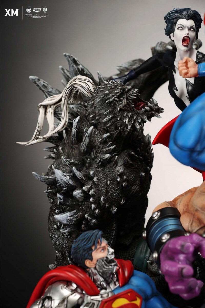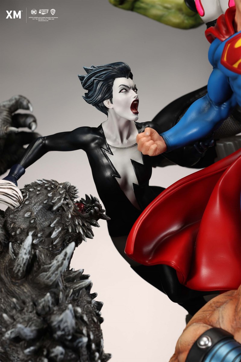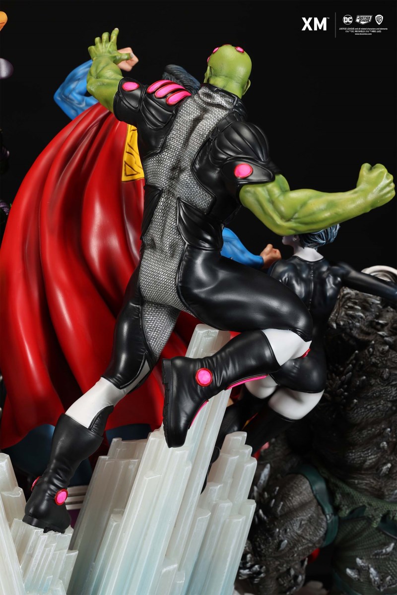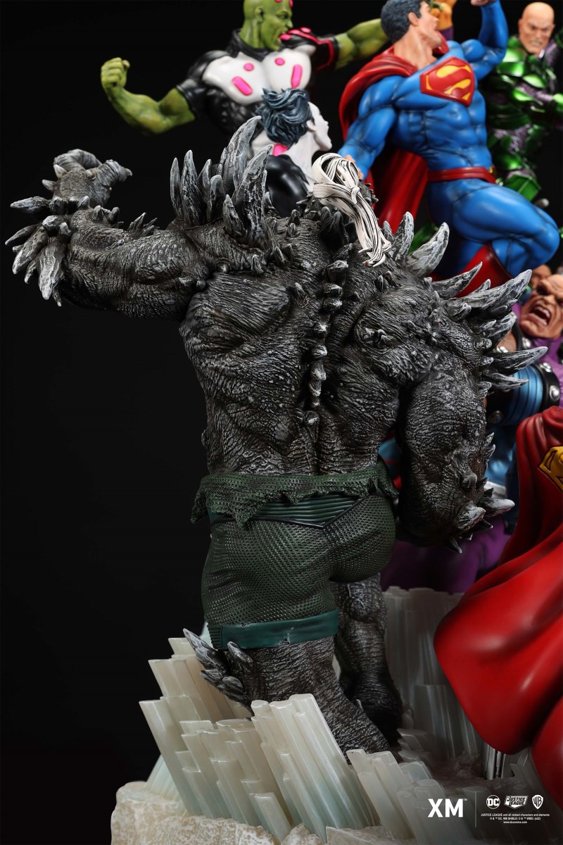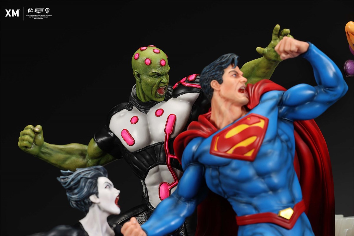 XM Studios is excited to present our next 1/6 scale DC EPIC DIORAMA series statue, Superman - Justice by David Finch! Having worked with XM to produce the Batman Sanity and Wonder Woman Courage dioramas, David is back to complete the trinity with a dynamic showstopper of a statue featuring the man of steel surrounded by some of his greatest foes in an epic struggle against evil! Description: Superman is a guiding light and the embodiment of hope to all – even against insurmountable odds. But there's more to it all beneath the iconic blue uniform and flowing red cape. With this art piece, we explore Superman’s resolve and inherently dichotomous nature. Though not of earth, he goes out of his way to protect its inhabitants. While extremely powerful, he has a plethora of other mighty foes opposing him. And most of all, his tendency to spare the lives of his foes may very well come back to haunt him in unsuspecting ways. Still, he presses on with unwavering determination to stand up for what’s right to the point where it almost seems like his foes are desperately trying to capture him and obstruct his path of exacting justice. Collectors will be able to choose between two gorgeous paint application variations. The first one allows collectors to appreciate the varied foes in full colour, with every carefully hand-painted character furnished with fleshed out textures and stunning detail. Positioned in the centre of it all is none other than Superman himself, struggling valiantly against all odds. The ice crystal version features his foes painted in the iconic colors of The Fortress of Solitude, providing an alternative reading of the statue, in which Superman’s foes are recreated as a memoir and representation of his many battles against them. #DC #Superman The statue features:Full-colourOne (1) highly detailed sculpt featuring a total of 11 characters in 1/6 scaleCrafted in PolystoneEach painstakingly handcrafted statue is individually hand-painted with the highest possible quality finish Artists:David Finch (2D)XM Studios Design and Development Team Manufactured by:XM Studios Note: Prototype shown and pending final approval, final product may differ. Batteries will not be included for products with light up features due to customs. Product and Box DimensionsEst. Box Size: Box A - 60*65*58cm; Box B - 85*65*38cmEst. Product Weight: 33kgEst. Shipping 40kg