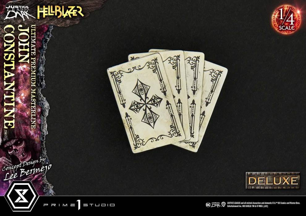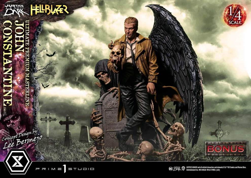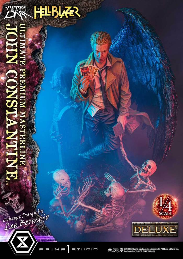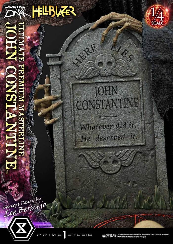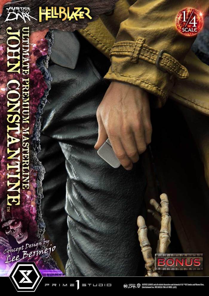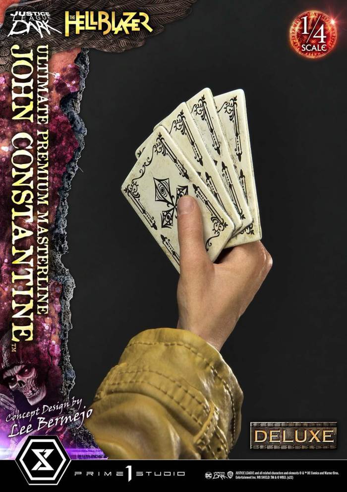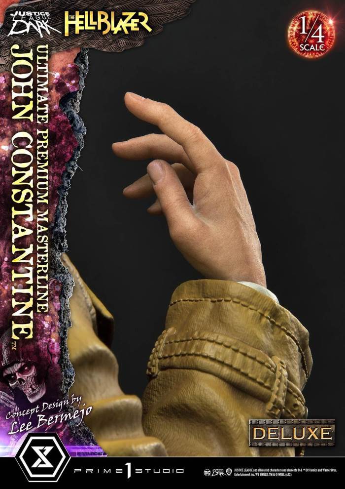 Descriptions“There aren’t any good guys, and there aren’t any bad guys. There’s just us. People. Doing out best to get by.”Prime 1 Studio is proud to present another fan favorite, design brought to you into our Ultimate Premium Masterline Series: the 1:4 Scale UPMDC-04DXS: John Constantine Deluxe Bonus Version Concept Design by Lee Bermejo from DC Comics.The Hellblazer is no stranger to Lee Bermejo, having worked on several issues over many years, Lee hits the home run once again with this Constantine design. Sticking to the dark and gruesome theme observed throughout our many collaborations with Lee Bermejo, this design of John Constantine is no exception and is sure to be a great addition to your collection.Reaching over 26 inches tall, this statue is bound to make anyone stop in the middle of their track in absolute awe, be they collectors or not! Rising from the depths of Hell, a trio of skeletons are reaching out and grasping at the detective of the occult. Leading them is an Angel of Death who lurks above John’s tombstone, waiting for the perfect moment to attack. However, sadly for them, the World’s Greatest Con is sure to have other plans, sporting his iconic slick-back hair and cunning smug expression. The level of detail in this statue is once again, out of this world, from the small patches of grass, the texture of the tombstone to each feather of the obsidian wing. This statue is a true beauty, from any angle that you may look.The Deluxe Bonus Version will allow you to expand your storytelling with one (1) additional alternative portrait and two (2) additional right hands. Should you want to move away from the smug and preppy look of the magician, the DX will allow you to portray a sterner look with a slightly more disheveled hairdo. The first right-hand holds four exquisitely detailed tarot cards whereas the second remains free.And when you pre-order this Deluxe Bonus Version from our official online store or any authorized distributor, you will receive an extra Bonus Parts: an extra swappable portrait and a swappable left-hand as well as a special art print signed by Lee Bermejo!Do not dwell any longer, pre-order now to complete your Prime1 Studio Lee Bermejo statue collection!Specifications:Graveyard designed theme baseTwo (2) swappable portraitsThree (3) swappable right handsOne (1) Bonus swappable portrait [BONUS PART]One (1) Bonus swappable left hand [BONUS PART]Special art print (A4 size) signed by Lee Bermejo [BONUS PART]