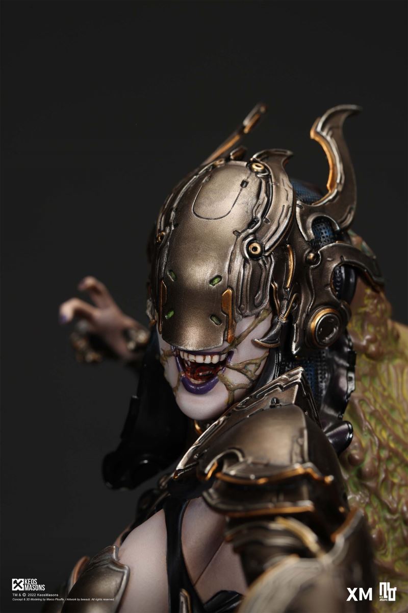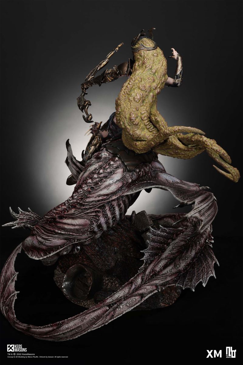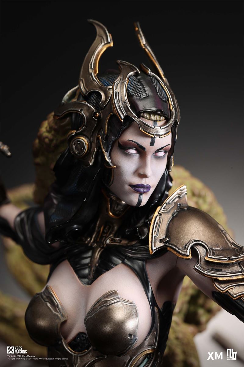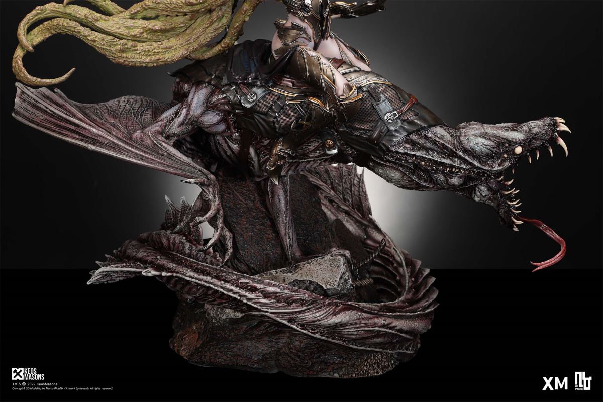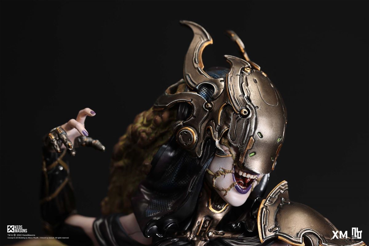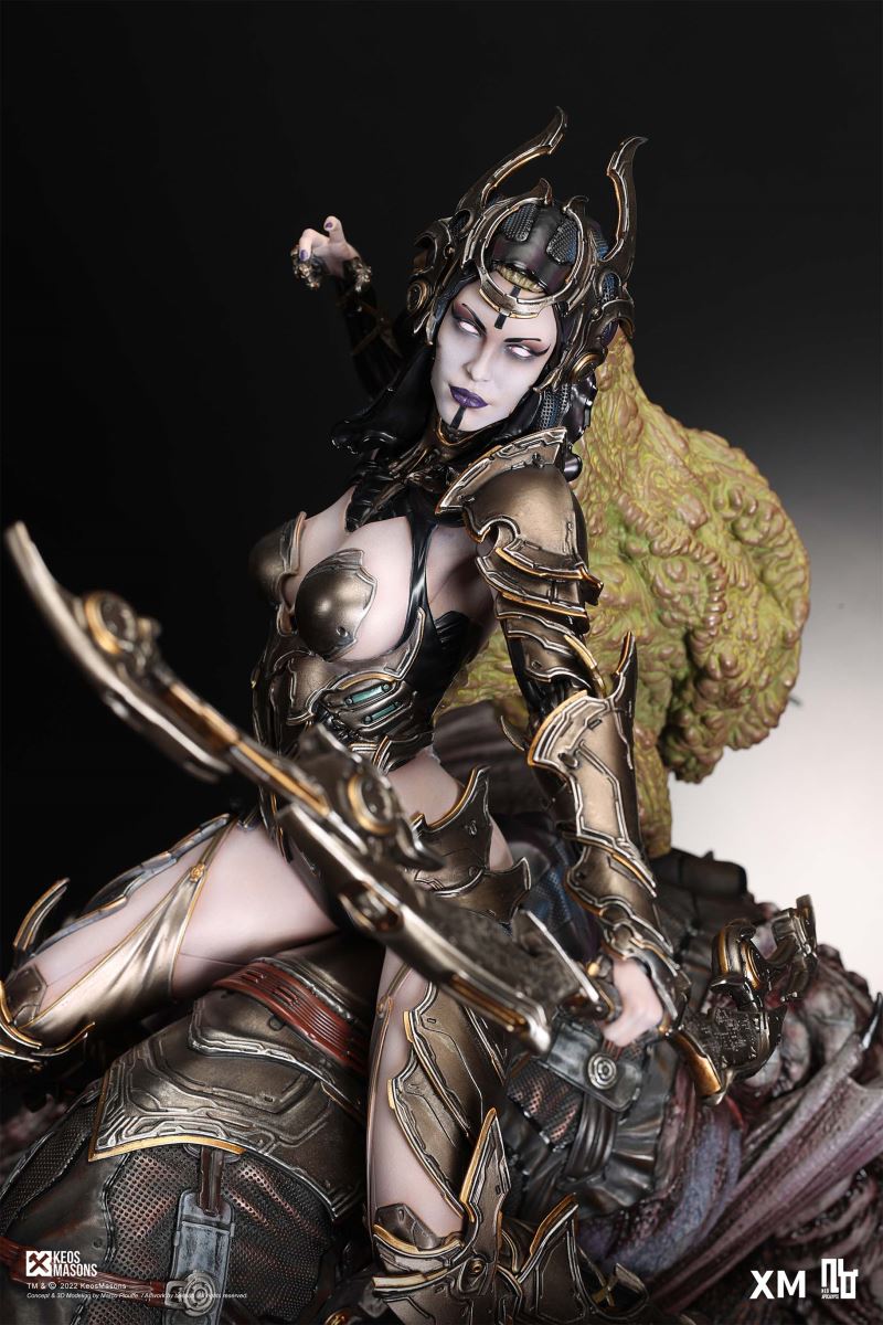 Presenting Pestilence, XM’s second ¼ scale statue from the Four Horsemen line, a unique collaboration with renowned 3D concept design and character modelling company, Keos Masons. Based on characters set in the Neo-Apocalypse world, each statue is presented in a bold, dynamic, and story-laden style. The Four Horsemen serve as effigies of destruction and vengeance— the symbols of an uprising that continue to scour the earth. As a “pleasure series” android, her kind was once subject to some of the worst forms of abuse by humankind. Driven by an infectious taste for revenge and desiring nothing more than to terrorize the human forces with virulent biochemical attacks that spread disease, she is adept at swooping in from above while mounted on a flying serpent to arrive at strategic vantage points, inflicting death from afar with her trusty bow and making whole areas uninhabitable to human beings. Now leading the android forces as one of The Four Horsemen, Pestilence inspires untold dread on her victims, making the general population live in a constant state of sickness. Collectors can choose between 2 head switch-outs. The first one features Pestilence half-masked with a sinister grin. With this switch-out, you can feel her emanating a powerful aura that shows her true desire to spread diseases to exact revenge on her enemies. The second one features Pestilence with a cold-hearted and uncaring unmasked face. Each statue is individually hand-painted and comes complete with XM’s famous quality finish. Character Background “Then came the second, steeped in the rancid stench of man’s darkest desires, it held itself with nymphlike haughtiness, built up by a life’s worth of unwarranted perversion. As the rider approached, an ominous, sickly green cloud followed, turning all that it covered into pustulent masses of wilted life, turning to ash before one’s eyes when touched. This one said it was Pestilence, its speech only a series of hisses somehow translated to visions of fleshly abuse; a nauseating slideshow of our own sins from which spawned this virulence.” Read more at https://neo-apocalypse.com/Pre-order the rest of the collection at https://www.xm-studios.com/content/neo-apocalypse.aspx #XMStudios #NeoApocalypse #TheFourHorsemen #Pestilence The statue features:Two (2) head sculpts – 1 half-masked with a sinister grin, and 1 menacing unmasked faceCrafted in PolystoneEach painstakingly handcrafted statue is individually hand-painted with the highest possible quality finish Artists:Marco Plouffe (2D and 3D)Victor Bassieux (Assistant 3D Artist)XM Studios Design and Development Team Manufactured by:XM Studios Note: Prototype shown and pending final approval, final product may differ. Batteries will not be included for products with light up features due to customs. Product and Box DimensionsEst. Box Size: 85*65*38cm (Box A) 85*62*25cm (Box B)Est. Product Weight: 25kgEst. Shipping Weight 32kg