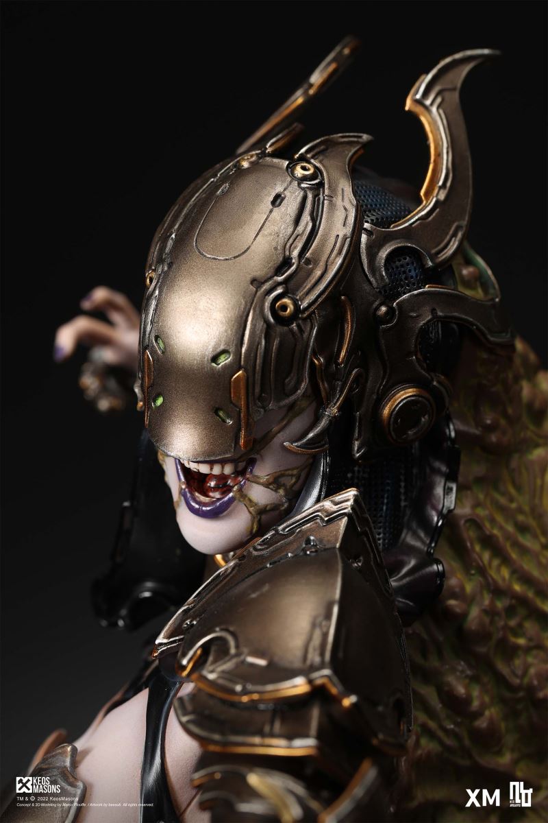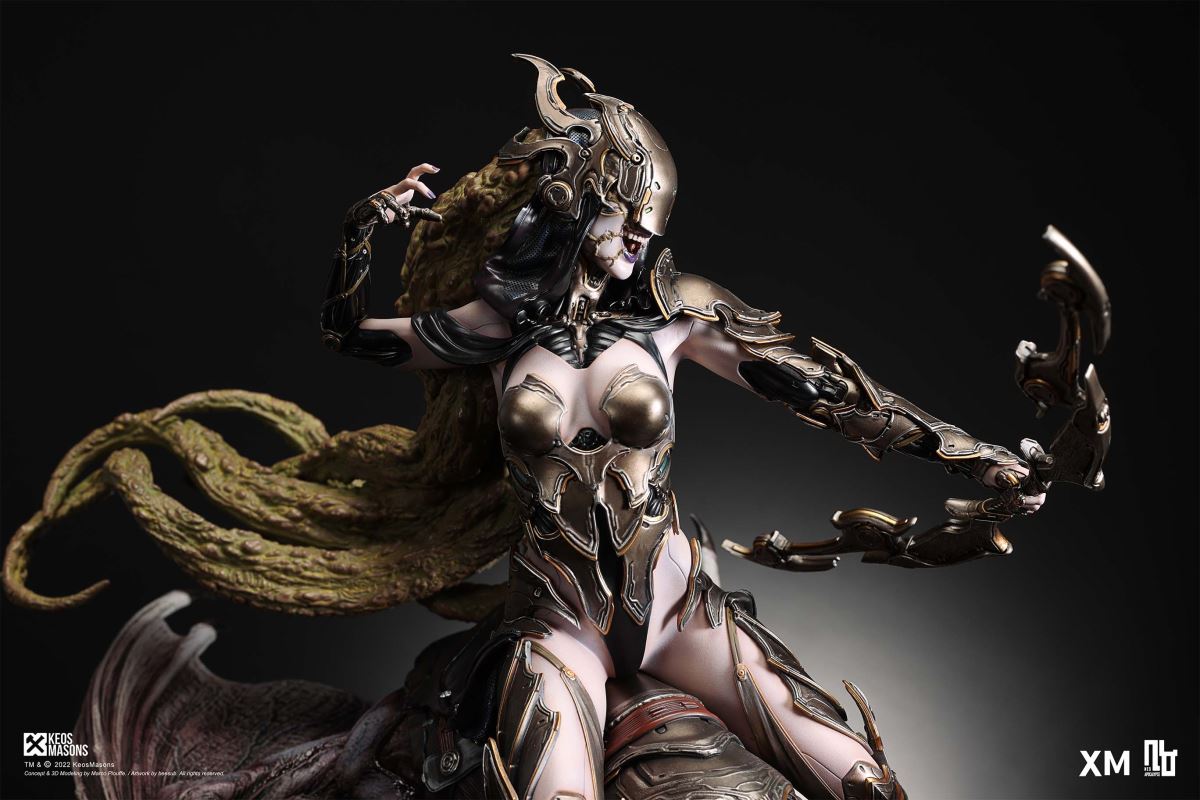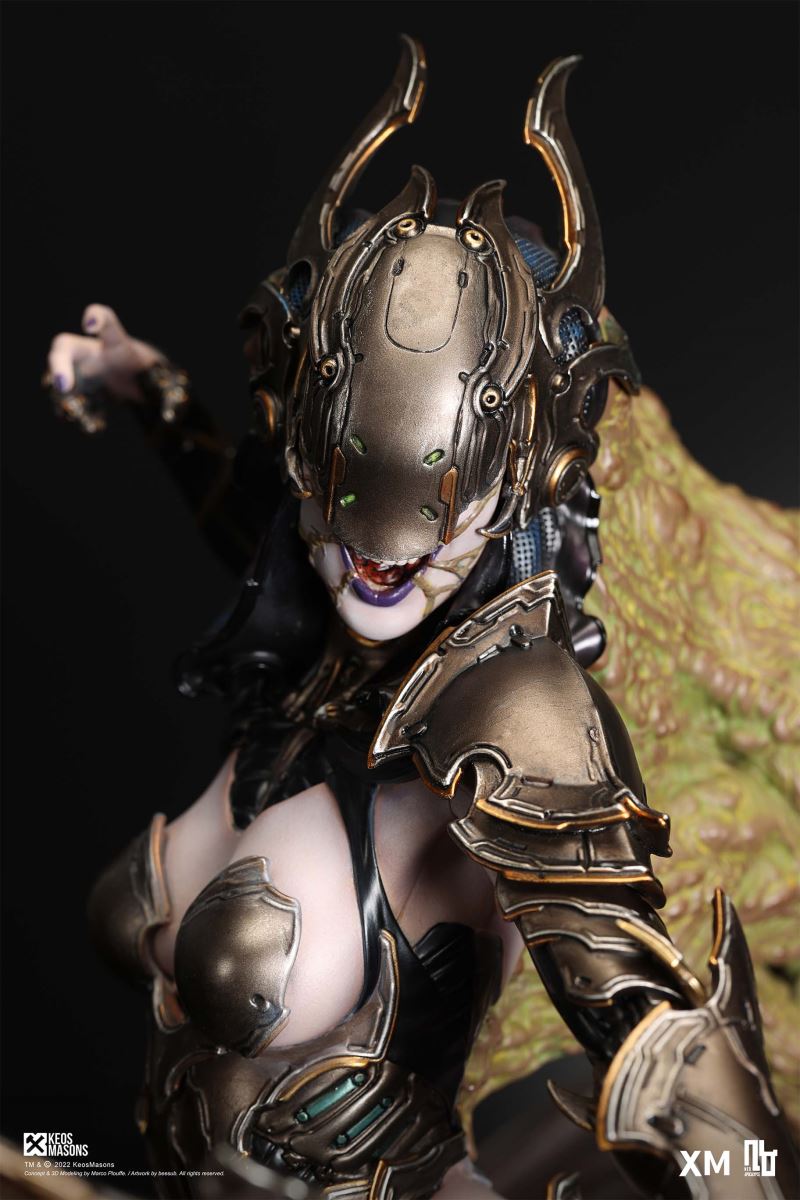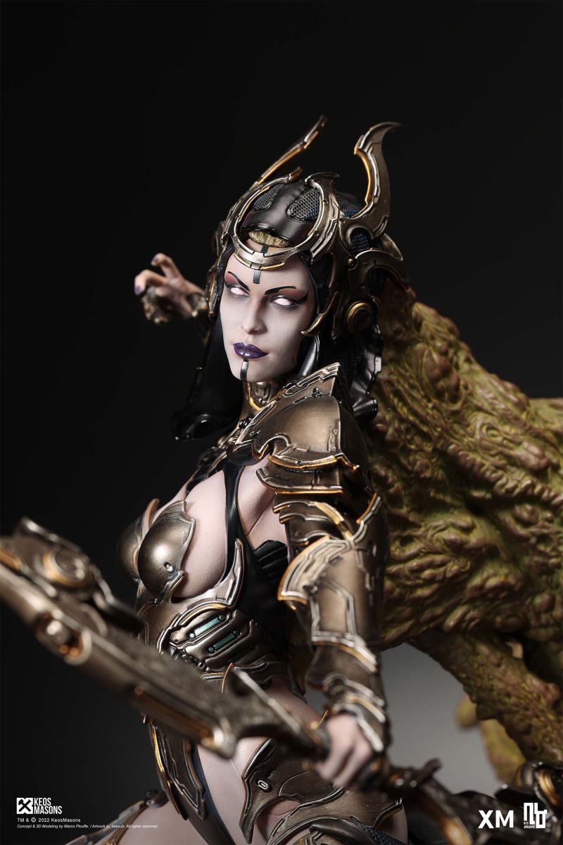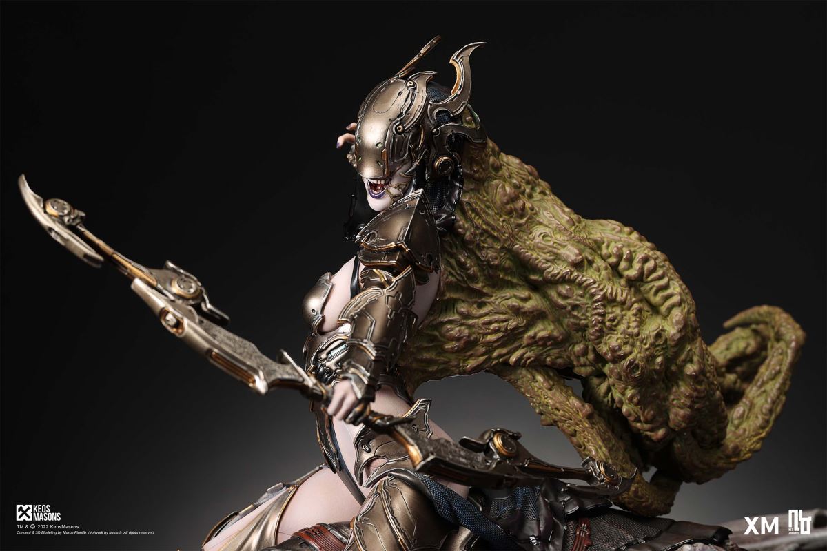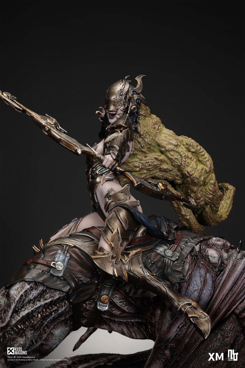 Presenting Pestilence, XM’s second ¼ scale statue from the Four Horsemen line, a unique collaboration with renowned 3D concept design and character modelling company, Keos Masons. Based on characters set in the Neo-Apocalypse world, each statue is presented in a bold, dynamic, and story-laden style. The Four Horsemen serve as effigies of destruction and vengeance— the symbols of an uprising that continue to scour the earth. As a “pleasure series” android, her kind was once subject to some of the worst forms of abuse by humankind. Driven by an infectious taste for revenge and desiring nothing more than to terrorize the human forces with virulent biochemical attacks that spread disease, she is adept at swooping in from above while mounted on a flying serpent to arrive at strategic vantage points, inflicting death from afar with her trusty bow and making whole areas uninhabitable to human beings. Now leading the android forces as one of The Four Horsemen, Pestilence inspires untold dread on her victims, making the general population live in a constant state of sickness. Collectors can choose between 2 head switch-outs. The first one features Pestilence half-masked with a sinister grin. With this switch-out, you can feel her emanating a powerful aura that shows her true desire to spread diseases to exact revenge on her enemies. The second one features Pestilence with a cold-hearted and uncaring unmasked face. Each statue is individually hand-painted and comes complete with XM’s famous quality finish. Character Background “Then came the second, steeped in the rancid stench of man’s darkest desires, it held itself with nymphlike haughtiness, built up by a life’s worth of unwarranted perversion. As the rider approached, an ominous, sickly green cloud followed, turning all that it covered into pustulent masses of wilted life, turning to ash before one’s eyes when touched. This one said it was Pestilence, its speech only a series of hisses somehow translated to visions of fleshly abuse; a nauseating slideshow of our own sins from which spawned this virulence.” Read more at https://neo-apocalypse.com/Pre-order the rest of the collection at https://www.xm-studios.com/content/neo-apocalypse.aspx #XMStudios #NeoApocalypse #TheFourHorsemen #Pestilence The statue features:Two (2) head sculpts – 1 half-masked with a sinister grin, and 1 menacing unmasked faceCrafted in PolystoneEach painstakingly handcrafted statue is individually hand-painted with the highest possible quality finish Artists:Marco Plouffe (2D and 3D)Victor Bassieux (Assistant 3D Artist)XM Studios Design and Development Team Manufactured by:XM Studios Note: Prototype shown and pending final approval, final product may differ. Batteries will not be included for products with light up features due to customs. Product and Box DimensionsEst. Box Size: 85*65*38cm (Box A) 85*62*25cm (Box B)Est. Product Weight: 25kgEst. Shipping Weight 32kg