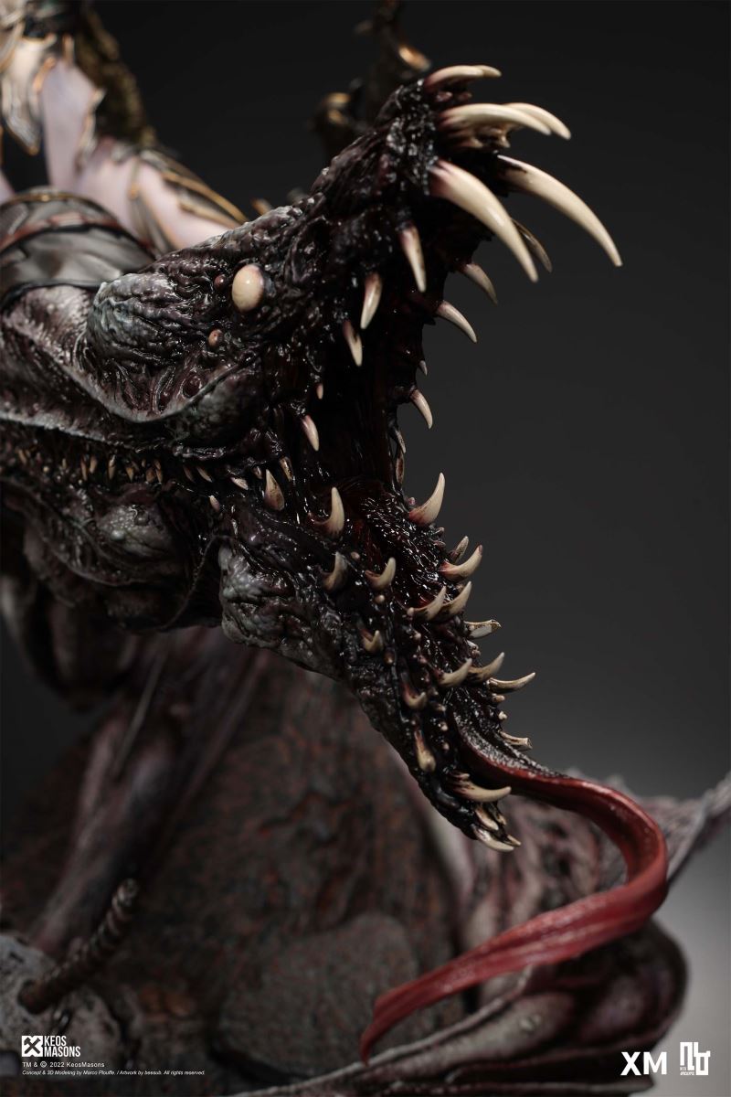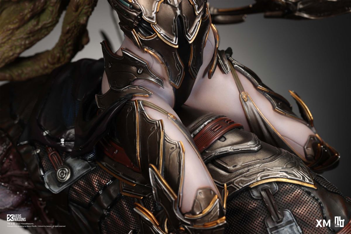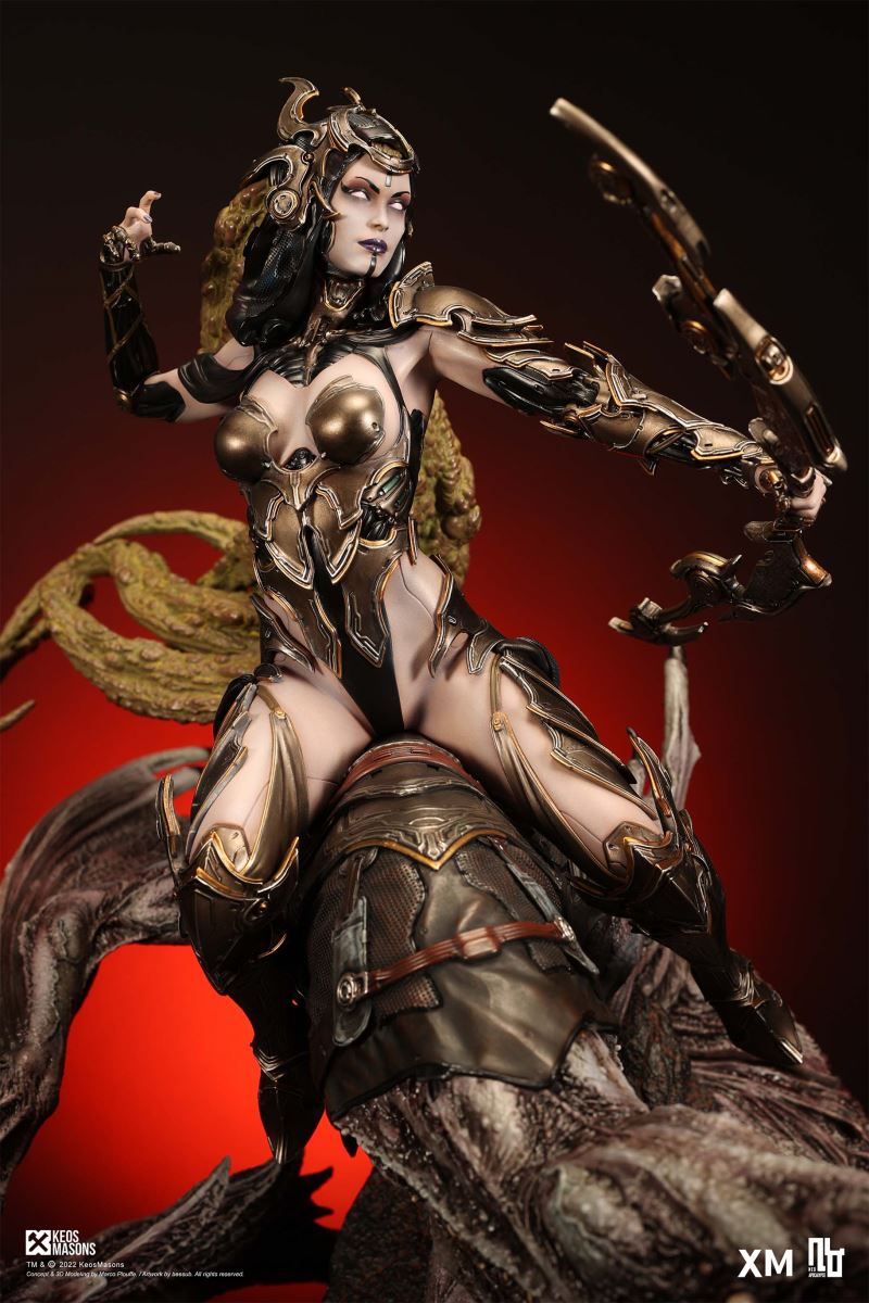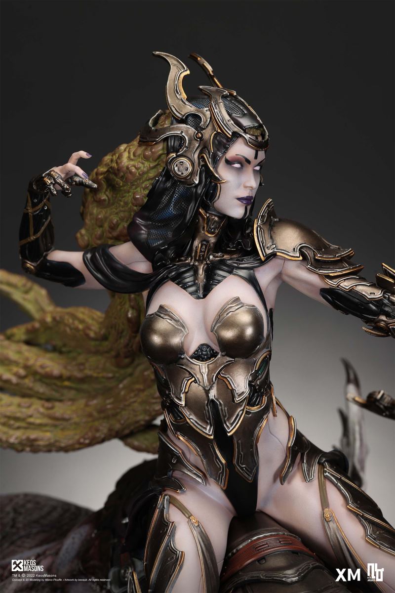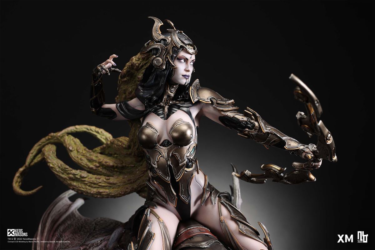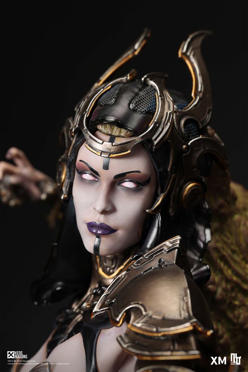 Presenting Pestilence, XM’s second ¼ scale statue from the Four Horsemen line, a unique collaboration with renowned 3D concept design and character modelling company, Keos Masons. Based on characters set in the Neo-Apocalypse world, each statue is presented in a bold, dynamic, and story-laden style. The Four Horsemen serve as effigies of destruction and vengeance— the symbols of an uprising that continue to scour the earth. As a “pleasure series” android, her kind was once subject to some of the worst forms of abuse by humankind. Driven by an infectious taste for revenge and desiring nothing more than to terrorize the human forces with virulent biochemical attacks that spread disease, she is adept at swooping in from above while mounted on a flying serpent to arrive at strategic vantage points, inflicting death from afar with her trusty bow and making whole areas uninhabitable to human beings. Now leading the android forces as one of The Four Horsemen, Pestilence inspires untold dread on her victims, making the general population live in a constant state of sickness. Collectors can choose between 2 head switch-outs. The first one features Pestilence half-masked with a sinister grin. With this switch-out, you can feel her emanating a powerful aura that shows her true desire to spread diseases to exact revenge on her enemies. The second one features Pestilence with a cold-hearted and uncaring unmasked face. Each statue is individually hand-painted and comes complete with XM’s famous quality finish. Character Background “Then came the second, steeped in the rancid stench of man’s darkest desires, it held itself with nymphlike haughtiness, built up by a life’s worth of unwarranted perversion. As the rider approached, an ominous, sickly green cloud followed, turning all that it covered into pustulent masses of wilted life, turning to ash before one’s eyes when touched. This one said it was Pestilence, its speech only a series of hisses somehow translated to visions of fleshly abuse; a nauseating slideshow of our own sins from which spawned this virulence.” Read more at https://neo-apocalypse.com/Pre-order the rest of the collection at https://www.xm-studios.com/content/neo-apocalypse.aspx #XMStudios #NeoApocalypse #TheFourHorsemen #Pestilence The statue features:Two (2) head sculpts – 1 half-masked with a sinister grin, and 1 menacing unmasked faceCrafted in PolystoneEach painstakingly handcrafted statue is individually hand-painted with the highest possible quality finish Artists:Marco Plouffe (2D and 3D)Victor Bassieux (Assistant 3D Artist)XM Studios Design and Development Team Manufactured by:XM Studios Note: Prototype shown and pending final approval, final product may differ. Batteries will not be included for products with light up features due to customs. Product and Box DimensionsEst. Box Size: 85*65*38cm (Box A) 85*62*25cm (Box B)Est. Product Weight: 25kgEst. Shipping Weight 32kg