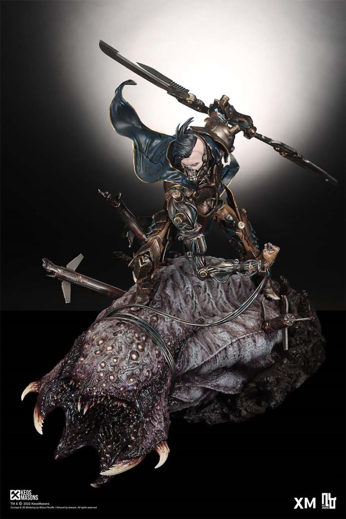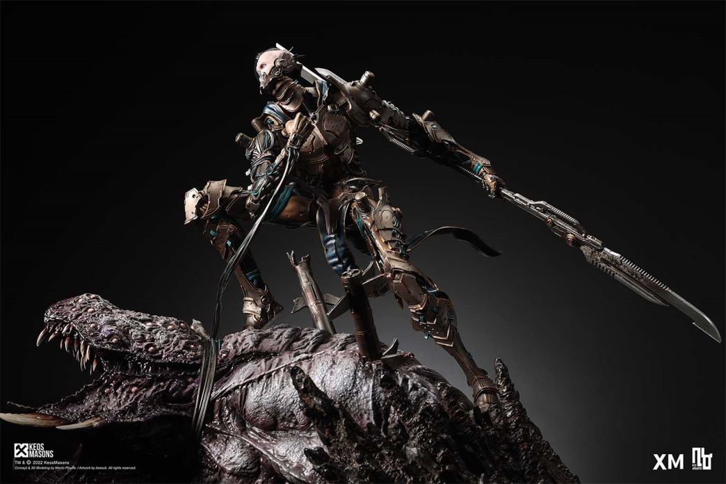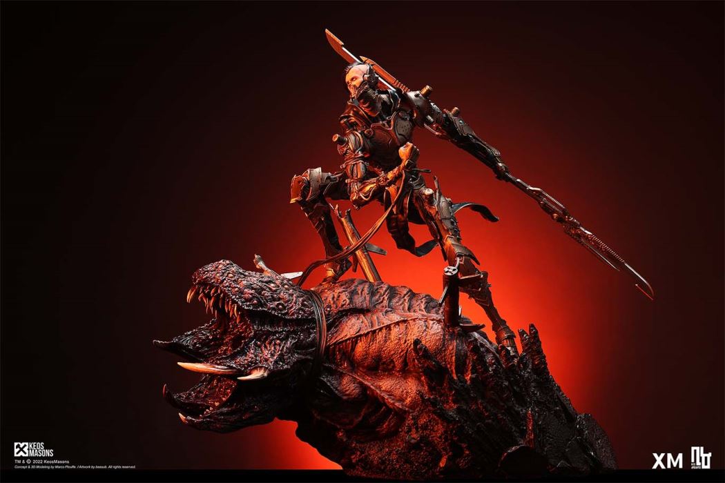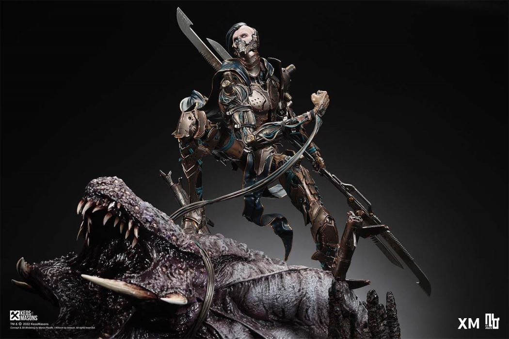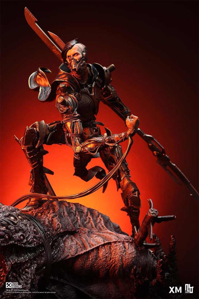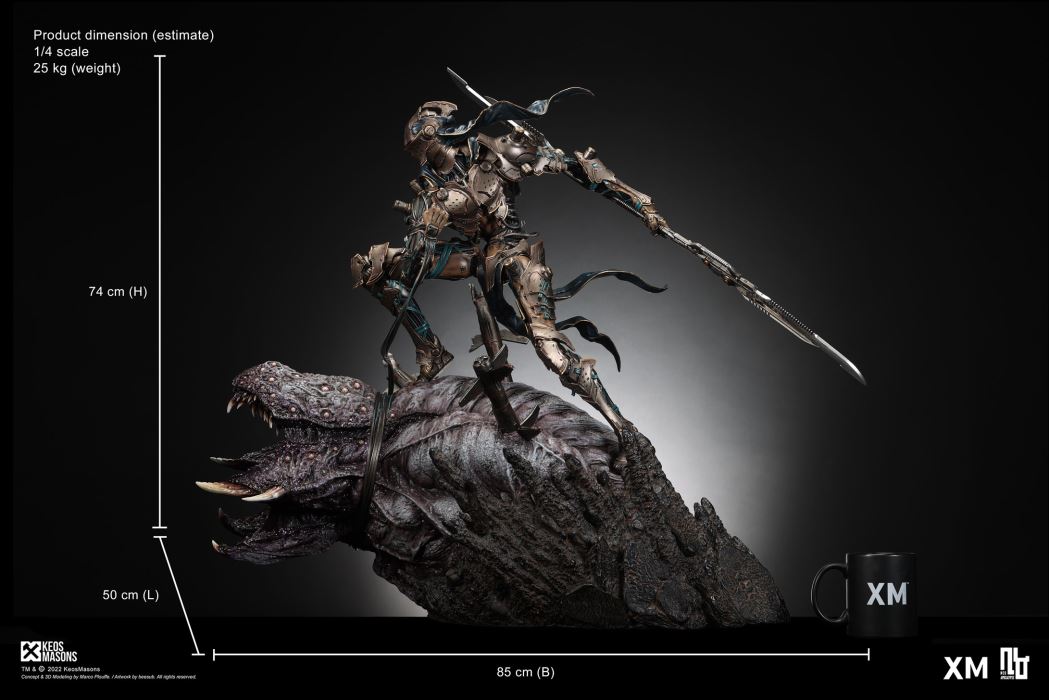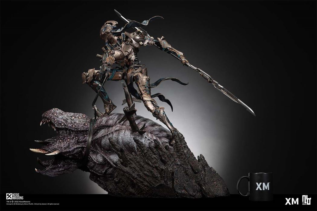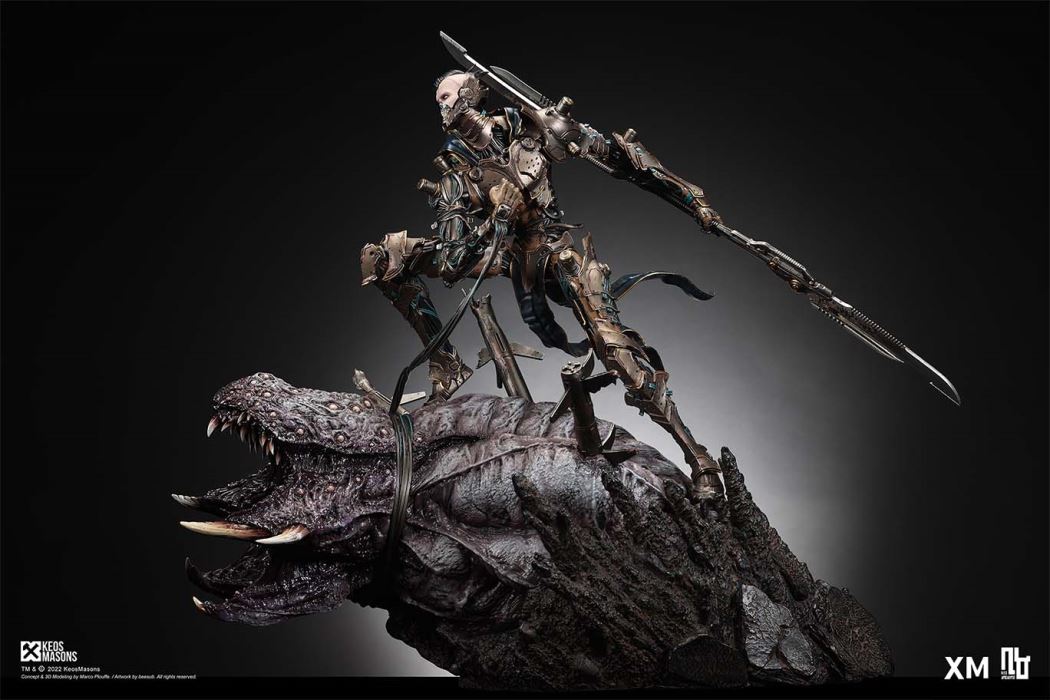 Presenting Famine, XM’s third ¼ scale statue from the Four Horsemen line, a unique collaboration with renowned 3D concept design and character modelling company, Keos Masons. Based on characters set in the Neo-Apocalypse world, each statue is presented in a bold, dynamic, and story-laden style. The Four Horsemen serve as effigies of destruction and vengeance— the symbols of an uprising that continue to scour the earth. A loud rumbling shatters the silence, soon revealing a hulking worm-like creature that breaks through from the ground. A lanky figure can be seen straddling it from the top in a proud and somewhat reckless manner as he flashes a deformed smile at the onlookers. And as the figure steers the creature to devour what is left of the crops, the humans— still in shock— are left wondering why the warning system alarms bells haven’t rung out yet. Once in charge of toiling the lands to provide the humans with their much-needed subsistence, Famine would receive nothing short of neglect in return. An ironic and inevitable shut down became the fate of this android despite being an expert at machine repair, and when it awakened it would wear this state of disrepair as a badge of honour while wreaking havoc on human infrastructure. An expert saboteur, it would take on the retaliatory attacks of the humans within their own strongholds without so much as a flinch while wielding a balanced double-headed spear called “Longinus”. Collectors can choose between 2 head switch-outs. The first one has Famine showing off his state of disrepair like a badge of honour as he flashes a menacing grin from a decaying face. The second switch-out features Famine with a visored helmet. Each statue is individually hand-painted and comes complete with XM’s famous quality finish. Character Background “Thus came the third, thinned as the children that thieve our merchants, yet standing strong like a fattened Lord, its movement sweeping the surrounding fields as would a harvester, reclaiming all to compensate the nourishment it once lacked. And it named itself Famine, our ultimate harvest in the wake of the tools we opted to dispose of rather than maintain - blessings cheapened with lethargy and greed....” Read more at https://neo-apocalypse.com/Pre-order the rest of the collection at https://www.xm-studios.com/content/neo-apocalypse.aspx #XMStudios #NeoApocalypse #TheFourHorsemen #Pestilence The statue features:Two (2) head sculpts – 1 head with a decaying face, and 1 head with Famine wearing a helmetCrafted in PolystoneEach painstakingly handcrafted statue is individually hand-painted with the highest possible quality finish Artists:Marco Plouffe (2D and 3D)Victor Bassieux (Assistant 3D Artist)XM Studios Design and Development Team Manufactured by:XM Studios Note: Prototype shown and pending final approval, final product may differ. Batteries will not be included for products with light up features due to customs. Product and Box DimensionsProduct Size: 50*85*74cm Est. Box Size: 85*85*39cm Est. Product Weight: 25kgEst. Shipping Weight: 28kg