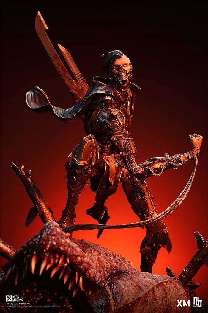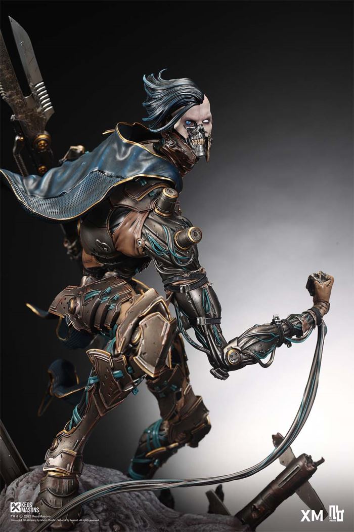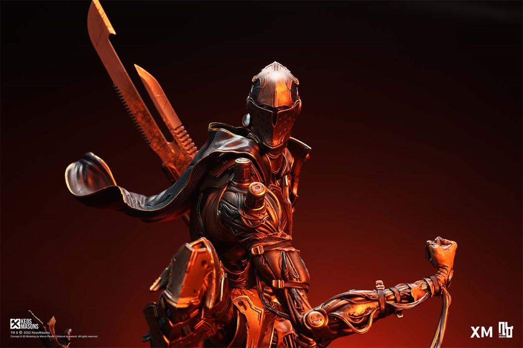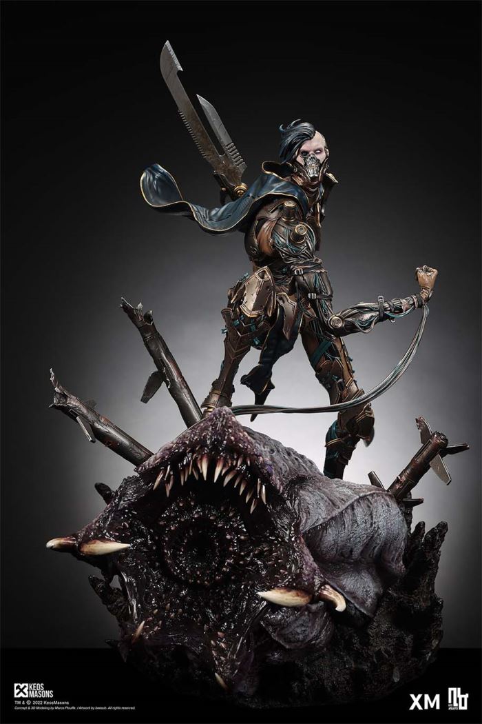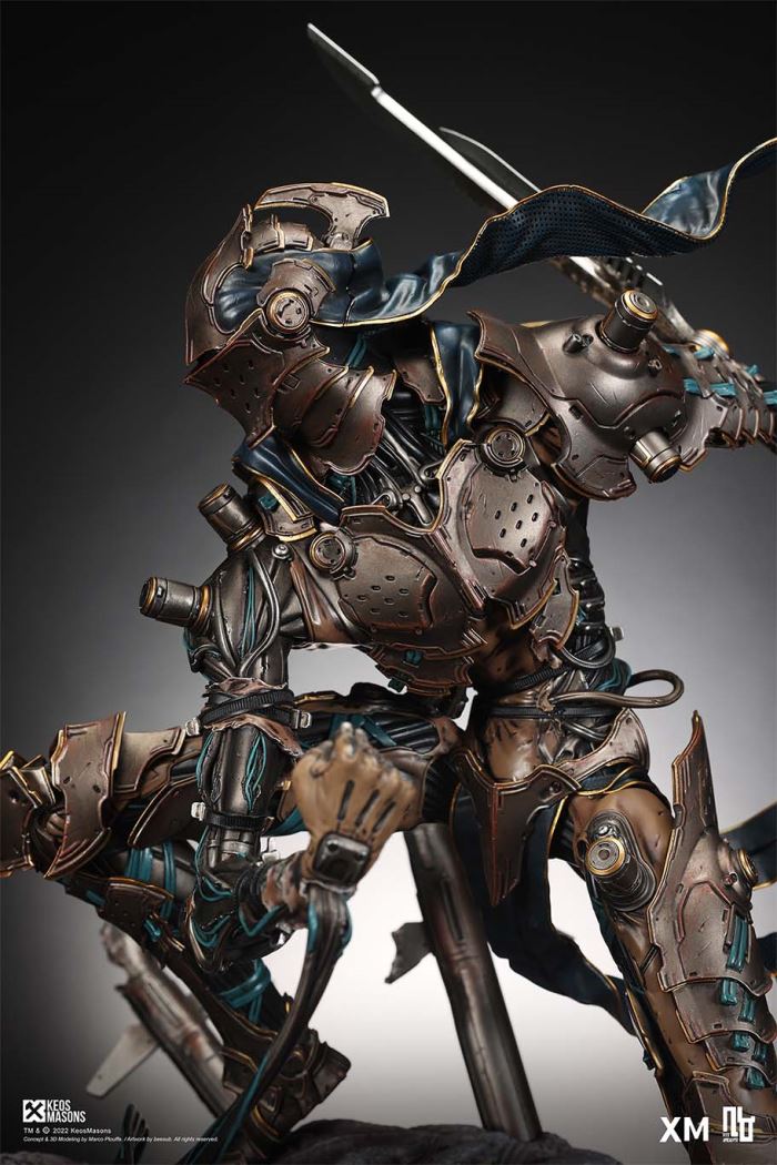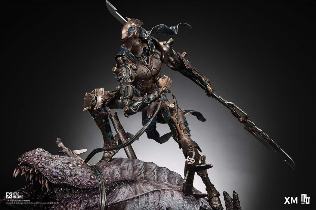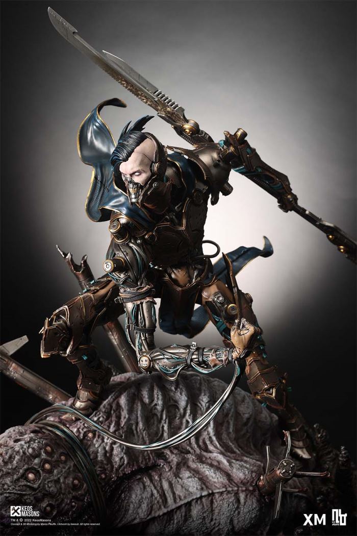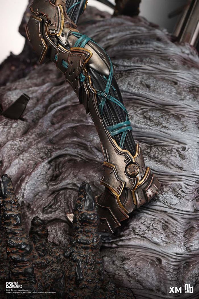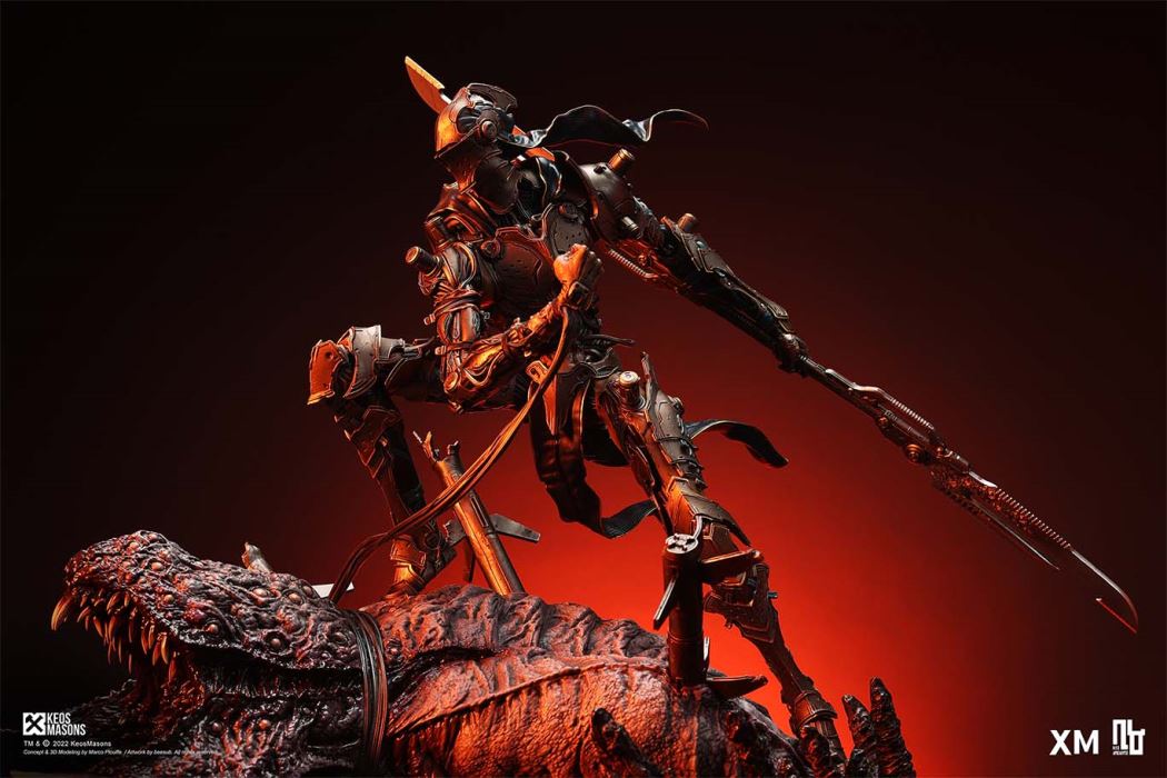 Presenting Famine, XM’s third ¼ scale statue from the Four Horsemen line, a unique collaboration with renowned 3D concept design and character modelling company, Keos Masons. Based on characters set in the Neo-Apocalypse world, each statue is presented in a bold, dynamic, and story-laden style. The Four Horsemen serve as effigies of destruction and vengeance— the symbols of an uprising that continue to scour the earth. A loud rumbling shatters the silence, soon revealing a hulking worm-like creature that breaks through from the ground. A lanky figure can be seen straddling it from the top in a proud and somewhat reckless manner as he flashes a deformed smile at the onlookers. And as the figure steers the creature to devour what is left of the crops, the humans— still in shock— are left wondering why the warning system alarms bells haven’t rung out yet. Once in charge of toiling the lands to provide the humans with their much-needed subsistence, Famine would receive nothing short of neglect in return. An ironic and inevitable shut down became the fate of this android despite being an expert at machine repair, and when it awakened it would wear this state of disrepair as a badge of honour while wreaking havoc on human infrastructure. An expert saboteur, it would take on the retaliatory attacks of the humans within their own strongholds without so much as a flinch while wielding a balanced double-headed spear called “Longinus”. Collectors can choose between 2 head switch-outs. The first one has Famine showing off his state of disrepair like a badge of honour as he flashes a menacing grin from a decaying face. The second switch-out features Famine with a visored helmet. Each statue is individually hand-painted and comes complete with XM’s famous quality finish. Character Background “Thus came the third, thinned as the children that thieve our merchants, yet standing strong like a fattened Lord, its movement sweeping the surrounding fields as would a harvester, reclaiming all to compensate the nourishment it once lacked. And it named itself Famine, our ultimate harvest in the wake of the tools we opted to dispose of rather than maintain - blessings cheapened with lethargy and greed....” Read more at https://neo-apocalypse.com/Pre-order the rest of the collection at https://www.xm-studios.com/content/neo-apocalypse.aspx #XMStudios #NeoApocalypse #TheFourHorsemen #Pestilence The statue features:Two (2) head sculpts – 1 head with a decaying face, and 1 head with Famine wearing a helmetCrafted in PolystoneEach painstakingly handcrafted statue is individually hand-painted with the highest possible quality finish Artists:Marco Plouffe (2D and 3D)Victor Bassieux (Assistant 3D Artist)XM Studios Design and Development Team Manufactured by:XM Studios Note: Prototype shown and pending final approval, final product may differ. Batteries will not be included for products with light up features due to customs. Product and Box DimensionsProduct Size: 50*85*74cm Est. Box Size: 85*85*39cm Est. Product Weight: 25kgEst. Shipping Weight: 28kg