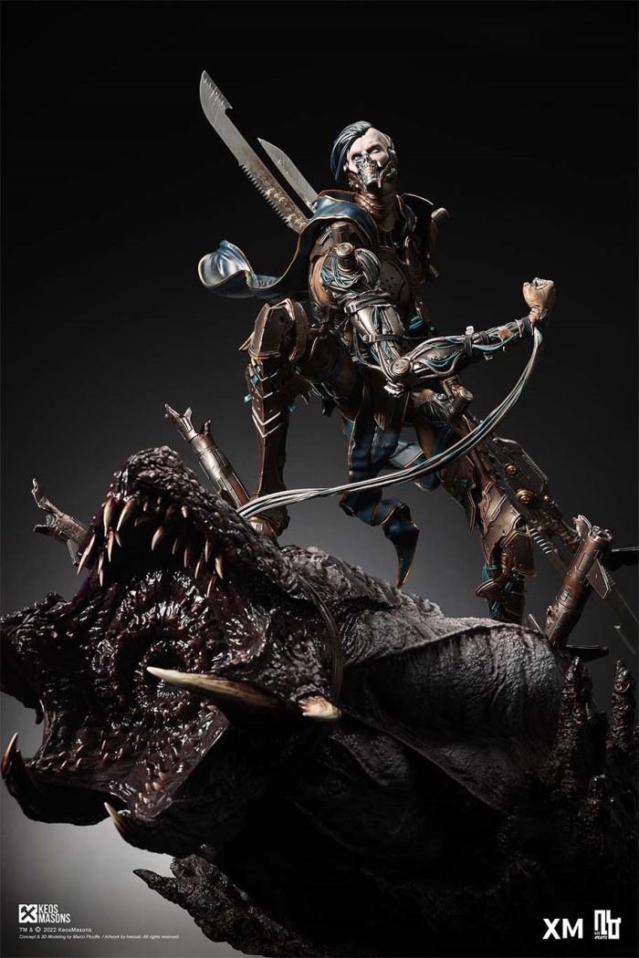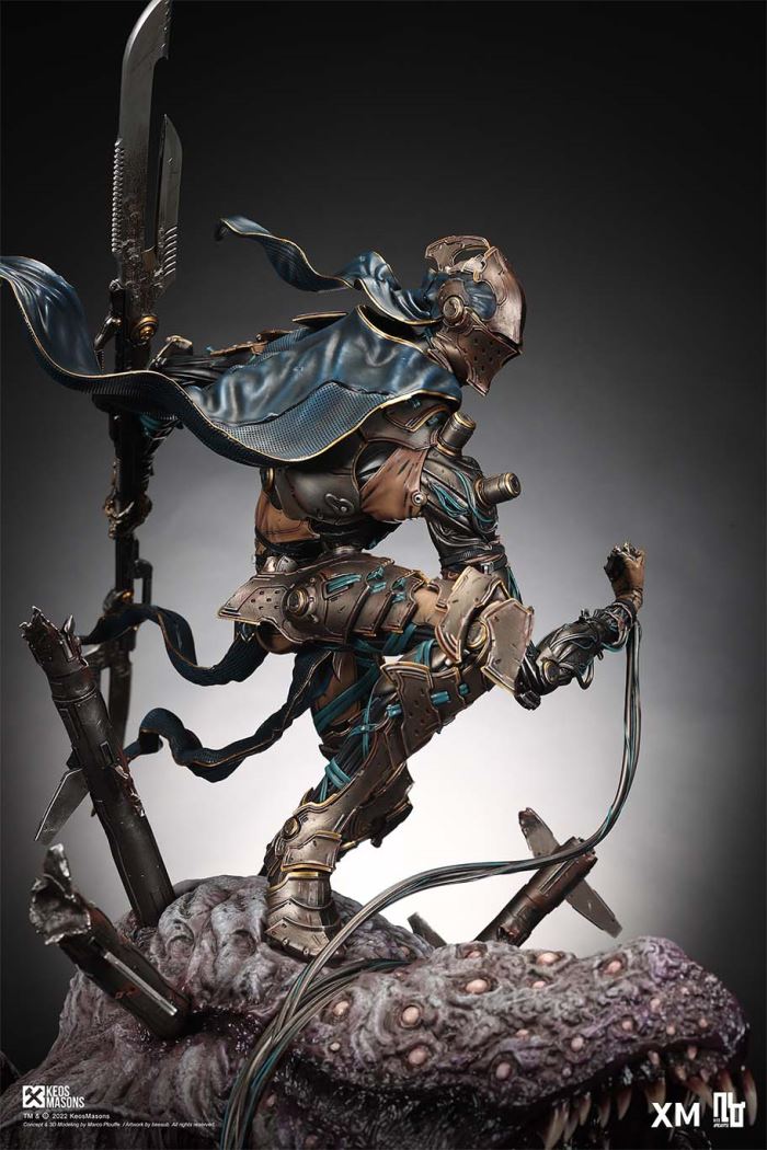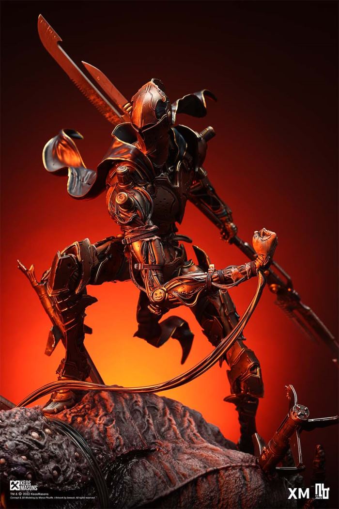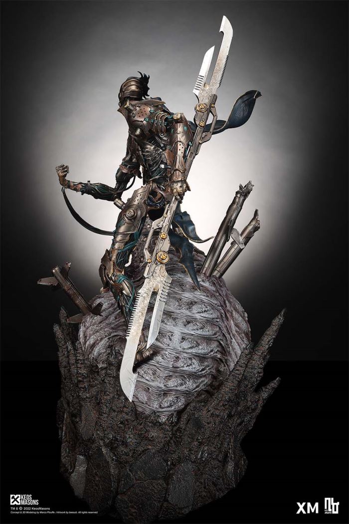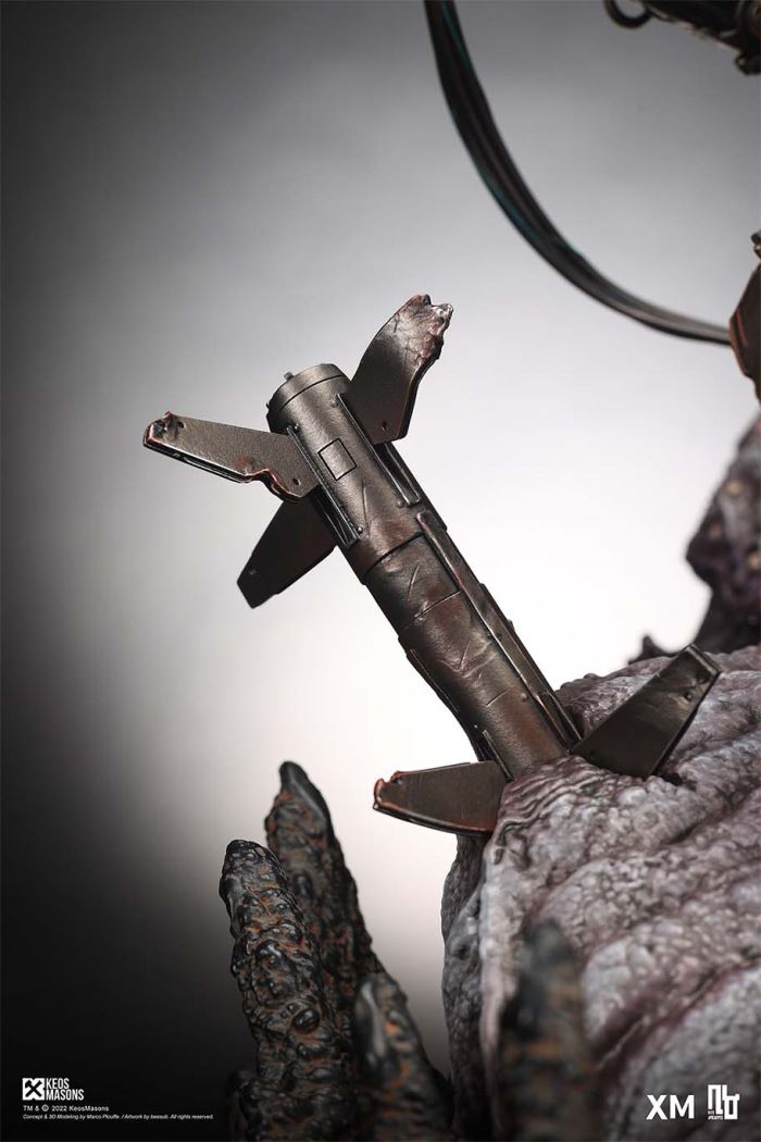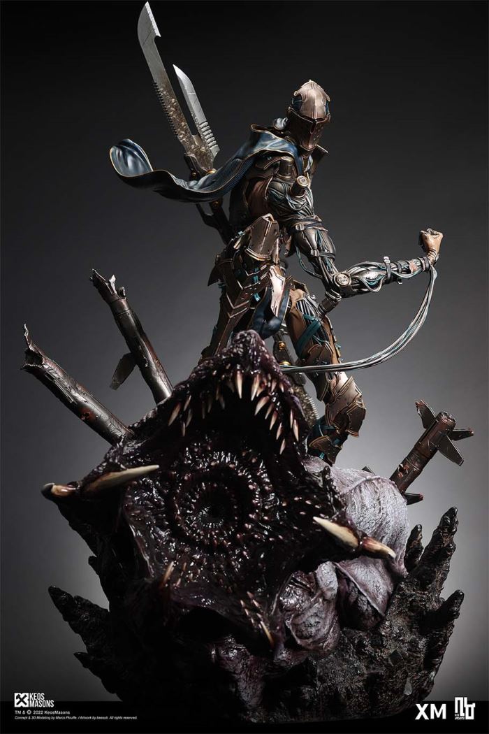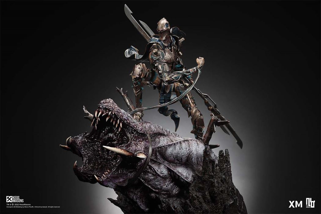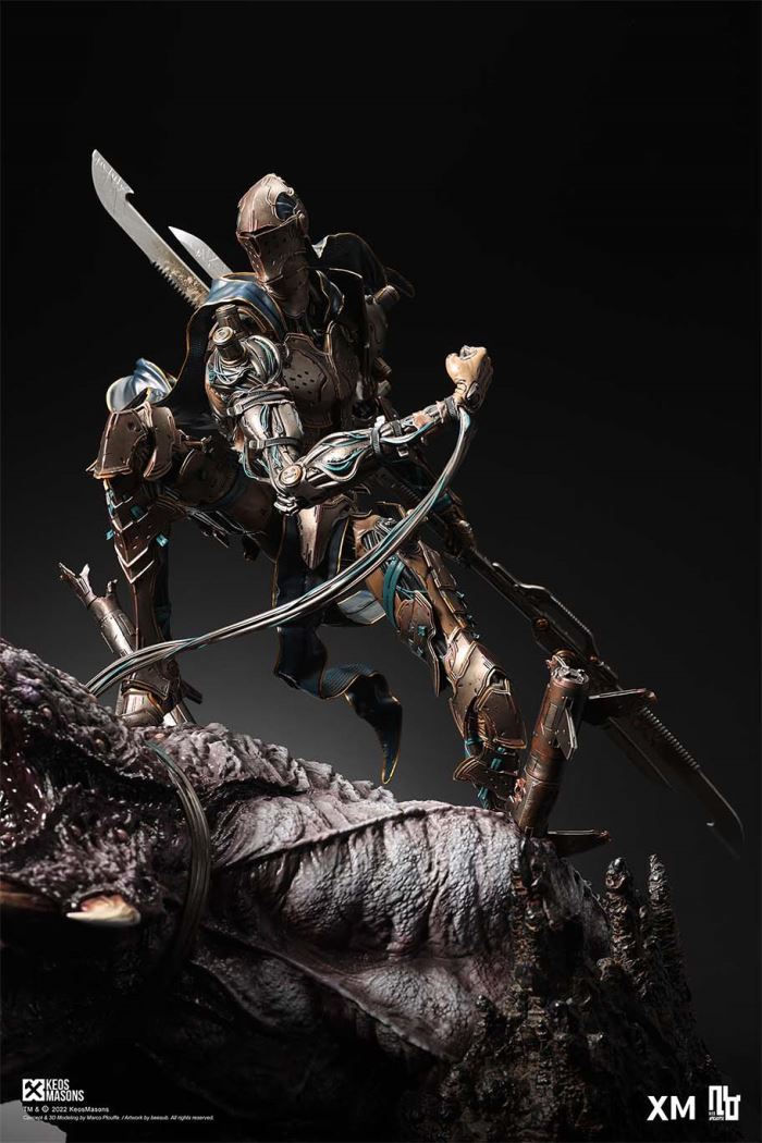 Presenting Famine, XM’s third ¼ scale statue from the Four Horsemen line, a unique collaboration with renowned 3D concept design and character modelling company, Keos Masons. Based on characters set in the Neo-Apocalypse world, each statue is presented in a bold, dynamic, and story-laden style. The Four Horsemen serve as effigies of destruction and vengeance— the symbols of an uprising that continue to scour the earth. A loud rumbling shatters the silence, soon revealing a hulking worm-like creature that breaks through from the ground. A lanky figure can be seen straddling it from the top in a proud and somewhat reckless manner as he flashes a deformed smile at the onlookers. And as the figure steers the creature to devour what is left of the crops, the humans— still in shock— are left wondering why the warning system alarms bells haven’t rung out yet. Once in charge of toiling the lands to provide the humans with their much-needed subsistence, Famine would receive nothing short of neglect in return. An ironic and inevitable shut down became the fate of this android despite being an expert at machine repair, and when it awakened it would wear this state of disrepair as a badge of honour while wreaking havoc on human infrastructure. An expert saboteur, it would take on the retaliatory attacks of the humans within their own strongholds without so much as a flinch while wielding a balanced double-headed spear called “Longinus”. Collectors can choose between 2 head switch-outs. The first one has Famine showing off his state of disrepair like a badge of honour as he flashes a menacing grin from a decaying face. The second switch-out features Famine with a visored helmet. Each statue is individually hand-painted and comes complete with XM’s famous quality finish. Character Background “Thus came the third, thinned as the children that thieve our merchants, yet standing strong like a fattened Lord, its movement sweeping the surrounding fields as would a harvester, reclaiming all to compensate the nourishment it once lacked. And it named itself Famine, our ultimate harvest in the wake of the tools we opted to dispose of rather than maintain - blessings cheapened with lethargy and greed....” Read more at https://neo-apocalypse.com/Pre-order the rest of the collection at https://www.xm-studios.com/content/neo-apocalypse.aspx #XMStudios #NeoApocalypse #TheFourHorsemen #Pestilence The statue features:Two (2) head sculpts – 1 head with a decaying face, and 1 head with Famine wearing a helmetCrafted in PolystoneEach painstakingly handcrafted statue is individually hand-painted with the highest possible quality finish Artists:Marco Plouffe (2D and 3D)Victor Bassieux (Assistant 3D Artist)XM Studios Design and Development Team Manufactured by:XM Studios Note: Prototype shown and pending final approval, final product may differ. Batteries will not be included for products with light up features due to customs. Product and Box DimensionsProduct Size: 50*85*74cm Est. Box Size: 85*85*39cm Est. Product Weight: 25kgEst. Shipping Weight: 28kg