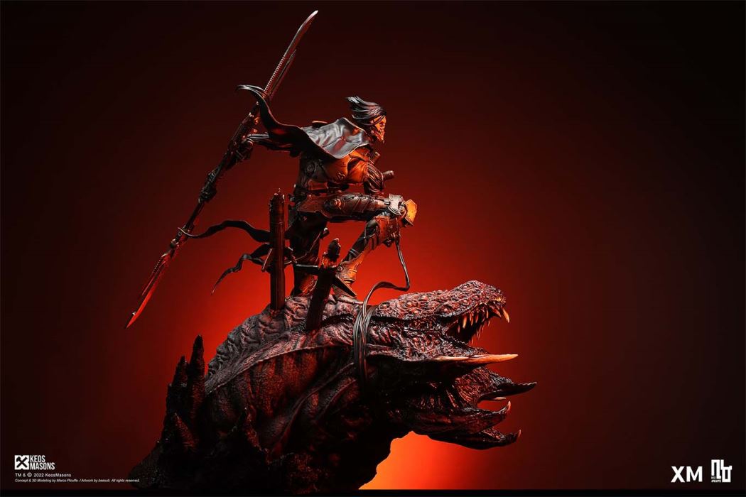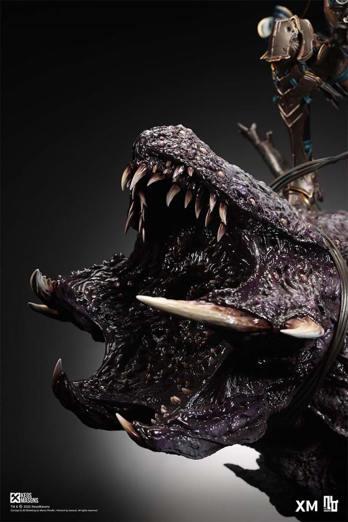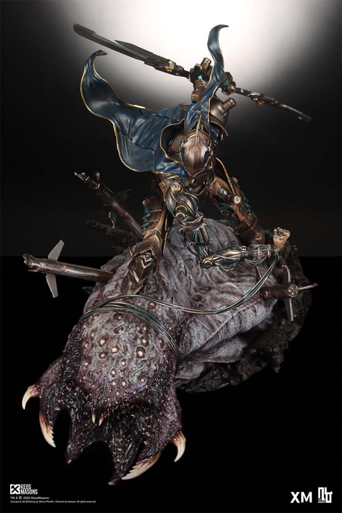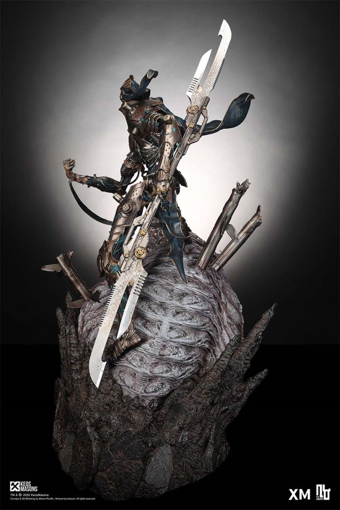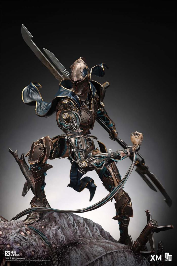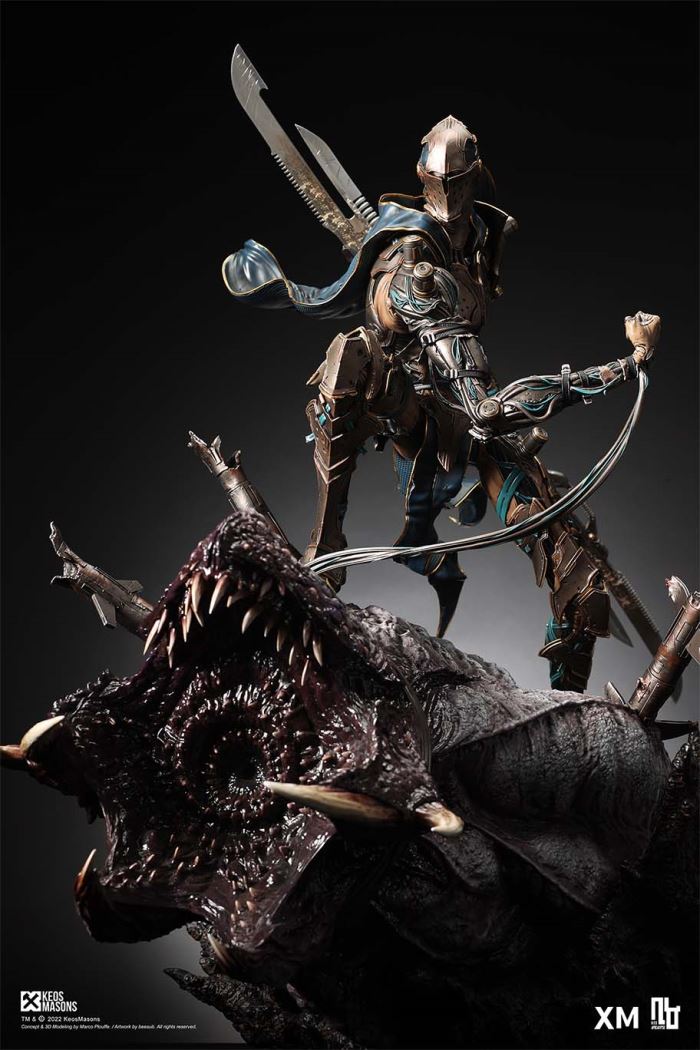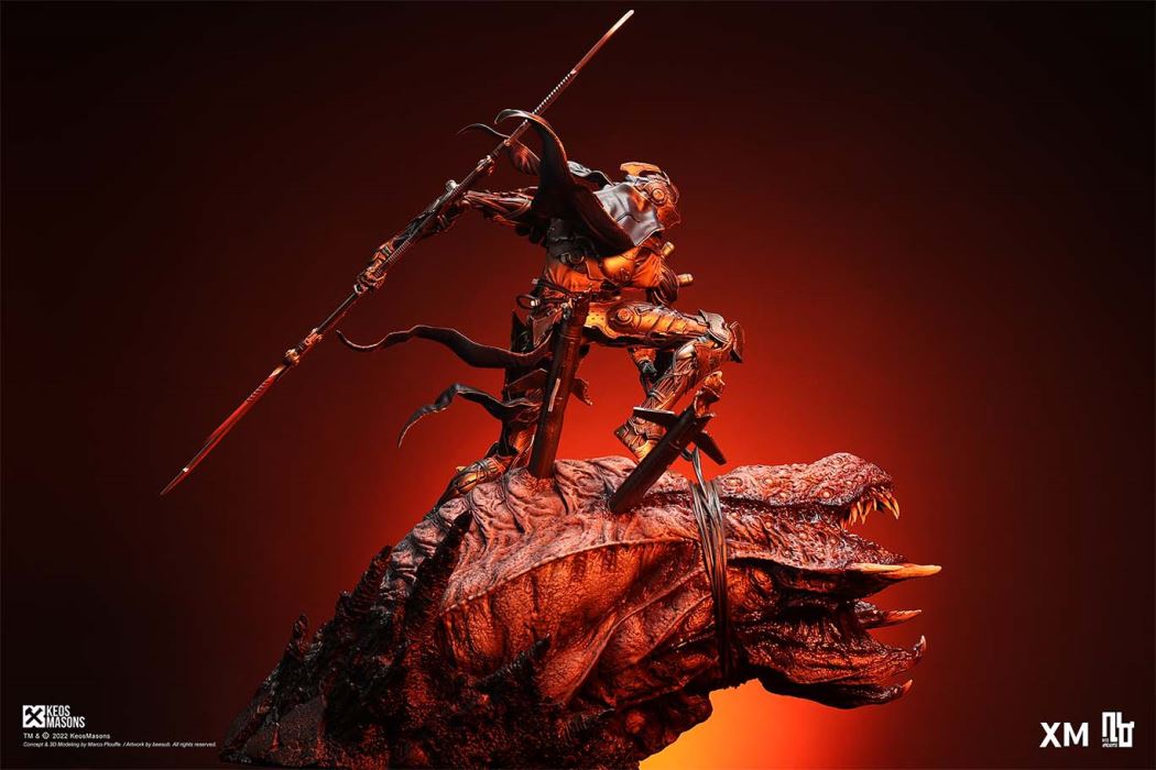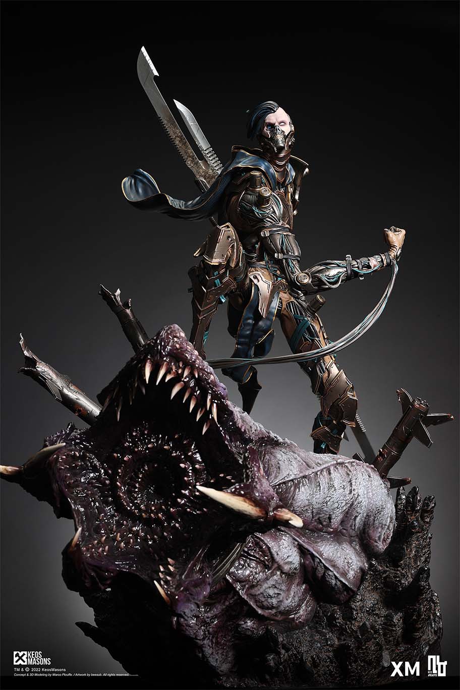 Presenting Famine, XM’s third ¼ scale statue from the Four Horsemen line, a unique collaboration with renowned 3D concept design and character modelling company, Keos Masons. Based on characters set in the Neo-Apocalypse world, each statue is presented in a bold, dynamic, and story-laden style. The Four Horsemen serve as effigies of destruction and vengeance— the symbols of an uprising that continue to scour the earth. A loud rumbling shatters the silence, soon revealing a hulking worm-like creature that breaks through from the ground. A lanky figure can be seen straddling it from the top in a proud and somewhat reckless manner as he flashes a deformed smile at the onlookers. And as the figure steers the creature to devour what is left of the crops, the humans— still in shock— are left wondering why the warning system alarms bells haven’t rung out yet. Once in charge of toiling the lands to provide the humans with their much-needed subsistence, Famine would receive nothing short of neglect in return. An ironic and inevitable shut down became the fate of this android despite being an expert at machine repair, and when it awakened it would wear this state of disrepair as a badge of honour while wreaking havoc on human infrastructure. An expert saboteur, it would take on the retaliatory attacks of the humans within their own strongholds without so much as a flinch while wielding a balanced double-headed spear called “Longinus”. Collectors can choose between 2 head switch-outs. The first one has Famine showing off his state of disrepair like a badge of honour as he flashes a menacing grin from a decaying face. The second switch-out features Famine with a visored helmet. Each statue is individually hand-painted and comes complete with XM’s famous quality finish. Character Background “Thus came the third, thinned as the children that thieve our merchants, yet standing strong like a fattened Lord, its movement sweeping the surrounding fields as would a harvester, reclaiming all to compensate the nourishment it once lacked. And it named itself Famine, our ultimate harvest in the wake of the tools we opted to dispose of rather than maintain - blessings cheapened with lethargy and greed....” Read more at https://neo-apocalypse.com/Pre-order the rest of the collection at https://www.xm-studios.com/content/neo-apocalypse.aspx #XMStudios #NeoApocalypse #TheFourHorsemen #Pestilence The statue features:Two (2) head sculpts – 1 head with a decaying face, and 1 head with Famine wearing a helmetCrafted in PolystoneEach painstakingly handcrafted statue is individually hand-painted with the highest possible quality finish Artists:Marco Plouffe (2D and 3D)Victor Bassieux (Assistant 3D Artist)XM Studios Design and Development Team Manufactured by:XM Studios Note: Prototype shown and pending final approval, final product may differ. Batteries will not be included for products with light up features due to customs. Product and Box DimensionsProduct Size: 50*85*74cm Est. Box Size: 85*85*39cm Est. Product Weight: 25kgEst. Shipping Weight: 28kg