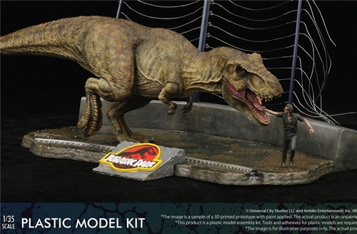 Barcode 4532149 021531Release date July. 2023Series Title 1/35 Scale Plastic Model KitProduct Name Jurassic Park Tyrannosaurus Rex Product code : 411-200130CProduct Description One of the Largest Land Predators Brought Back from ExtinctionMeet the T-Rex that made its way onto the big screen in the 1993 film Jurassic Park . The visitors of Jurassic Parkwere left sitting wide-eyed and paralyzed with fear as this “true dinosaur” made its way to the main road of the tour asthe ground trembled beneath its feet. This plastic model kit will bring its collectors the thrill and perhaps even dread thatthey felt whenn they witnessed this scene for the first time.An Impressive 1/35 ScaleIt has been produced in 1/35 scale, the standard for military models. One will be able to truly feel the immense size of theT-Rex’s impressive scale towering next to the famous Dr. Ian Malcom.Bringing You That Signature Plastic Model Kit FeelAll parts have been broken down and manufactured with high qualiy molds to capture the T-Rex’s proportions andintricate details seen in its skin. Plastic became the material of choice thanks to being light weight and highly durable,allowing for the model to be posed standing on one leg which can be a challenging pose to achieve when using PVC orpoly resin. Collectors will be able to enjoy the organic feel that this model gives off as the thigh muscles visibly contractas she lifts her legs up and shifts her weight to one side.Straight Out of the MovieWe’ve recreated the scene from the film where T-Rex is being lured away with flares as a diorama. This world whereone can be seen with prehistoric beasts, rail-lined roads and electrified fences is one that can only be made possibleProduct Dimensions Length: approx.38cm (Including base approx.42cm)Product Type Plastic Model KitMaterials HIPSMSRP (US$/unit) $45.00Case qty 12pcs per casePKG size TBAMOQ 12pcsCountry of origin ChinaFor ages 15 and upCopyright (c) Universal City Studios LLC and Amblin Entertainment, Inc. All Rights Reserved.Manufactured X-PLUSDistributed Star Ace Toys Limited (International)