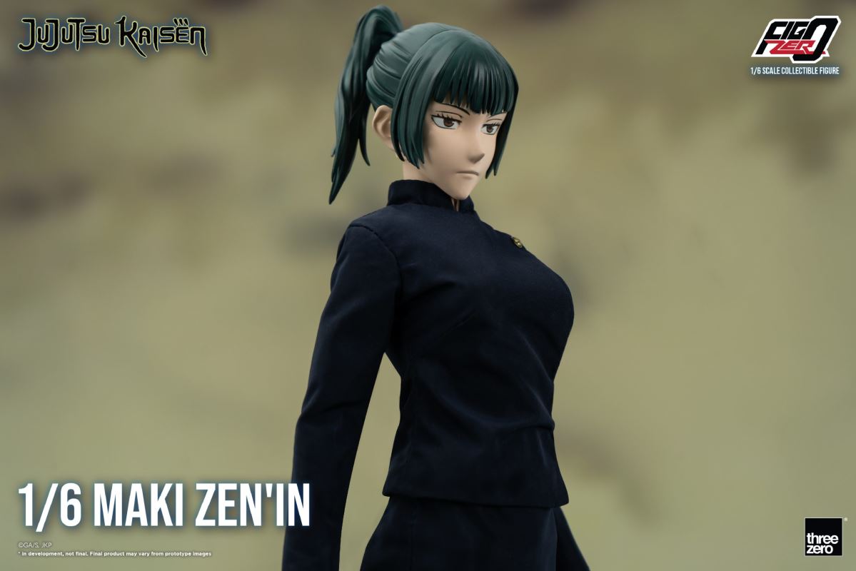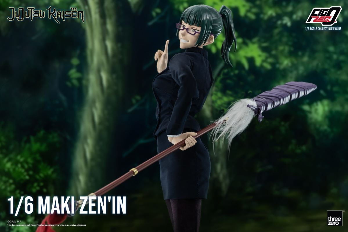 Jujutsu Kaisen - FigZero Maki Zen'in 1/6 (Threezero)From the anime series Jujutsu Kaisen, the Threezero company presents the 1/6 scale figure that it dedicates to Maki Zenin and that it offers us within its FigZero line. Figure available to pre-order from March 31, 2023.Height: 28.3cmMaterial: ABS, PVC, POM and clothRelease date: Third quarter of 2023Price: 149 USD / 19,410 JPYReservations: March 31, 2023 (Will be available here)Below you can see all the images that Threezero has shared of this 1/6 scale figure dedicated to Maki Zenin:From the anime series Jujutsu Kaisen, from Threezero they surprise us today by presenting the 1/6 scale figure that they dedicate to Maki Zenin.Figure that Threezero offers us within its line of FigZero articulated figures and that, as you can see, has been sculpted with the greatest possible realism so that the most fans of Jujutsu Kaisen can add a new and most interesting figure to your collection. dedicated to one of his characters.A figure of considerable height that, as you can imagine, will allow us to put Maki Zenin in a lot of different poses thanks to all the joints it has. Specifically, this figure has 32 points of articulation. In addition, so that we can still make more combinations, the company includes a good variety of accessories and optional parts. Specifically, Maki comes with: two interchangeable faces (one standard face and one smiling face), several interchangeable hands (a total of three pairs), two interchangeable bangs (one with her glasses and one without), her naginata, a blade sheathed alternative to the naginata and the cursed tool Roaming Cloud.Another noteworthy detail of this figure, and which is also characteristic of the FigZero line figures, is that her outfit has been recreated with real fabric to achieve the greatest possible realism.On this occasion, the figure has been sculpted by threezero. Let you know that the head has been produced with the cooperation of ene (Wonderful Works).
