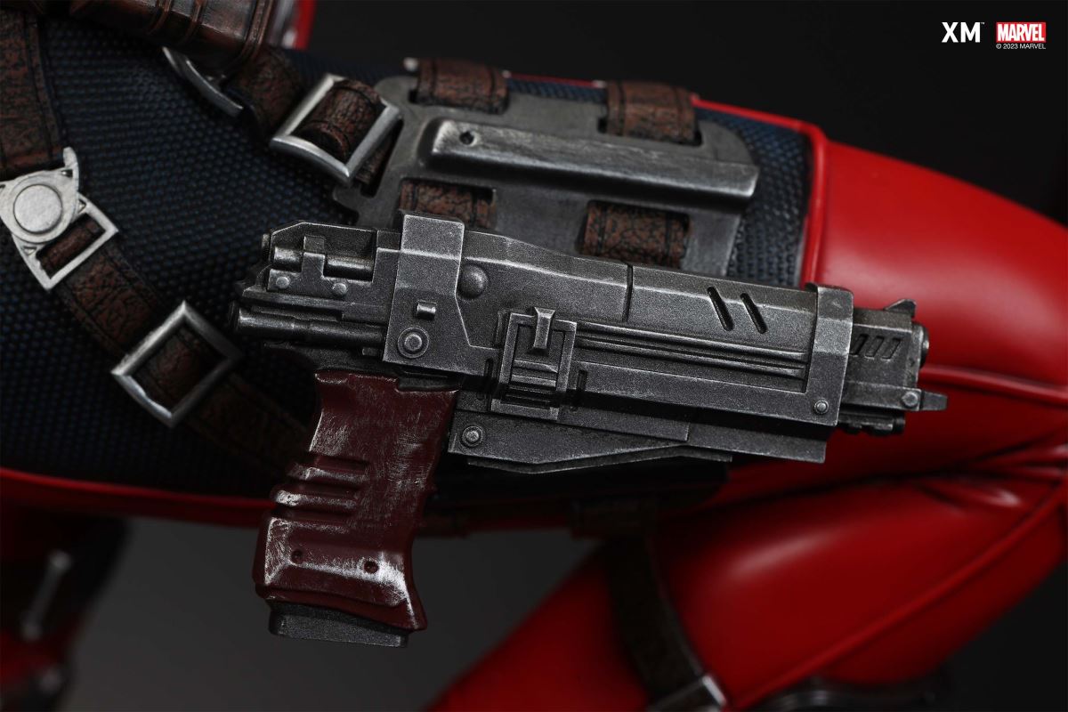 XM Studios is excited to present our next 1/4 scale MARVEL Premium Collectibles series statue, Lady Deadpool! Each painstakingly handcrafted statue is individually hand-painted with XM’s famous quality finish, and comes in a bold, dynamic, and story-laden style. Lady Deadpool, also known as Wanda Wilson, shares many characteristics with her male counterpart, such as her witty sense of humor, fourth-wall-breaking abilities, and combat skills. She became a mercenary and crossed paths with Deadpool, who recruited her into the Deadpool Corps, a team of alternate-universe versions of Deadpool. The Lady Deadpool statue depicts a fully masked Wanda in her signature red and black suit. On her left, she holds a katana with Headpool attached to it while on her right she holds a backpack strapped with dynamites, ready to fling it at her enemies. Designed to be a companion piece to XM’s Deadpool, it features a similar merry-go-round amusement ride thematic base with a destroyed seat. Collectors can look forward to a third member of the Deadpool Corps completing the set! Lady Deadpool Premium Collectible Features:Highly detailed sculpt of Lady Deadpool on a destroyed merry-go-roundCrafted in polystoneEach painstakingly handcrafted statue is individually hand-painted with the highest possible quality finish Artists:Rafa Sandoval (2D)Pablo Vicentin (3D)XM Studios Design and Development Team Manufactured by:XM StudiosProduct and Box Dimensions:Est. Product Size: 40 x 50 x 63cmEst. Box Size: 70 x 68 x 28cmEst. Product Weight: 12kgEst. Shipping Weight: 14kgNote: Prototype shown and pending final approval, final product may differ. Batteries will not be included for products with light up features due to customs.