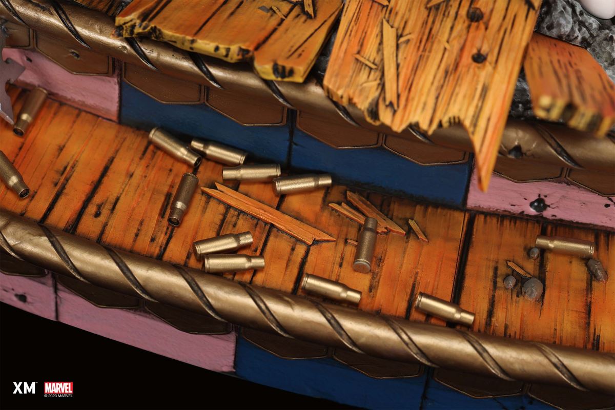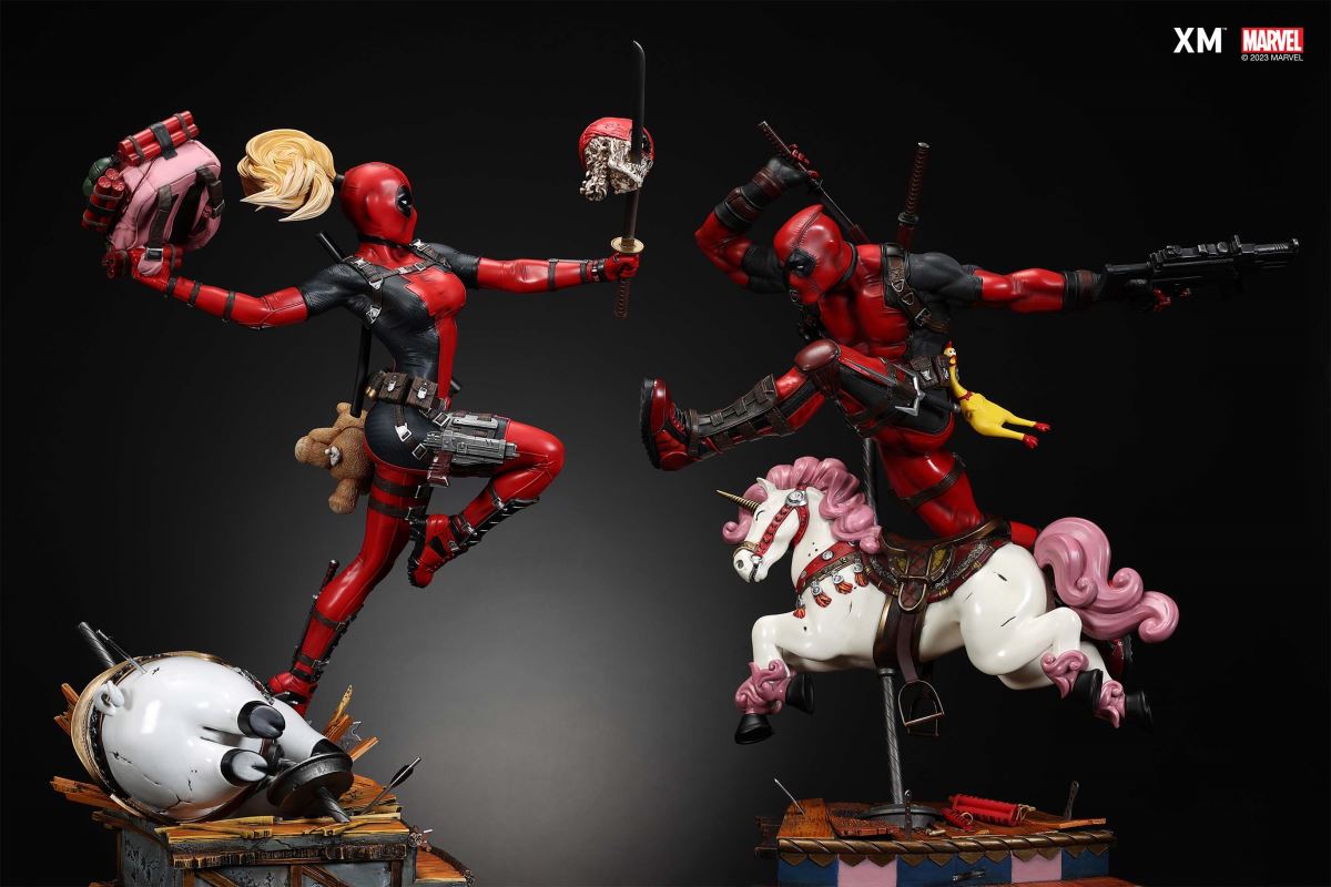 • Highly detailed sculpt of Lady Deadpool on a destroyed merry-go-round