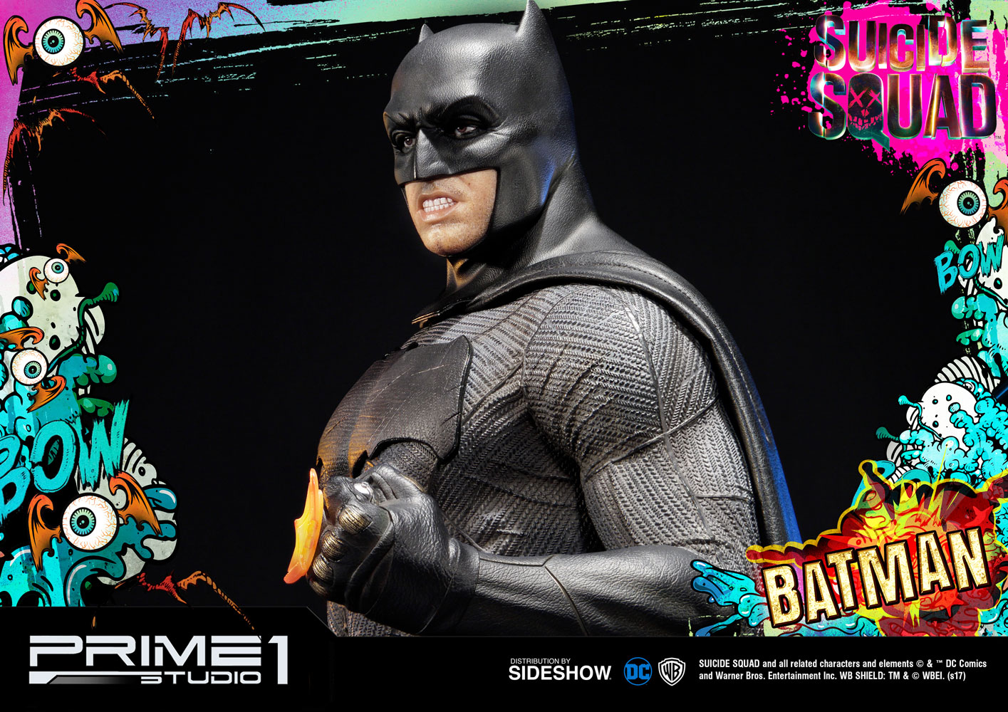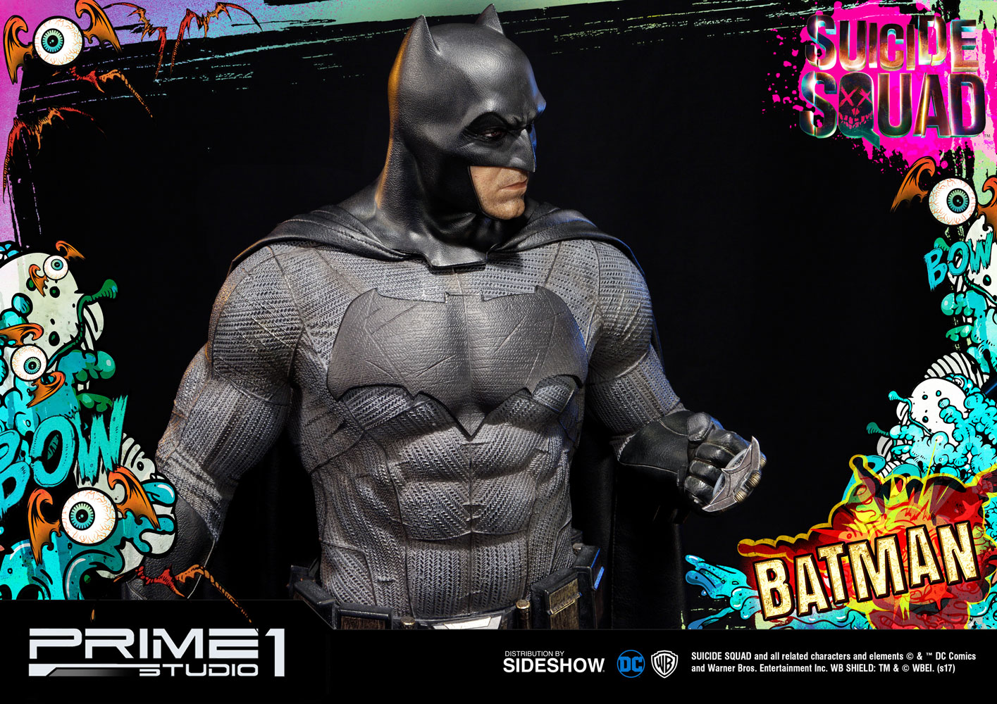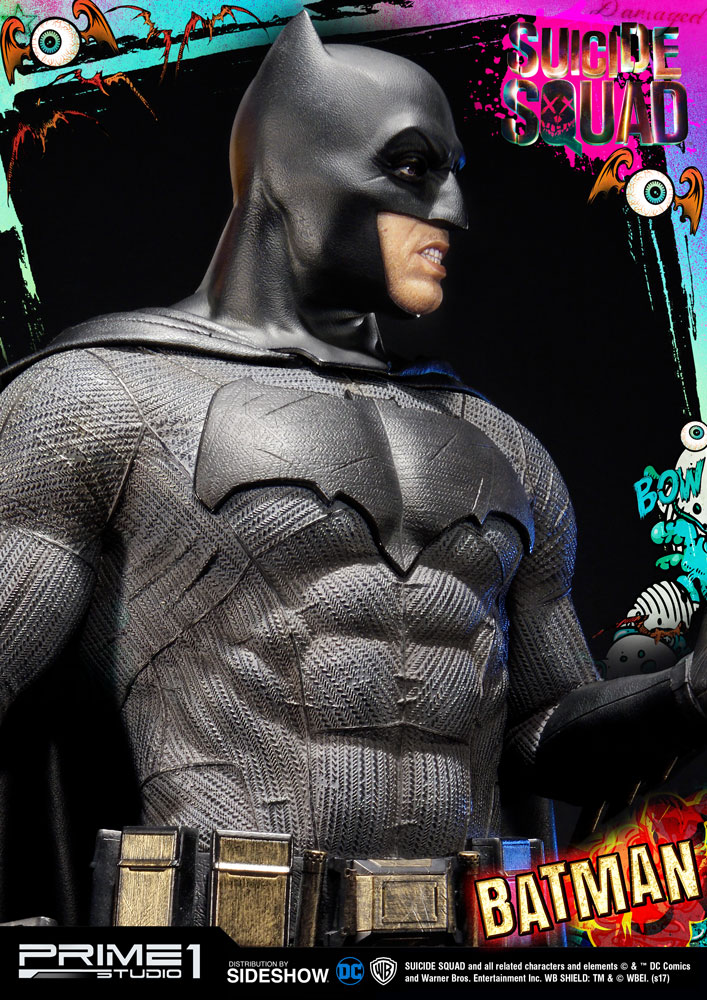 ABOUT THIS STATUEIt's over, Deadshot. I don't want to do this in front of your daughter.Sideshow and Prime 1 Studio are proud to present Batman from Suicide Squad Movie (2016). Batman is crafted in 1:3 scale with great attention to detail and stands around 31 inches tall.Fearing the actions of a god-like super hero left unchecked, Gotham City’s own formidable, forceful vigilante takes on Metropolis’s most revered, modern-day savior, while the world wrestles with what sort of hero it really needs. And with Batman and Superman at war with one another, a new threat quickly arises, putting mankind in greater danger than it’s ever known before.LicenseDC ComicsTypeStatueManufacturerPrime 1 StudioWHAT'S IN THE BOX?The Batman Statue features:Size approximately 31 inches tallOne (1) interchangeable right-hand fistOne (1) interchangeable right-hand holding a grappling gunOne (1) interchangeable right-hand holding a grenade launcherOne (1) interchangeable right-hand holding a BatarangOne (1) interchangeable left-hand fistOne (1) interchangeable left-hand holding a branding iron with Two (2) Batman Symbols Two (2) alternate Batman Portraits One (1) alternate Exclusive portraitADDITIONAL DETAILS & DIMENSIONSExpected to ShipAug 2018 - Oct 2018Item shown is a prototype. When shipped, the final production piece may differ in appearance.Product Size30.70 H (779.78mm) x 15.74 W (399.8mm) x 14.17 L (359.92mm)*Dimensional WeightTBDInt'l Dim. WeightTBD* Size and weight are approximate values.SKU9030481PRICE$974.99SUICIDE SQUAD and all related characters and elements © & ™ DC Comics and Warner Bros. Entertainment Inc. WB SHEILD: TM & © WBEI. (s17)